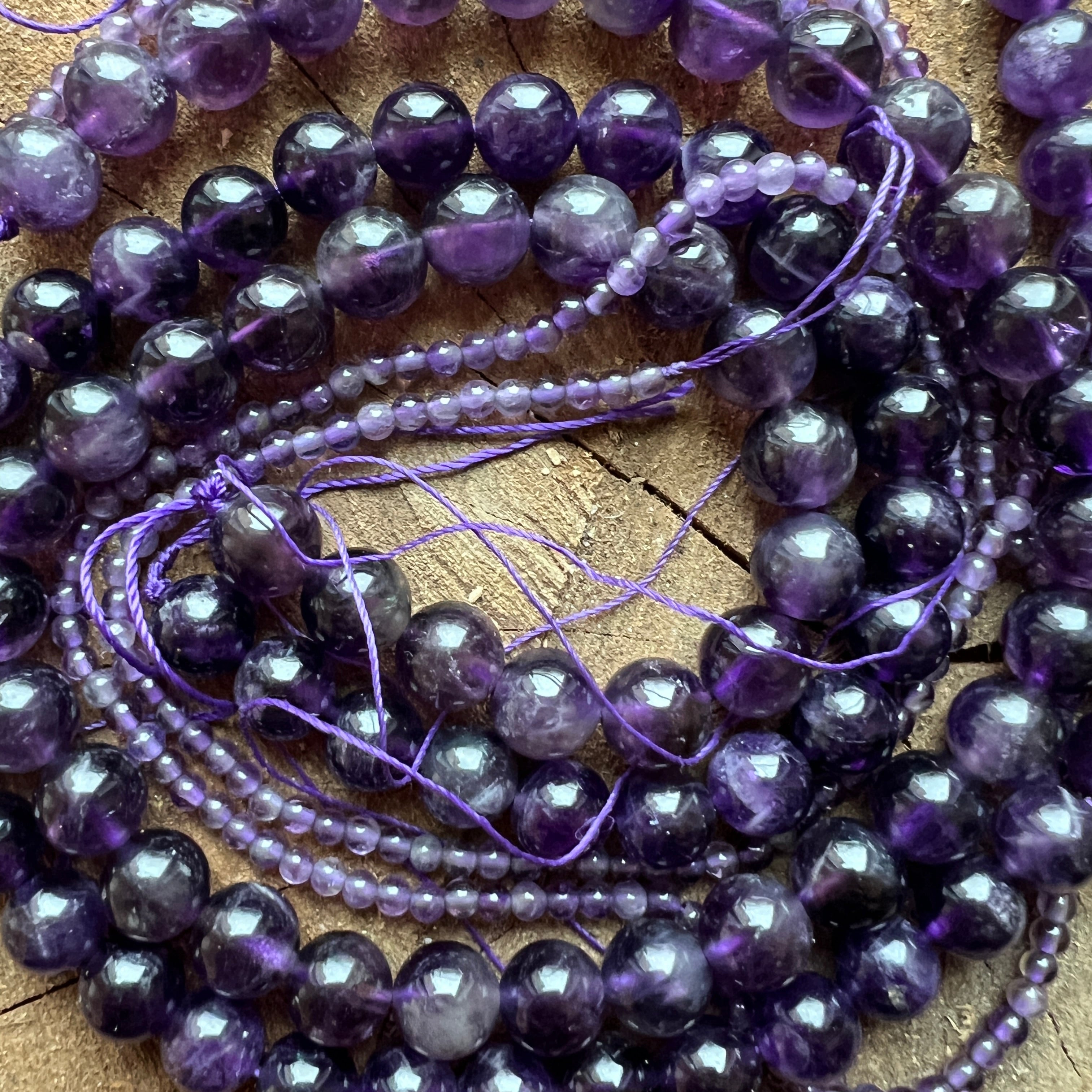 Ревюта – Низ от мъниста полускъпоценни камъни сфери АМЕТИСТ