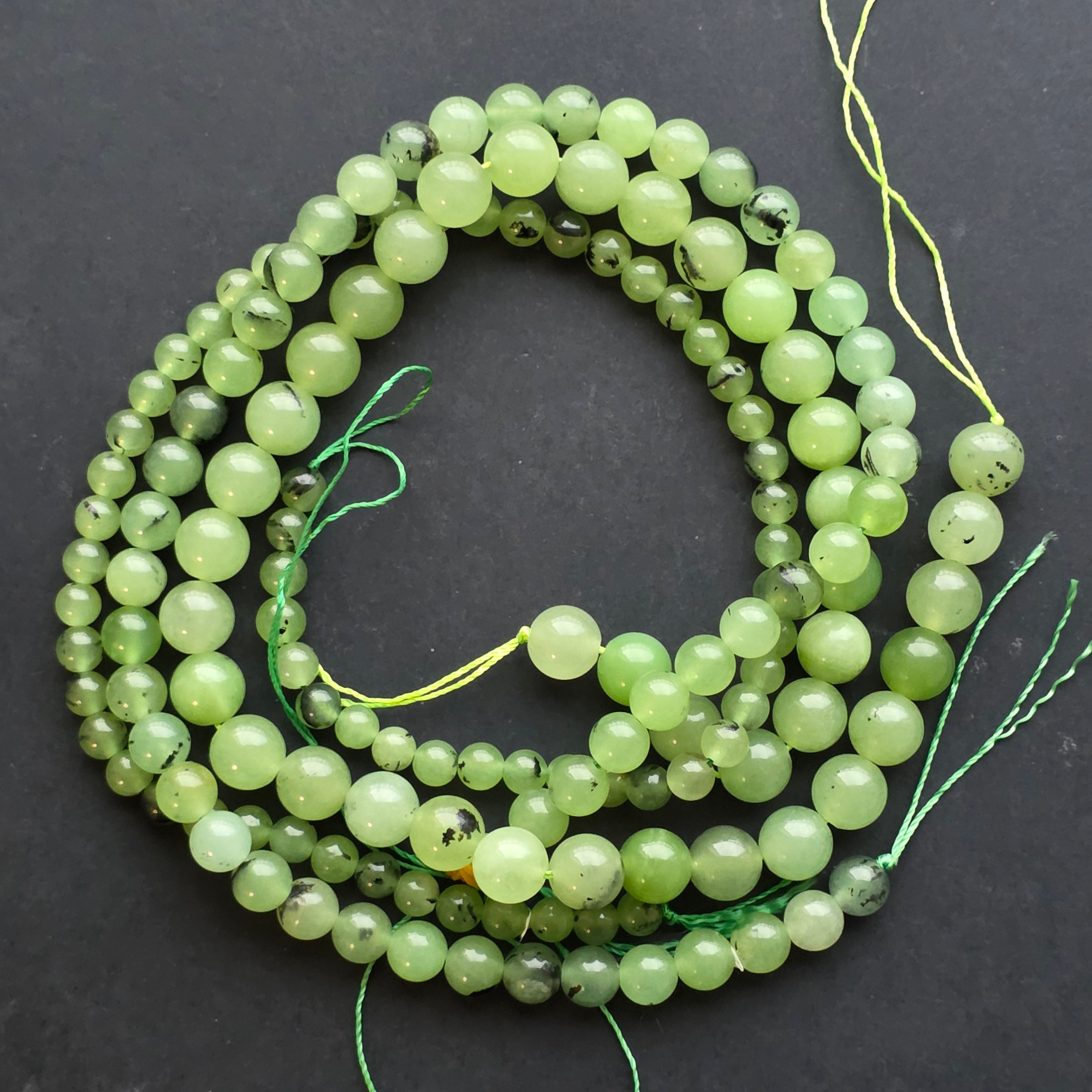 Нишка от ЗЕЛЕН ЯД НЕФРИТсъстои се от естествени сферични мъниста,перфектни за колиета, гривни или други ръчно изработени бижута.