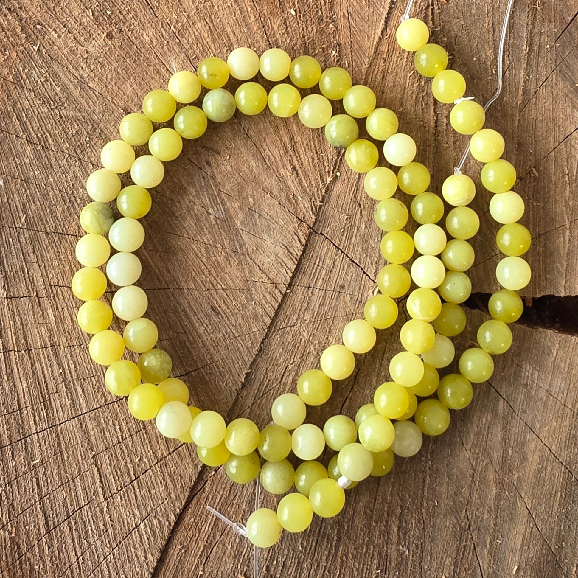 Низ от ЗЕЛЕН ЯД „NEW JADE"съставен от естествени сферични мъниста, перфектен за колиета, гривни или други ръчно изработени бижута.