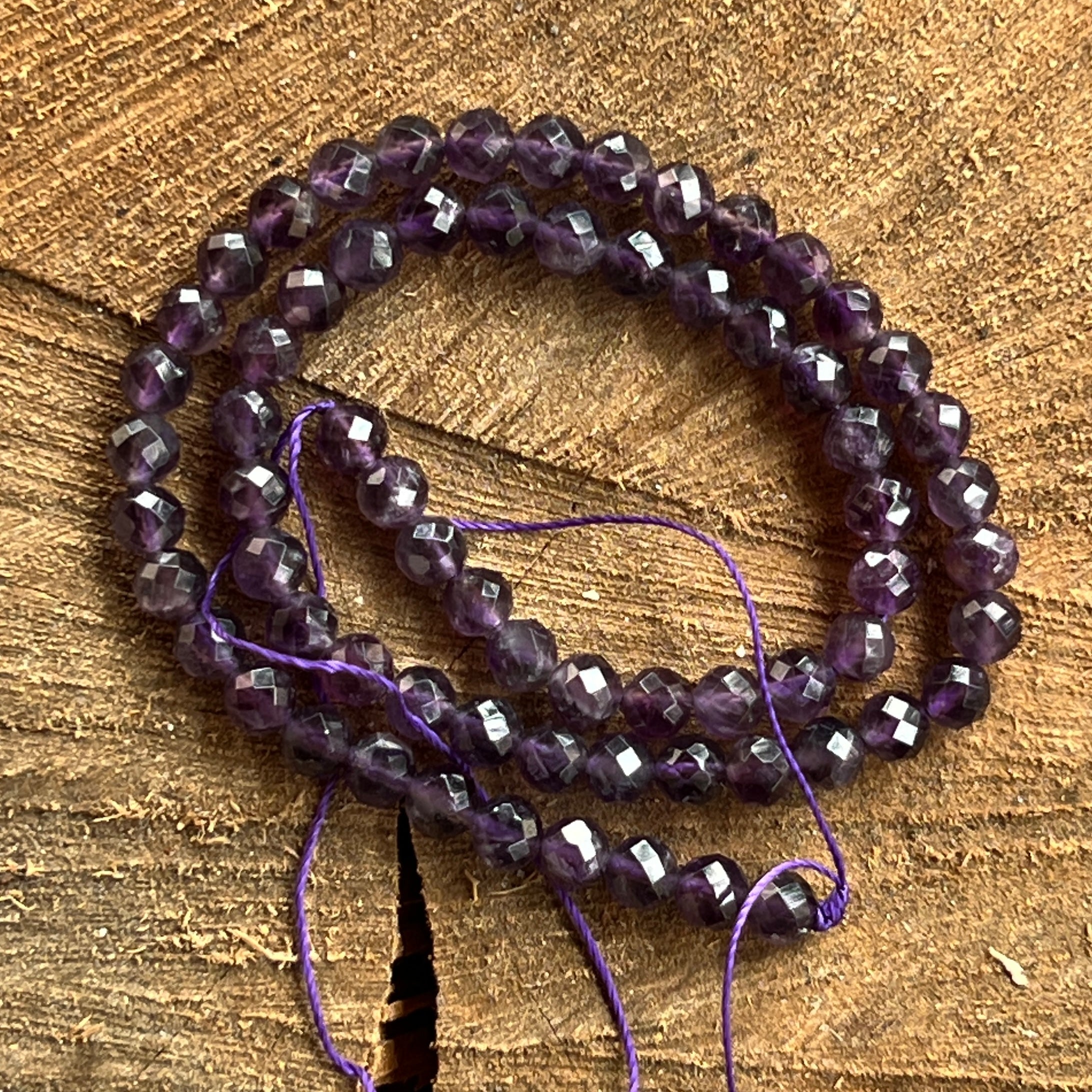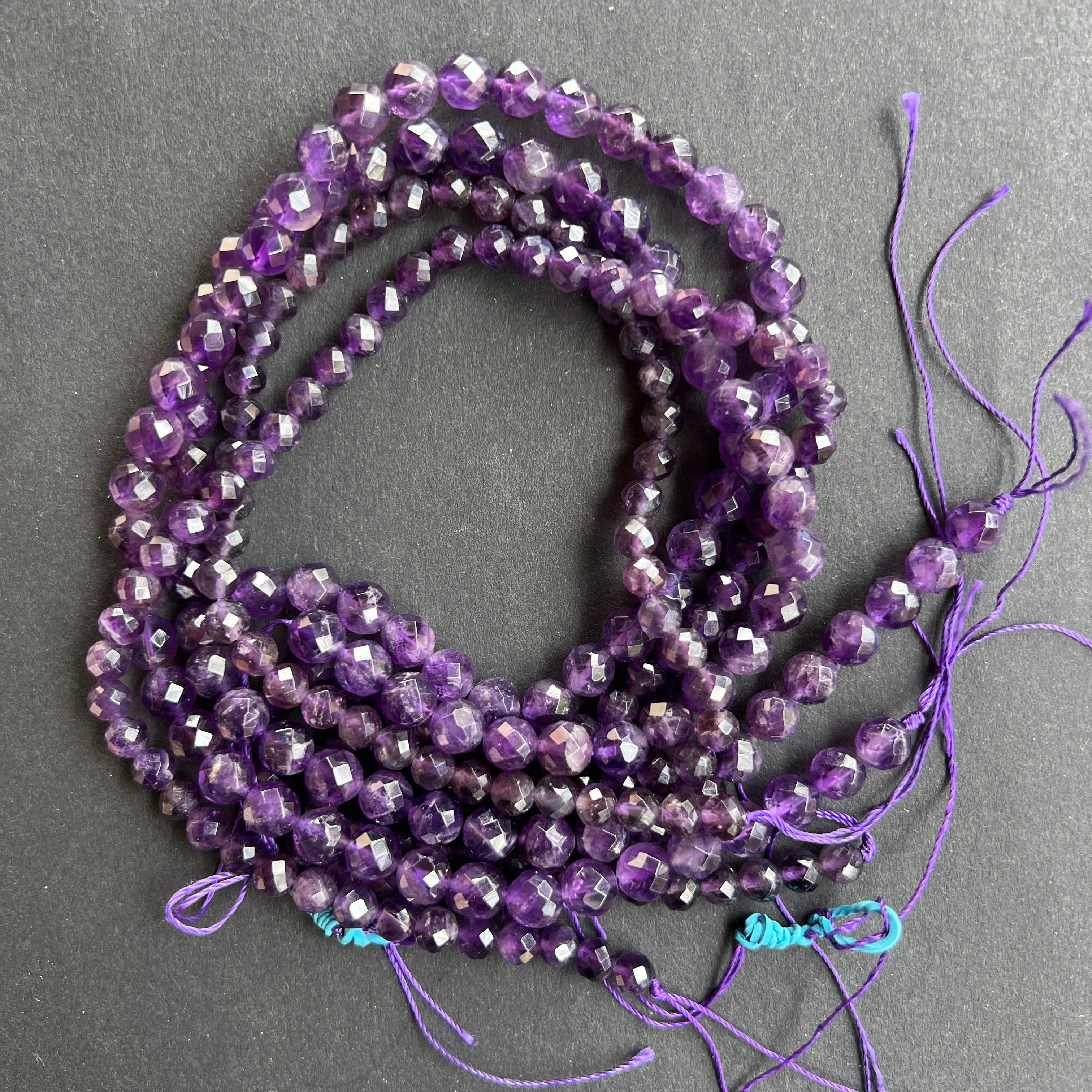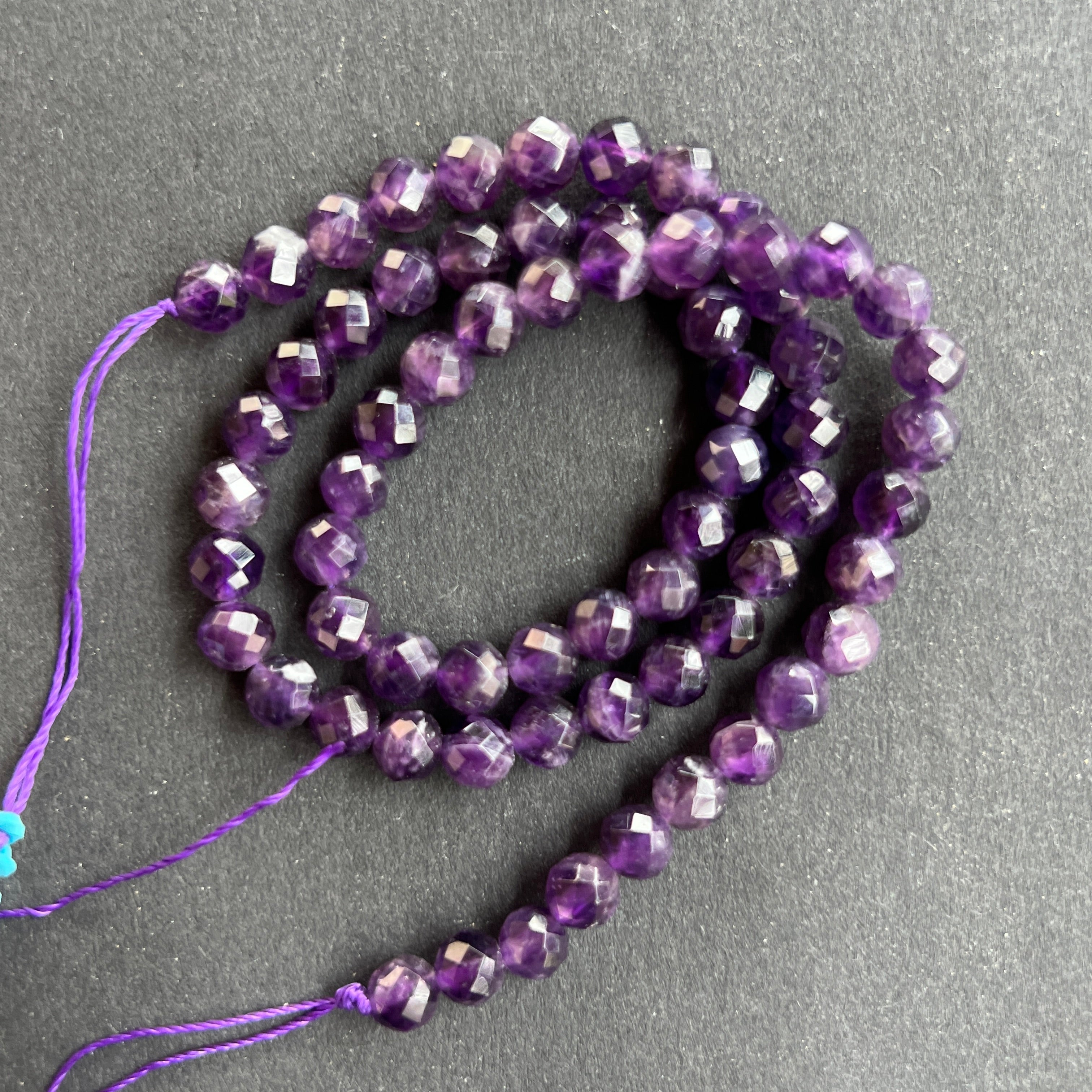 Низ от АМЕТИСТ, съставен от естествени фасетирани сферични мъниста, идеален за колиета, гривни или други ръчно изработени бижута.