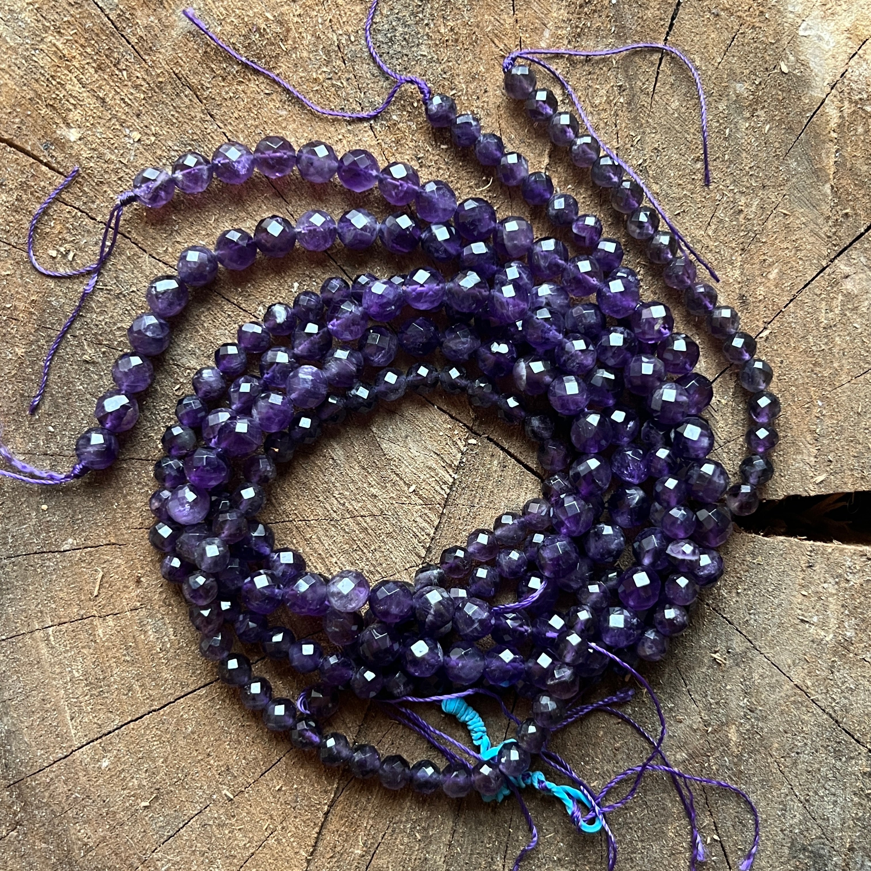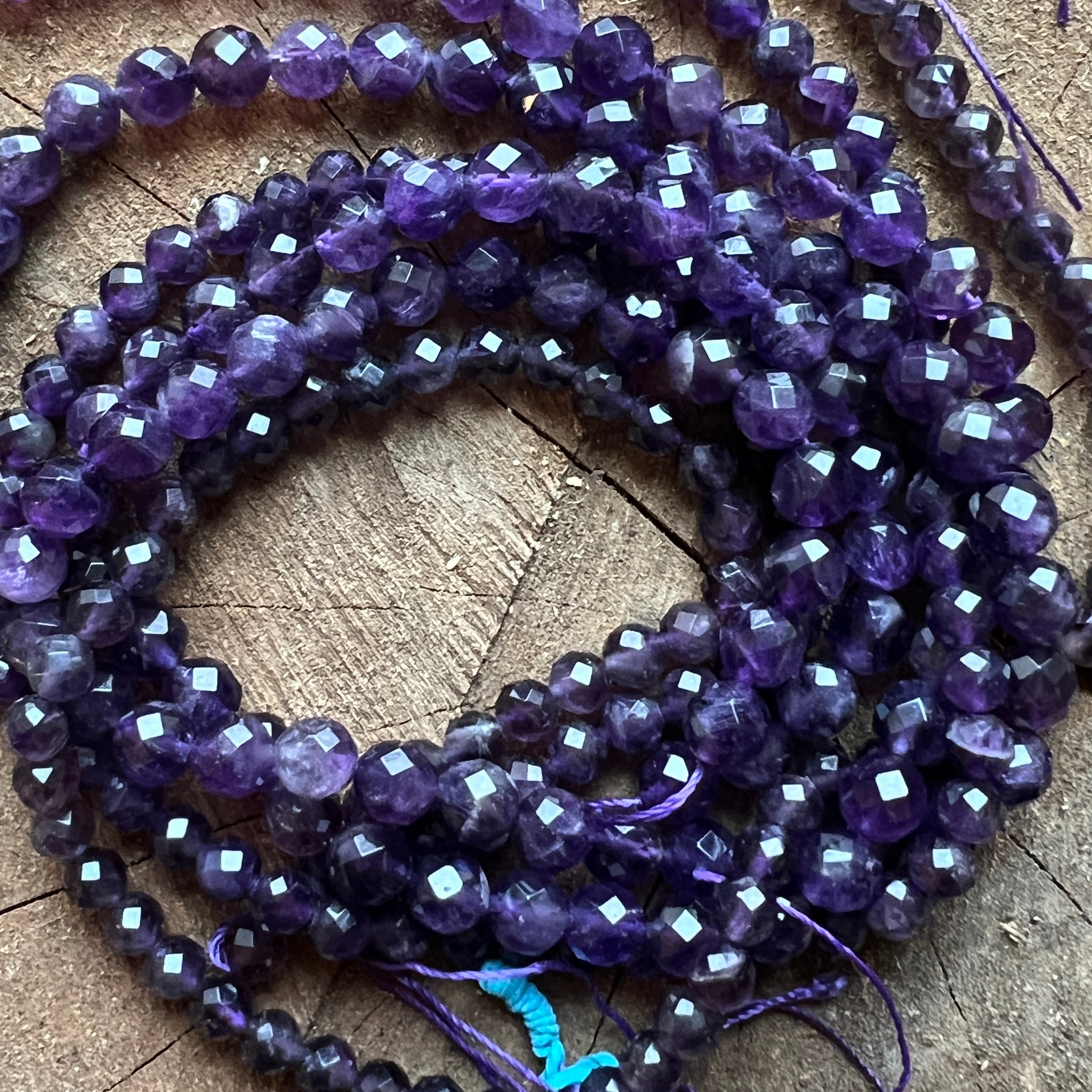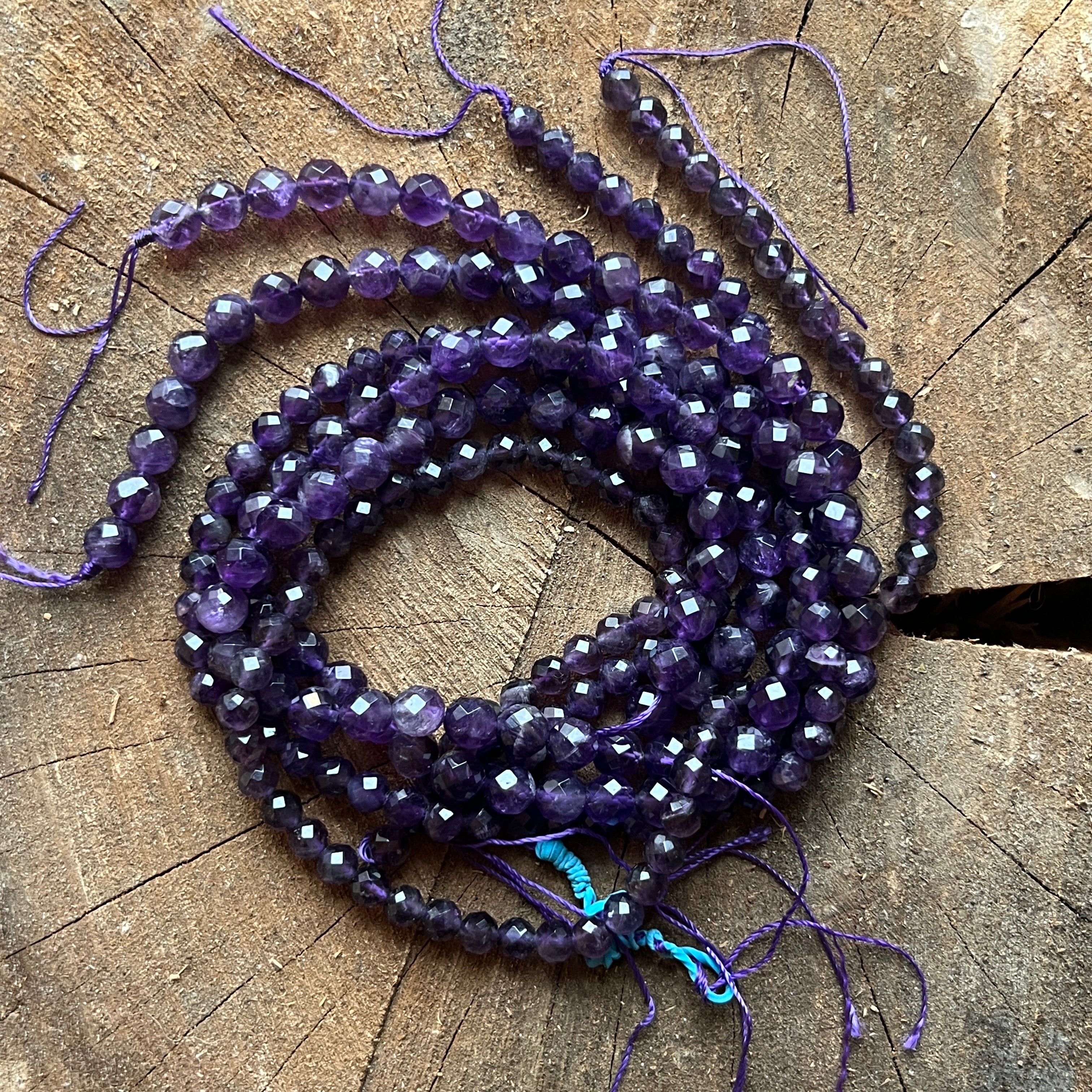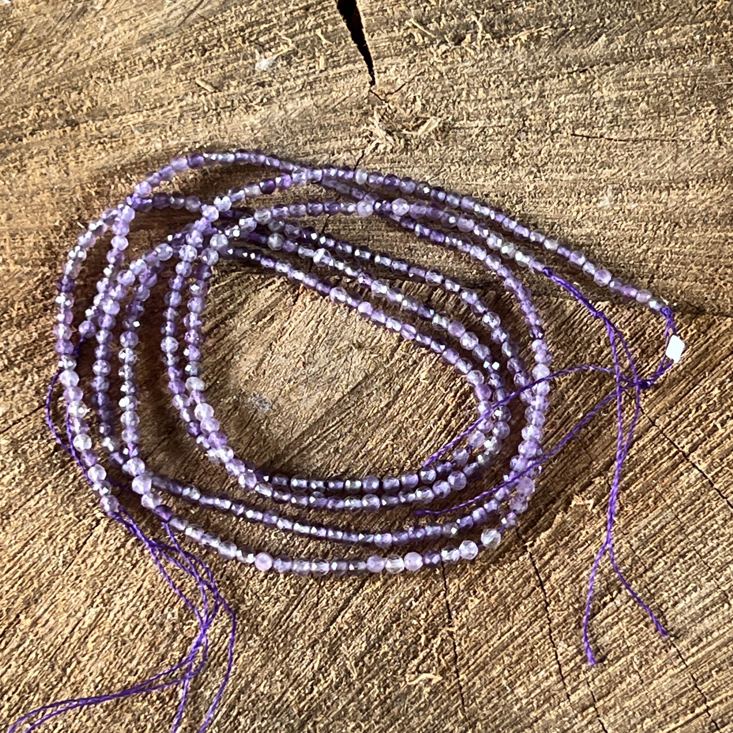 Низ от АМЕТИСТ, съставен от естествени фасетирани сферични мъниста, идеален за колиета, гривни или други ръчно изработени бижута.