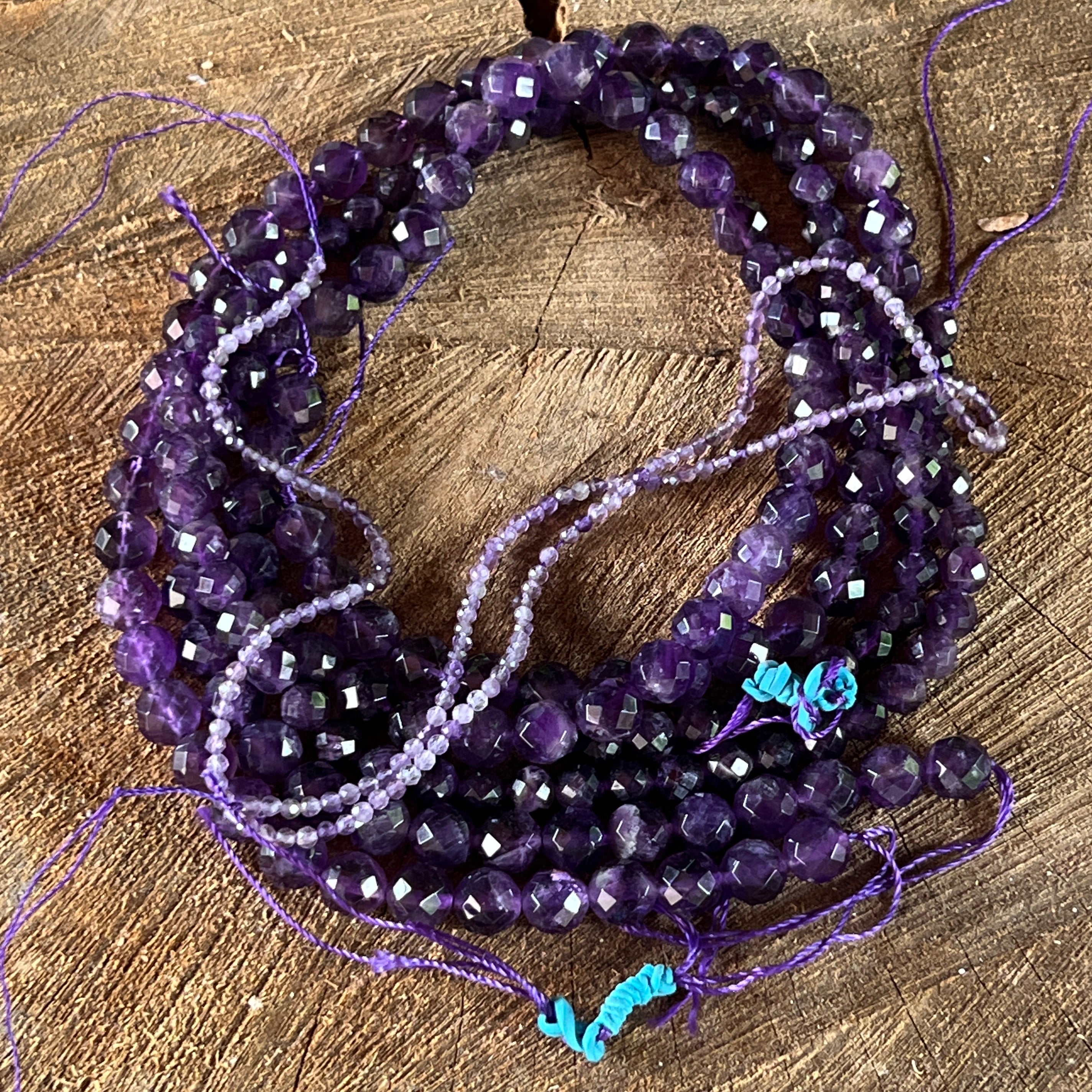 Ревюта – Низ от мъниста полускъпоценни камъни фасетирани сфери АМЕТИСТ