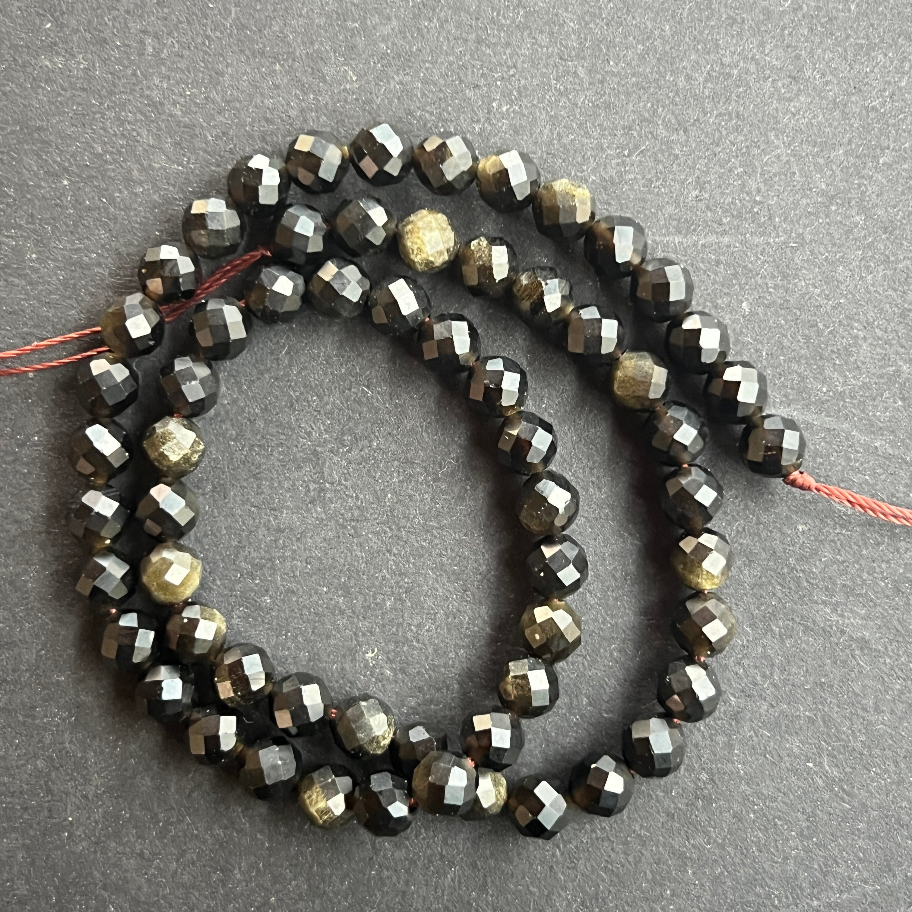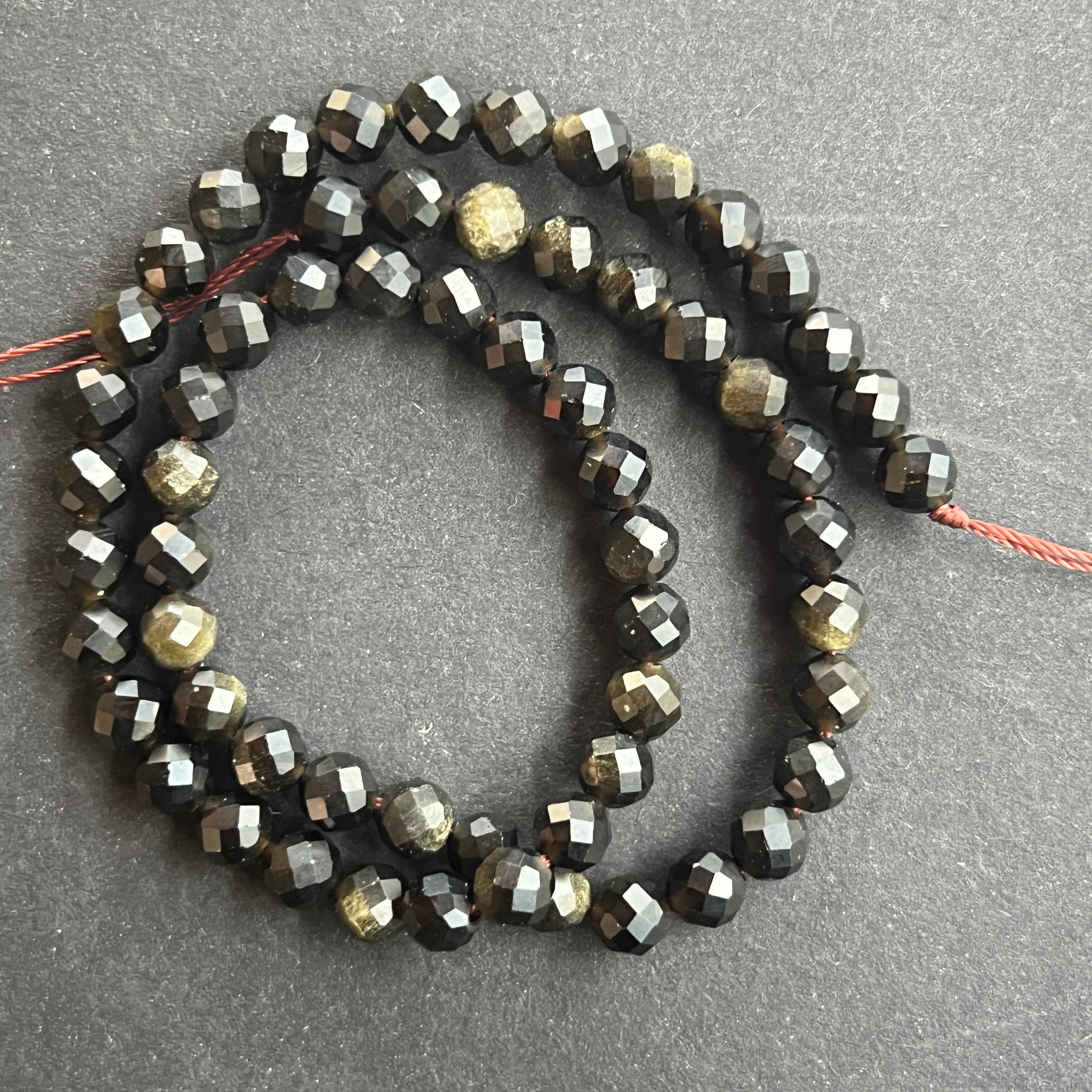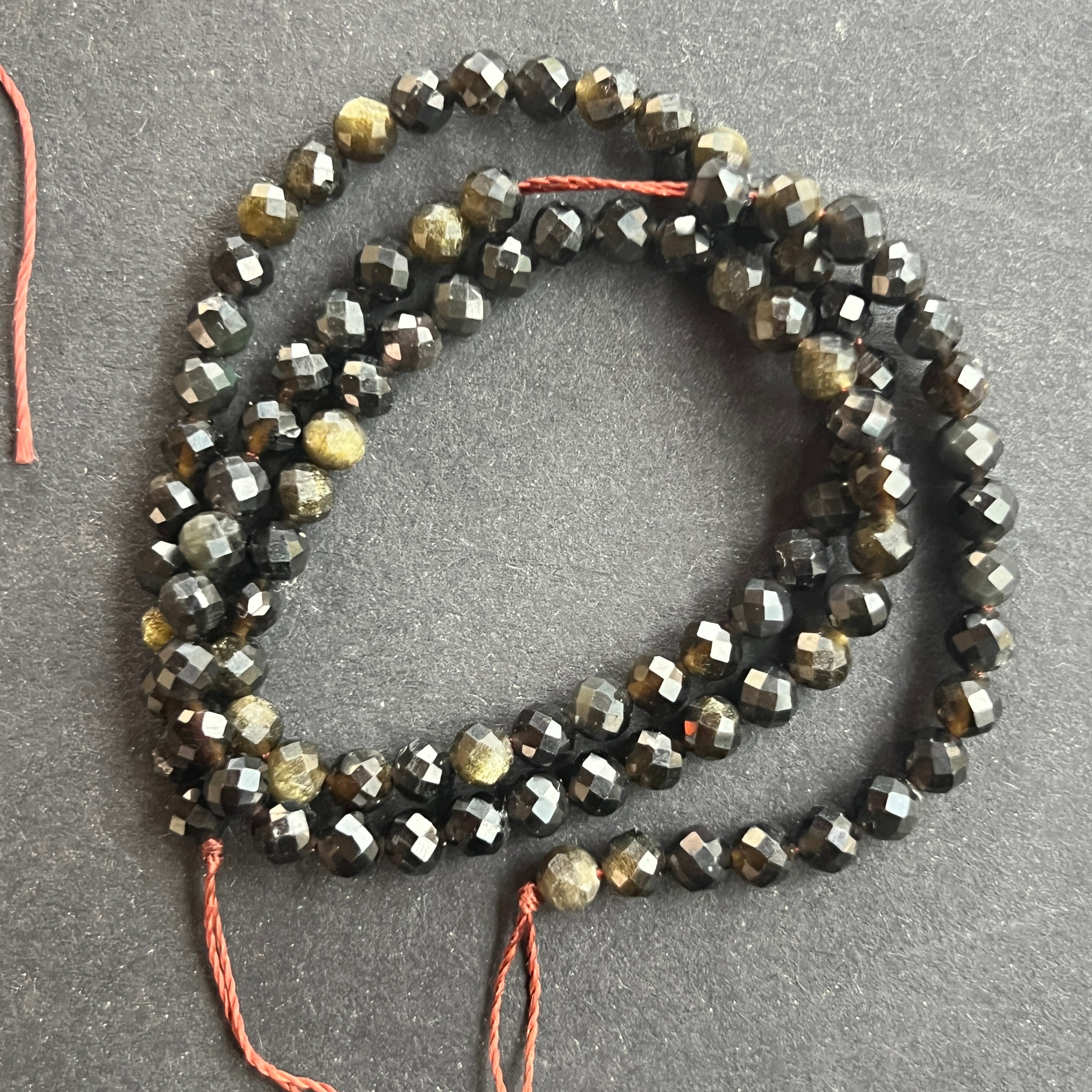 Низ от ЗЛАТЕН ОБСИДИАН, съставен от фасетирани сферични мъниста естествени, перфектен за колиета, гривни или други ръчно изработени бижута.