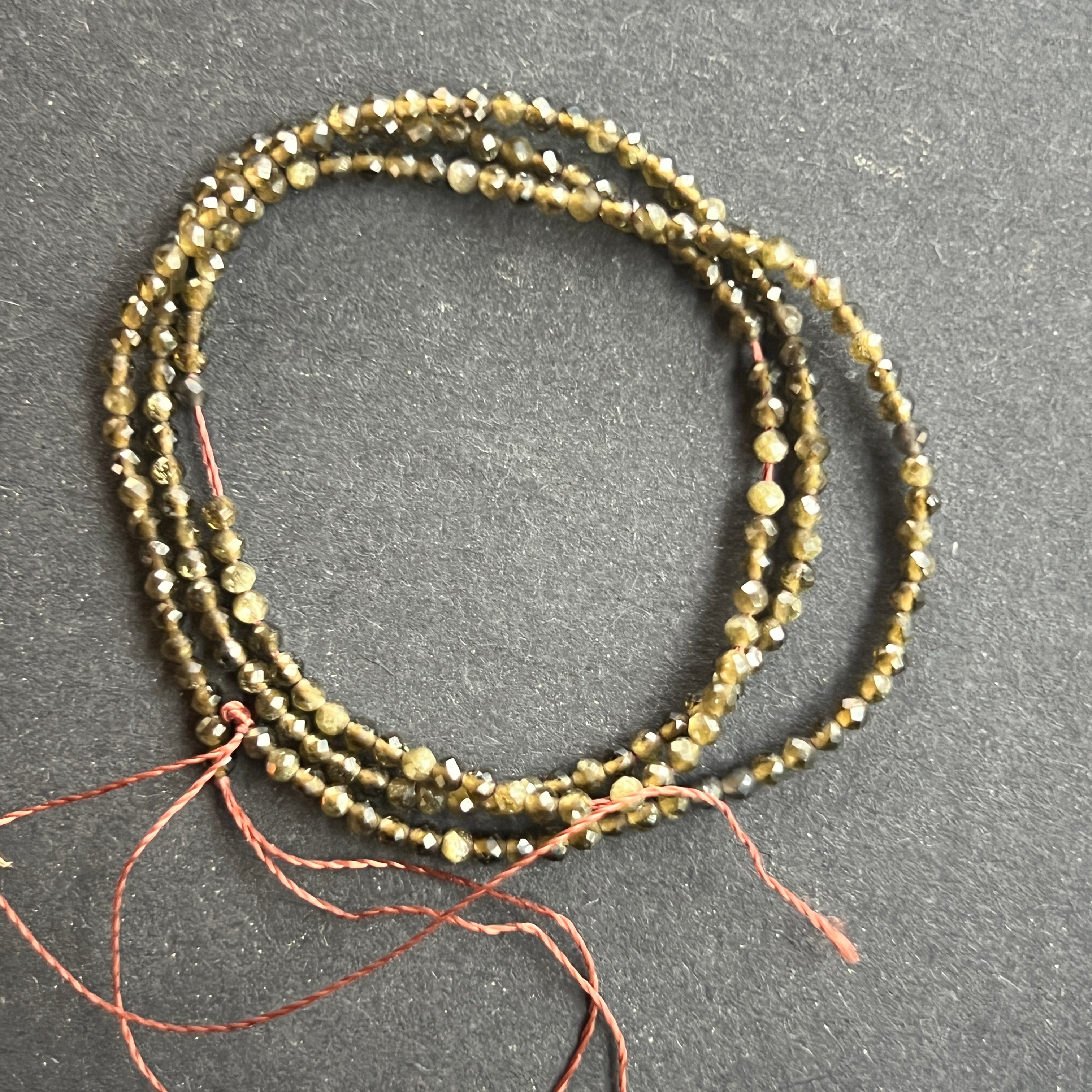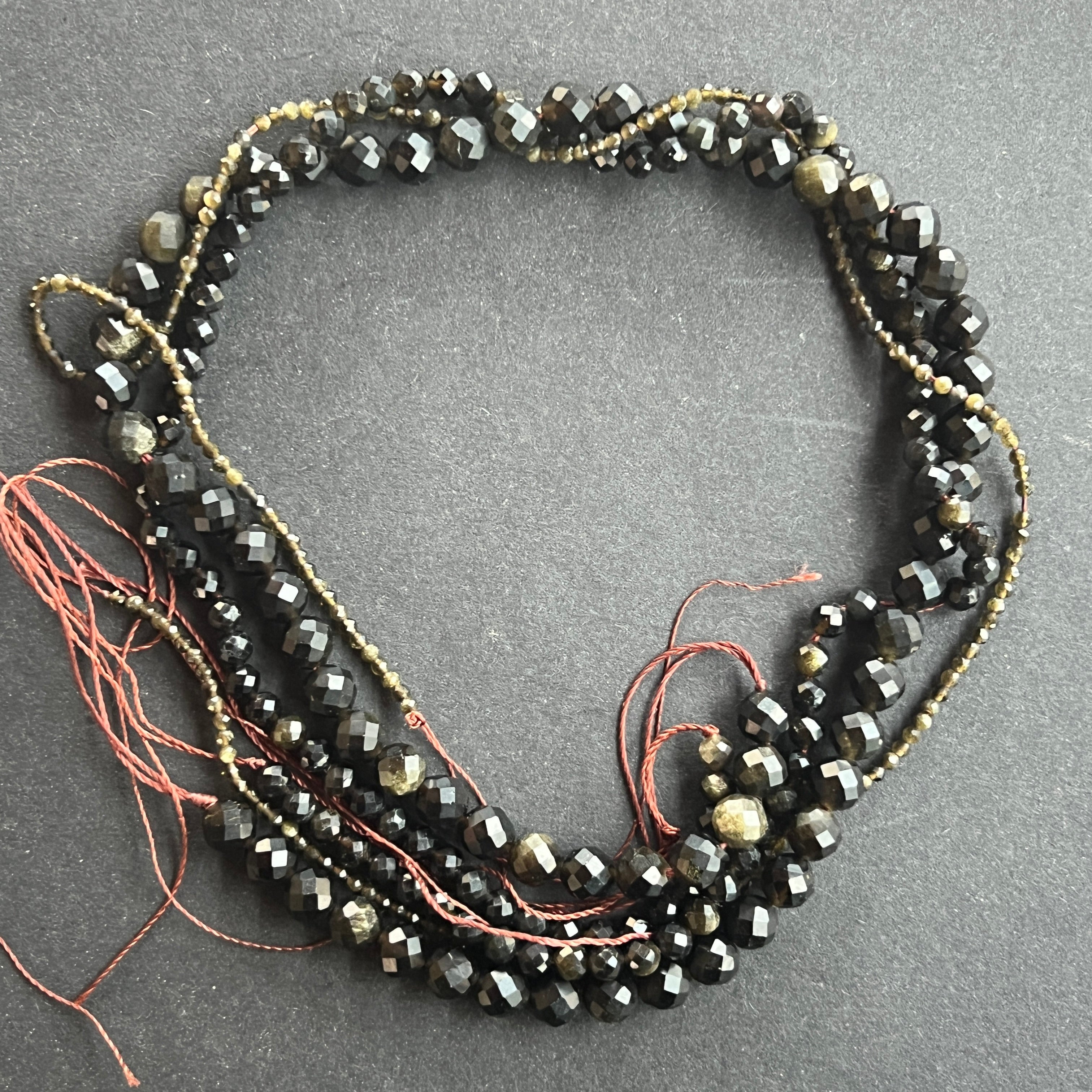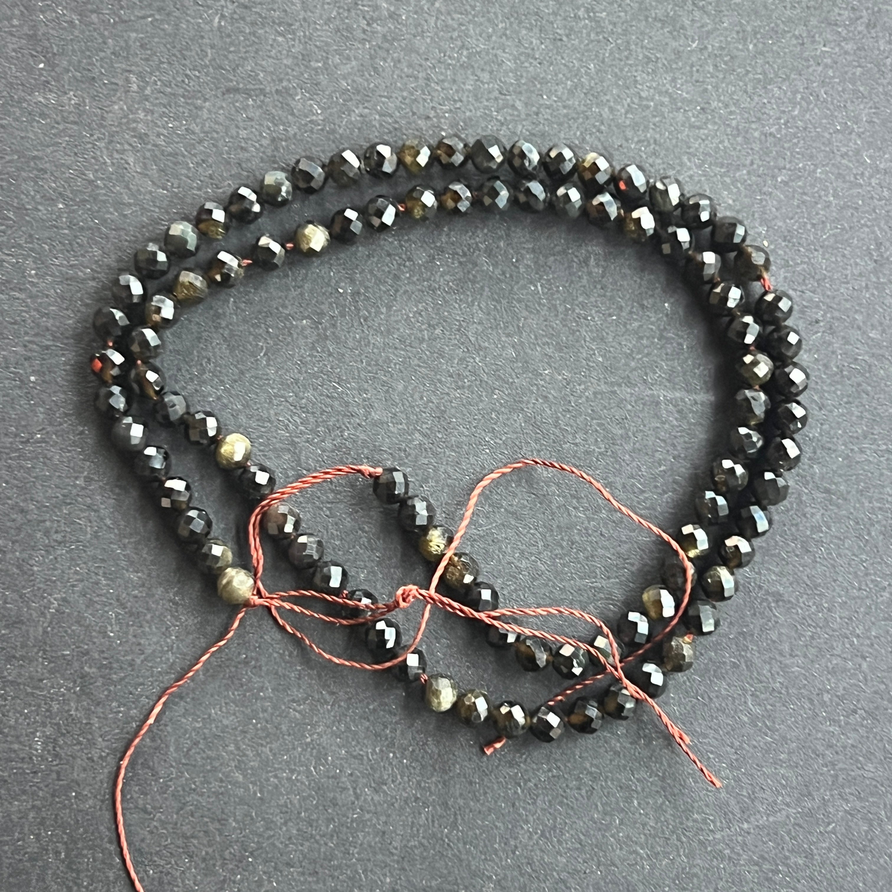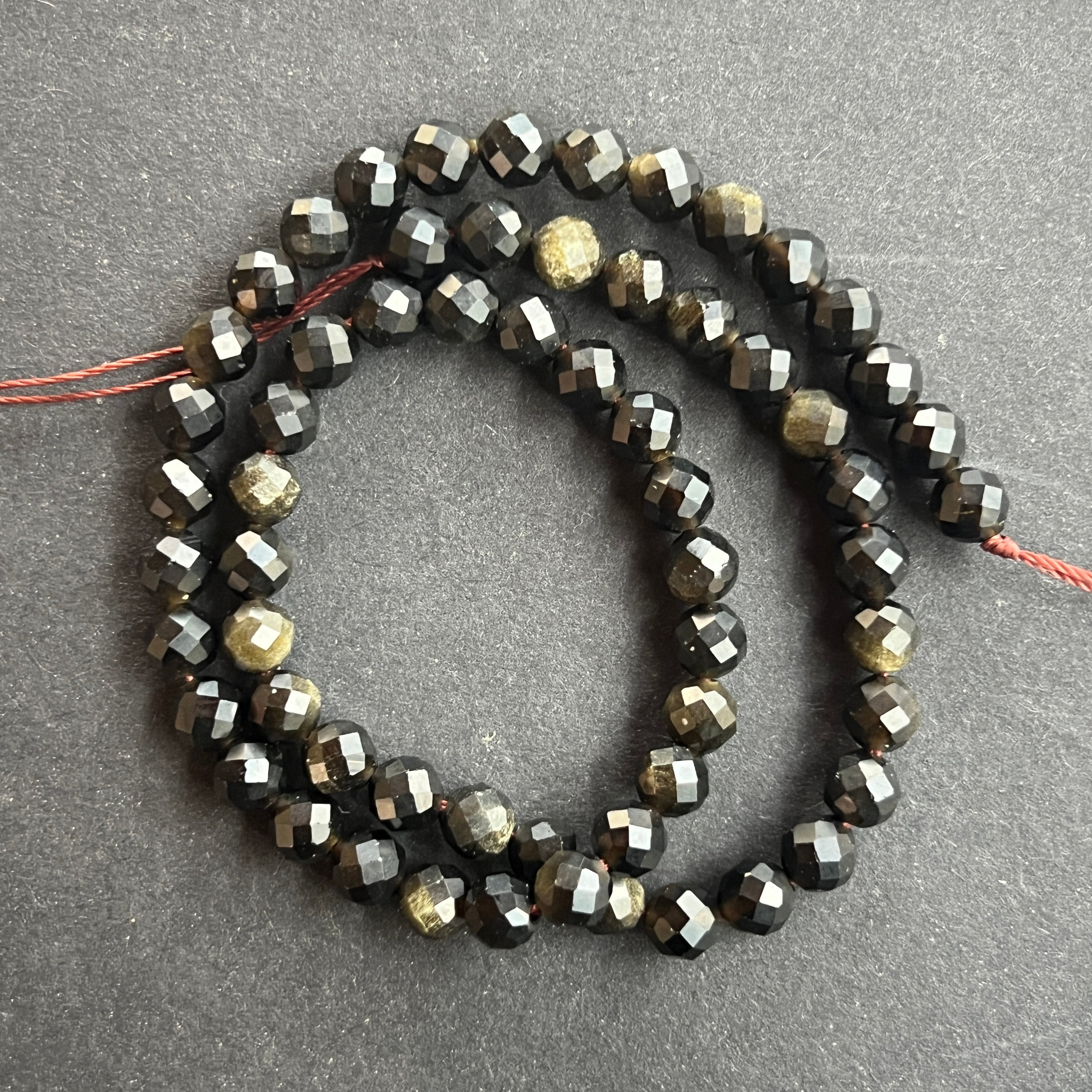 Низ от ЗЛАТЕН ОБСИДИАН, съставен от фасетирани сферични мъниста естествени, перфектен за колиета, гривни или други ръчно изработени бижута.