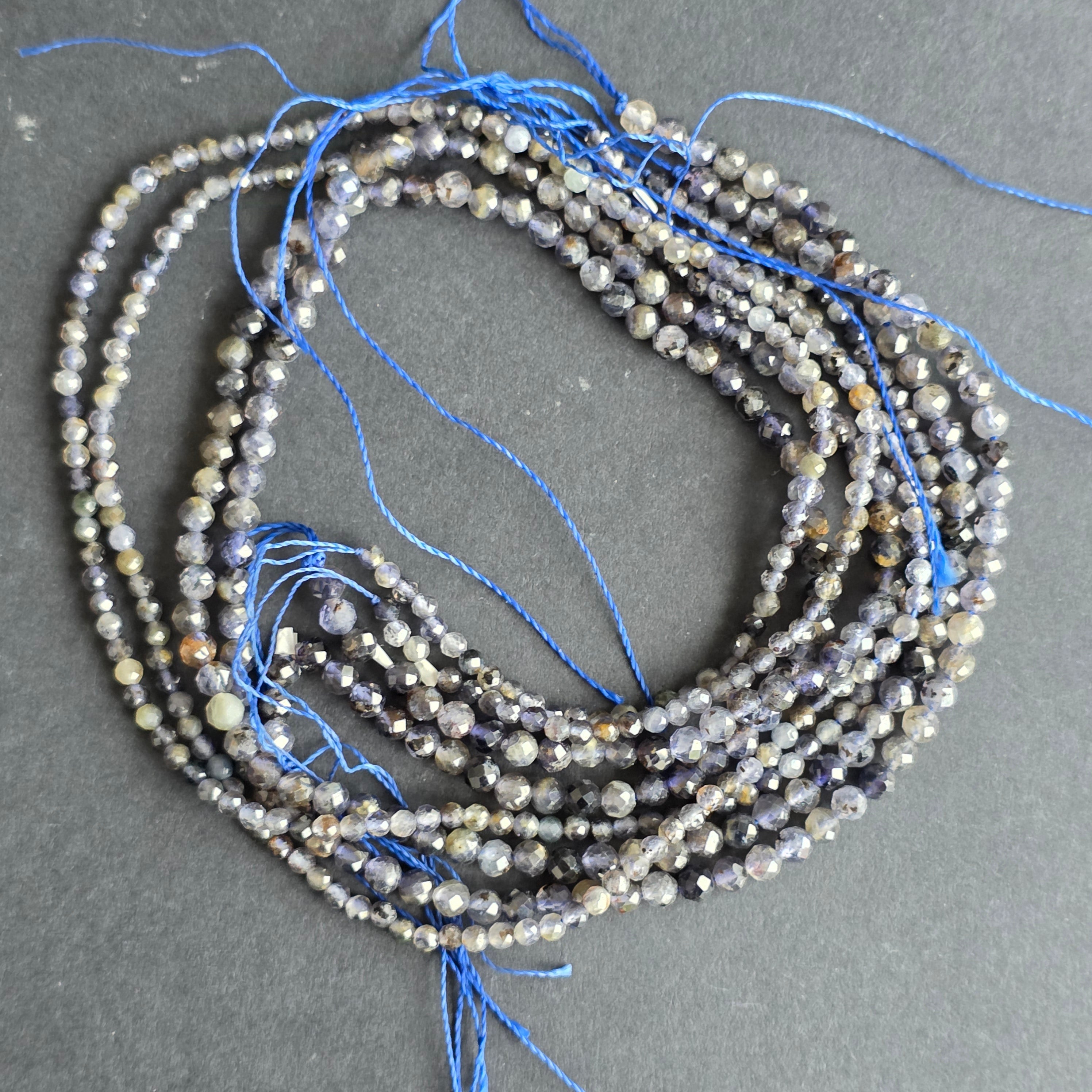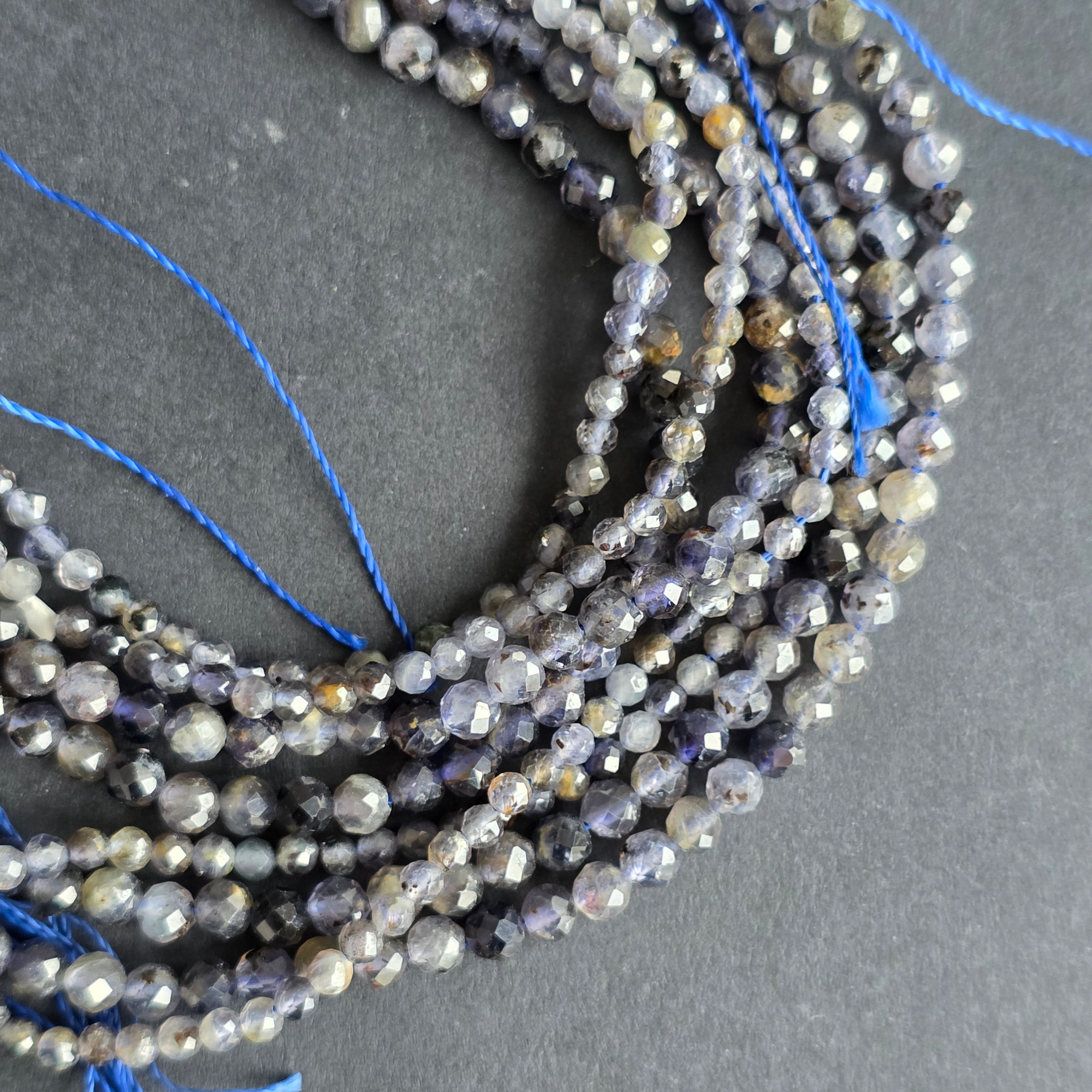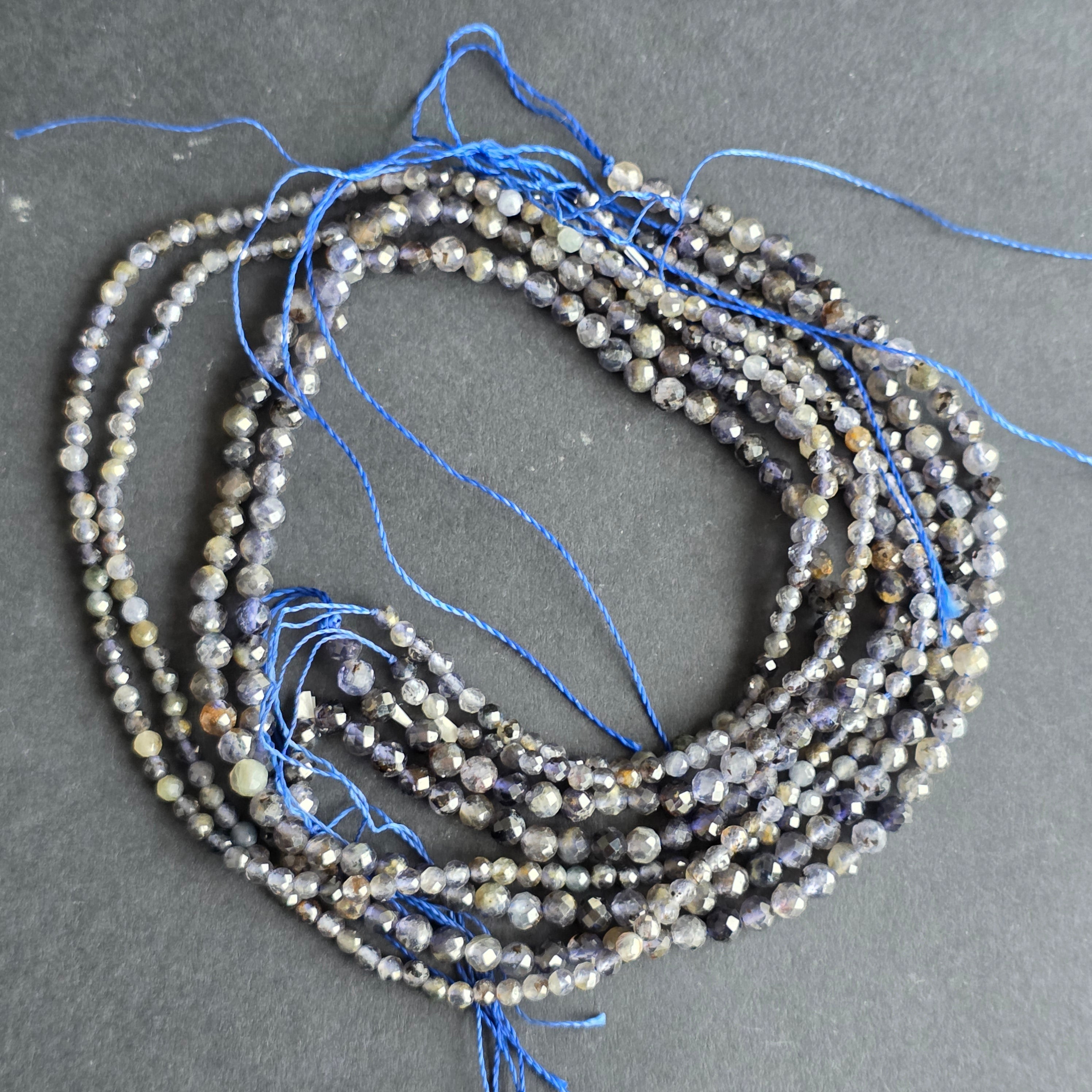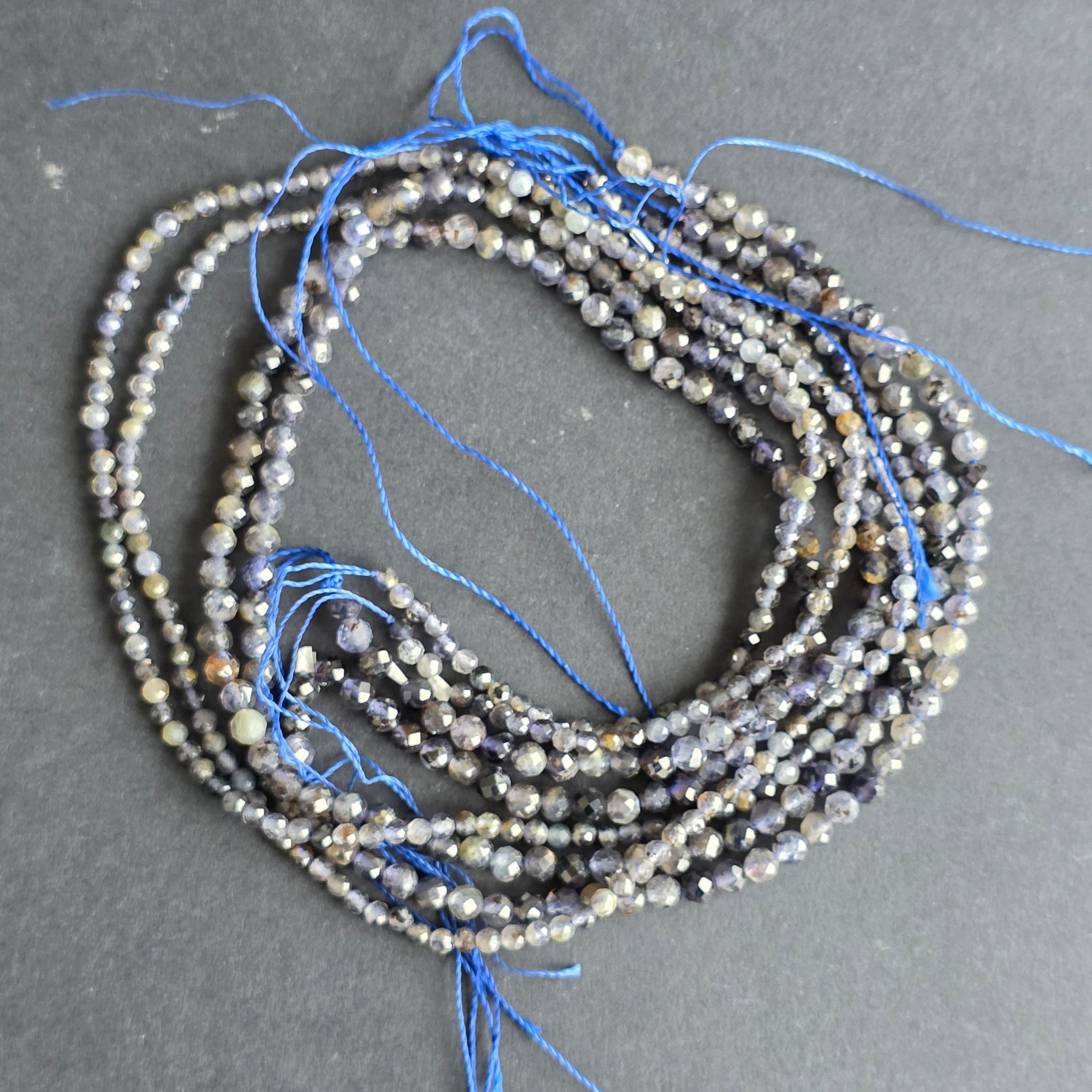 Низ от йолитови сферисъставен от естествени фасетирани сферични мъниста, идеален за колиета, гривни или други ръчно изработени бижута.