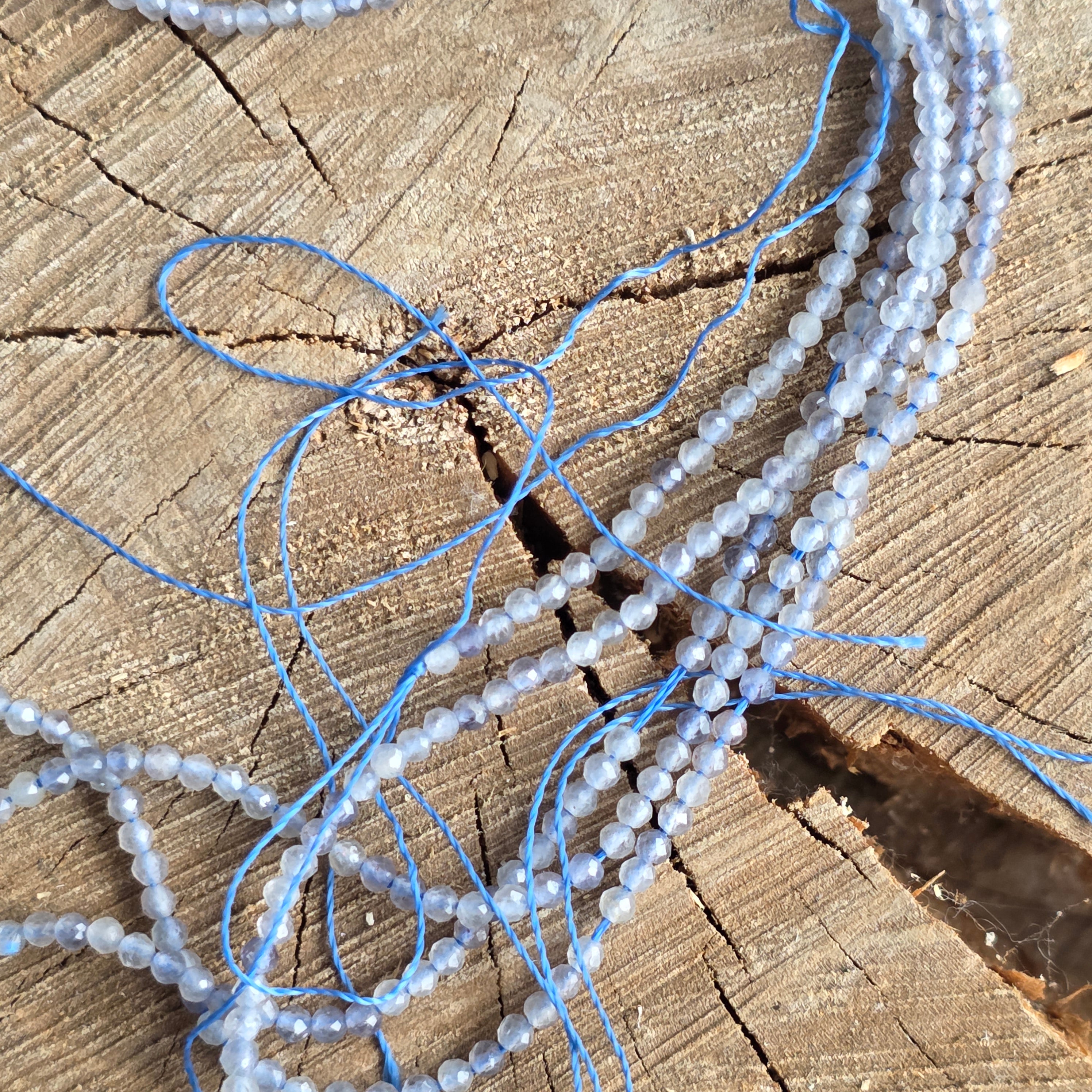 Низ от йолитови сферисъставен от естествени фасетирани сферични мъниста, перфектни за колиета, гривни или други ръчно изработени бижута.