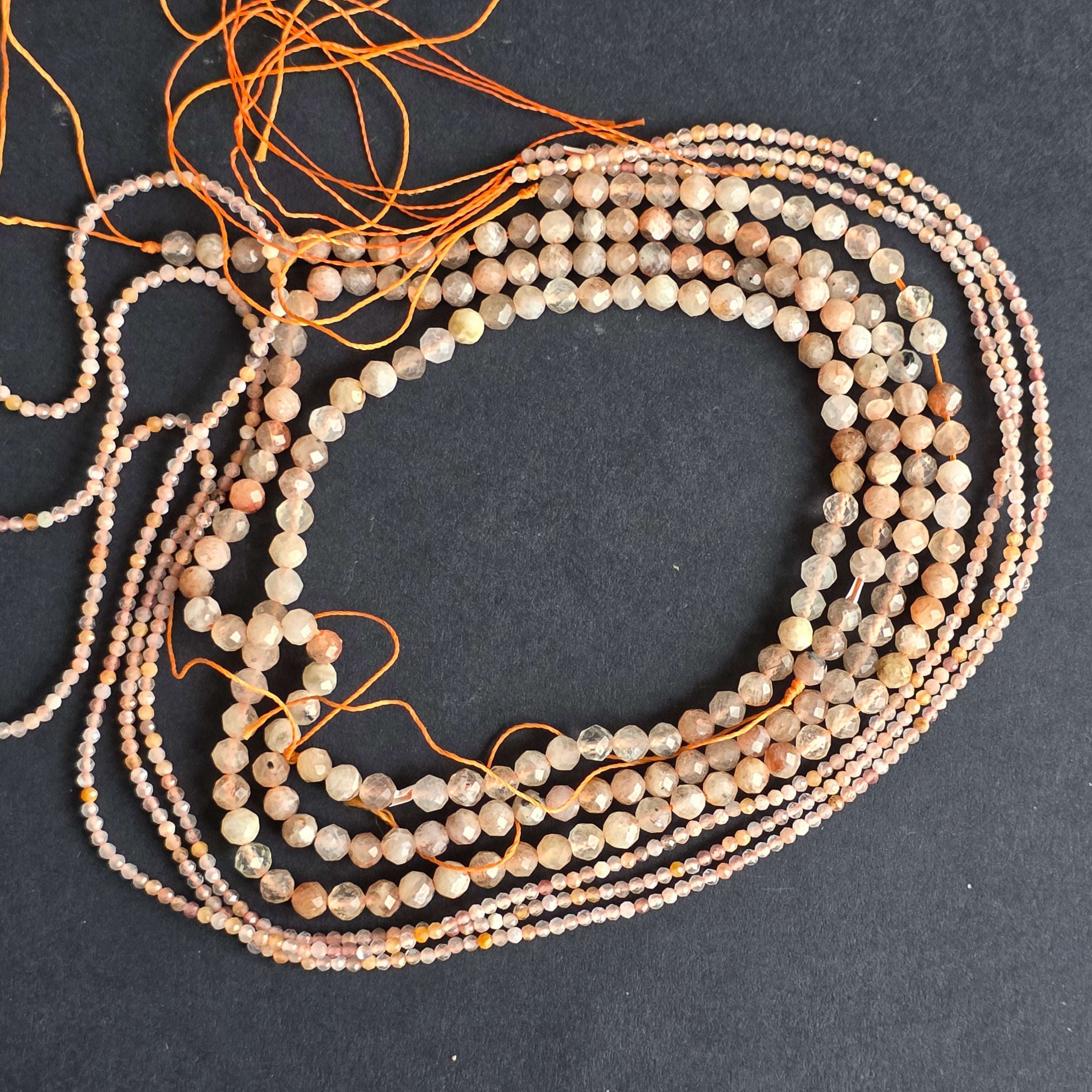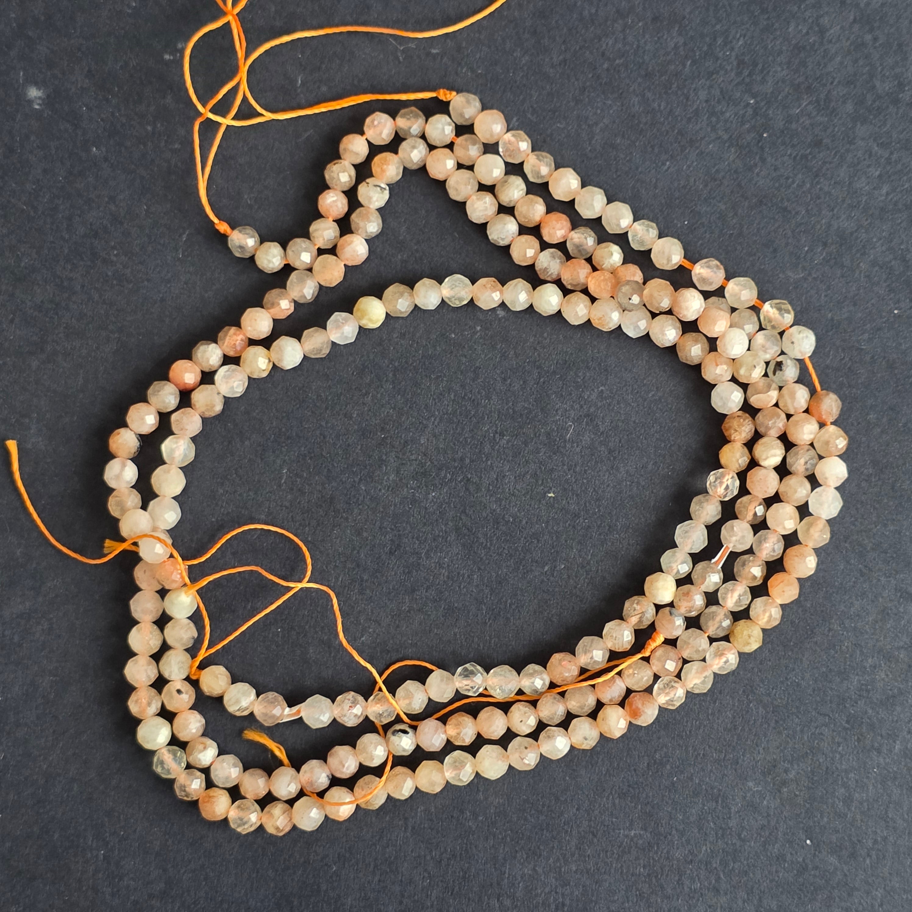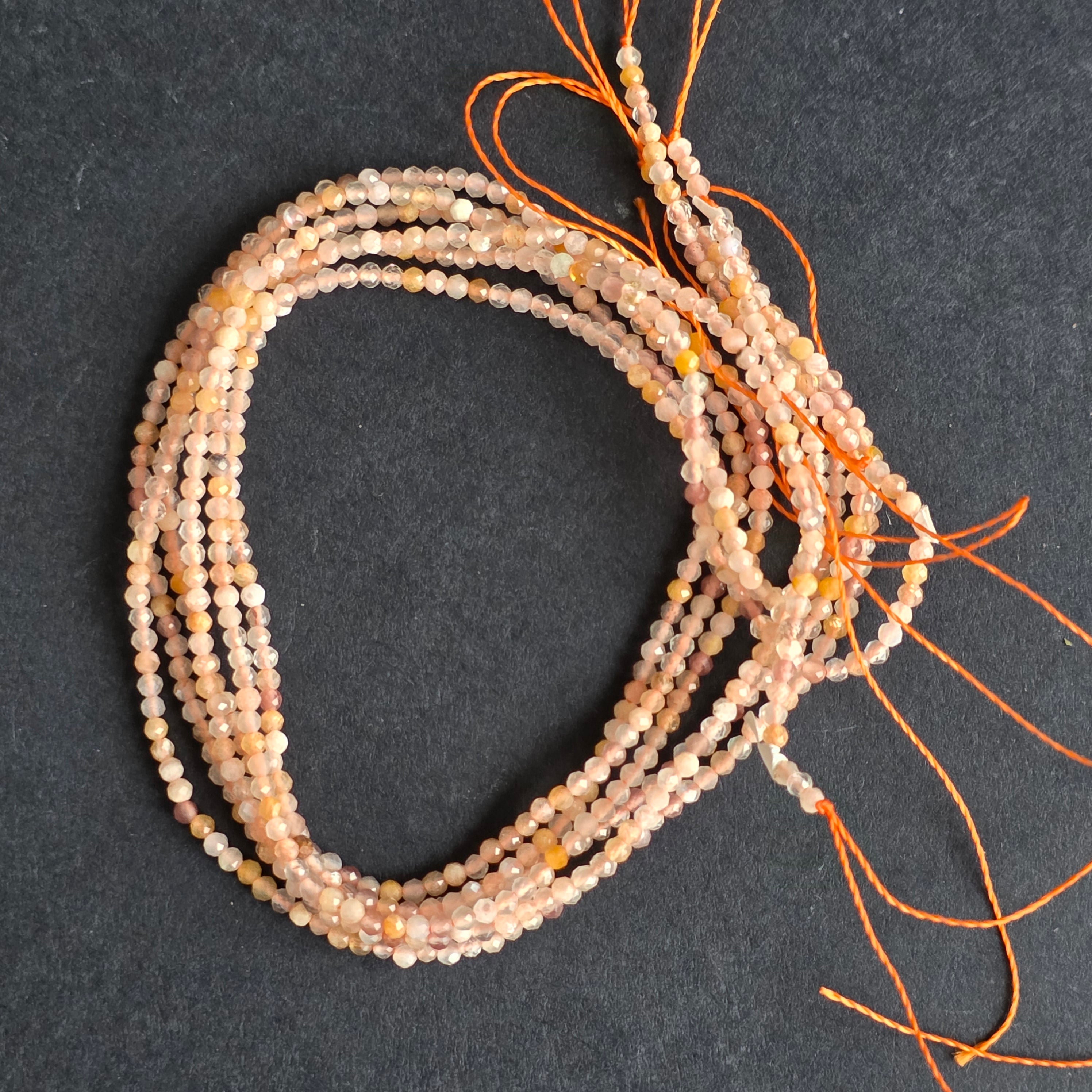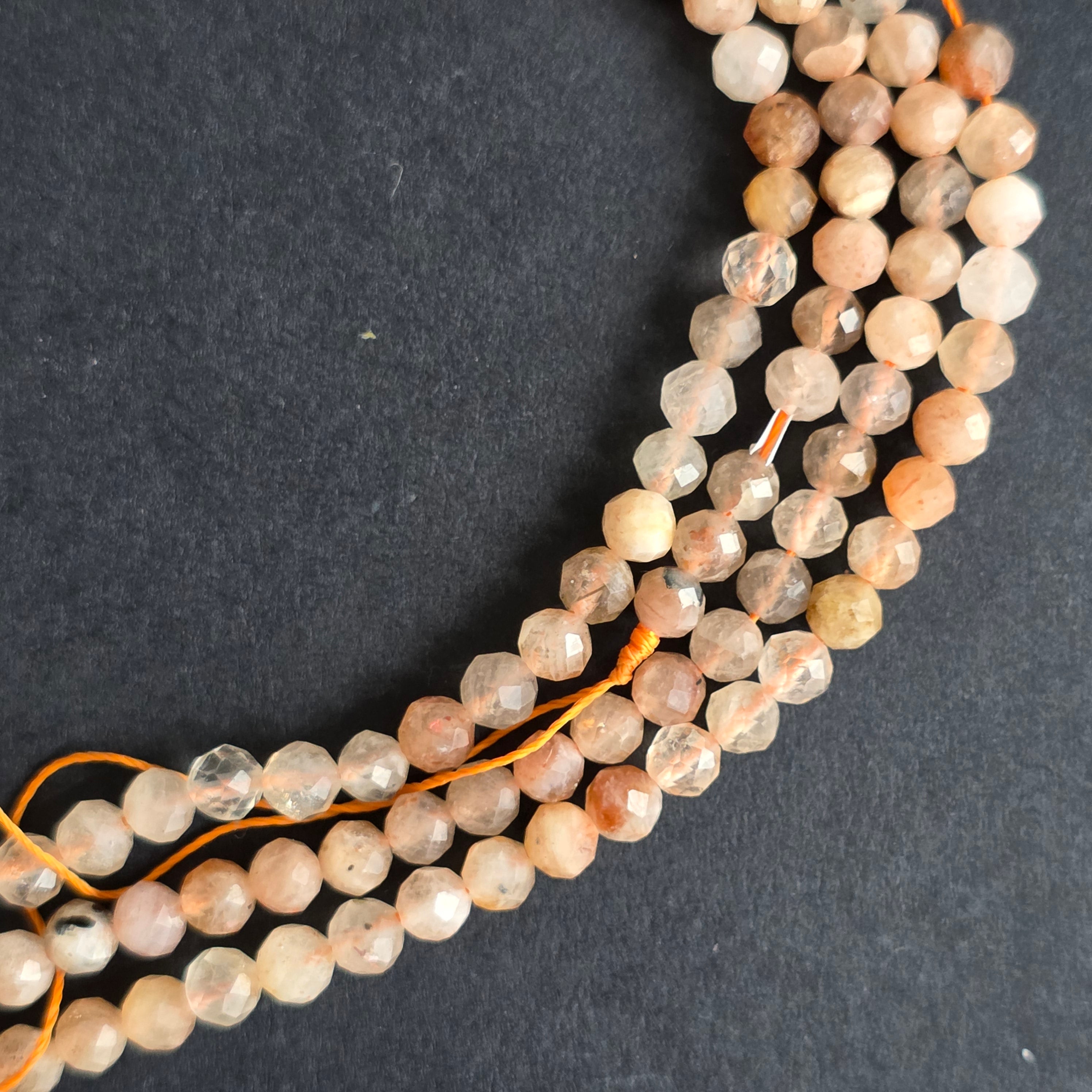 Низ от СЛЪНЧЕВ КАМЪК съставен от естествени фасетирани сферични мъниста,перфектен за колиета, гривни или други ръчно изработени бижута.