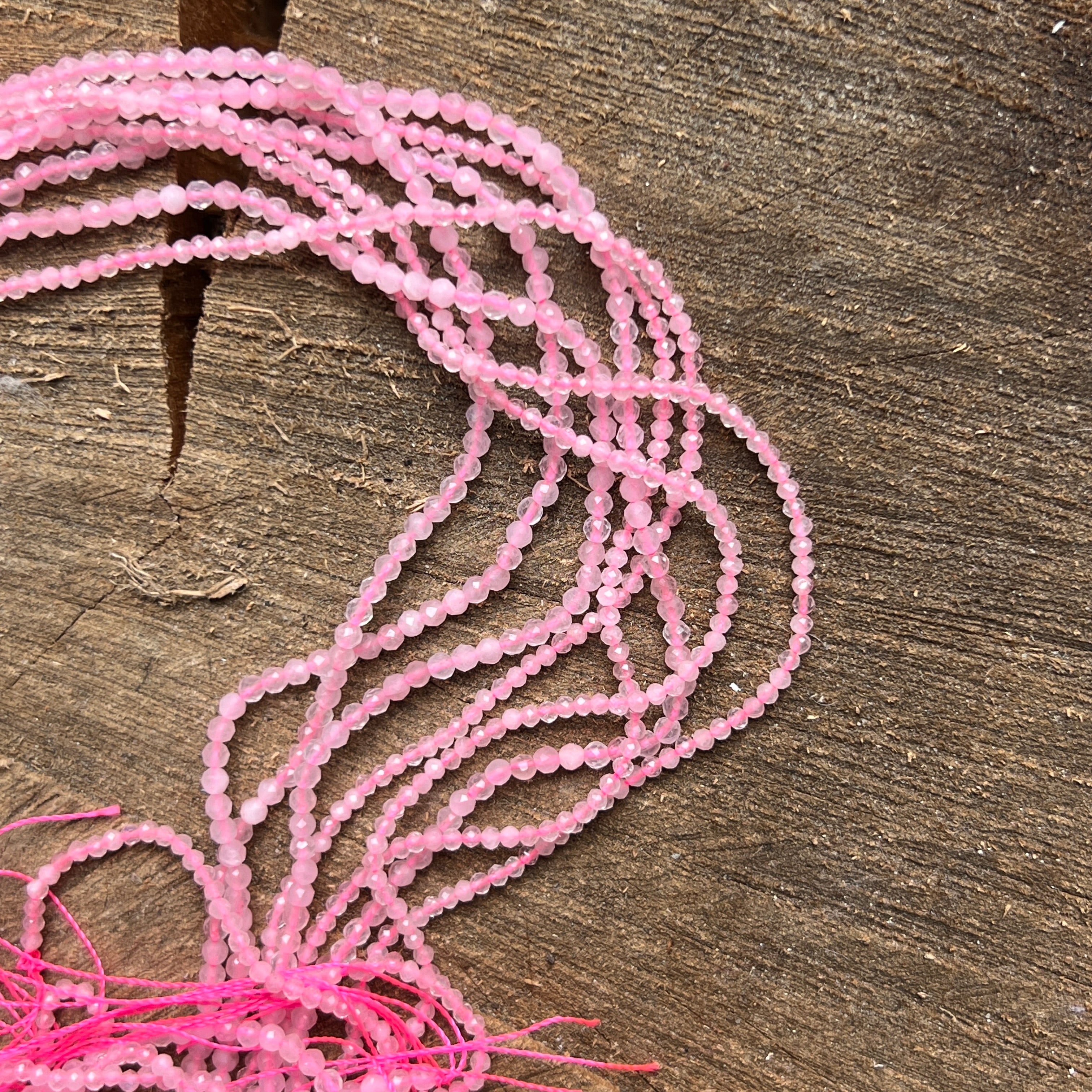 Низ от перли полускъпоценни камъни фасетирани топчета РОЗОВ КВАРЦ