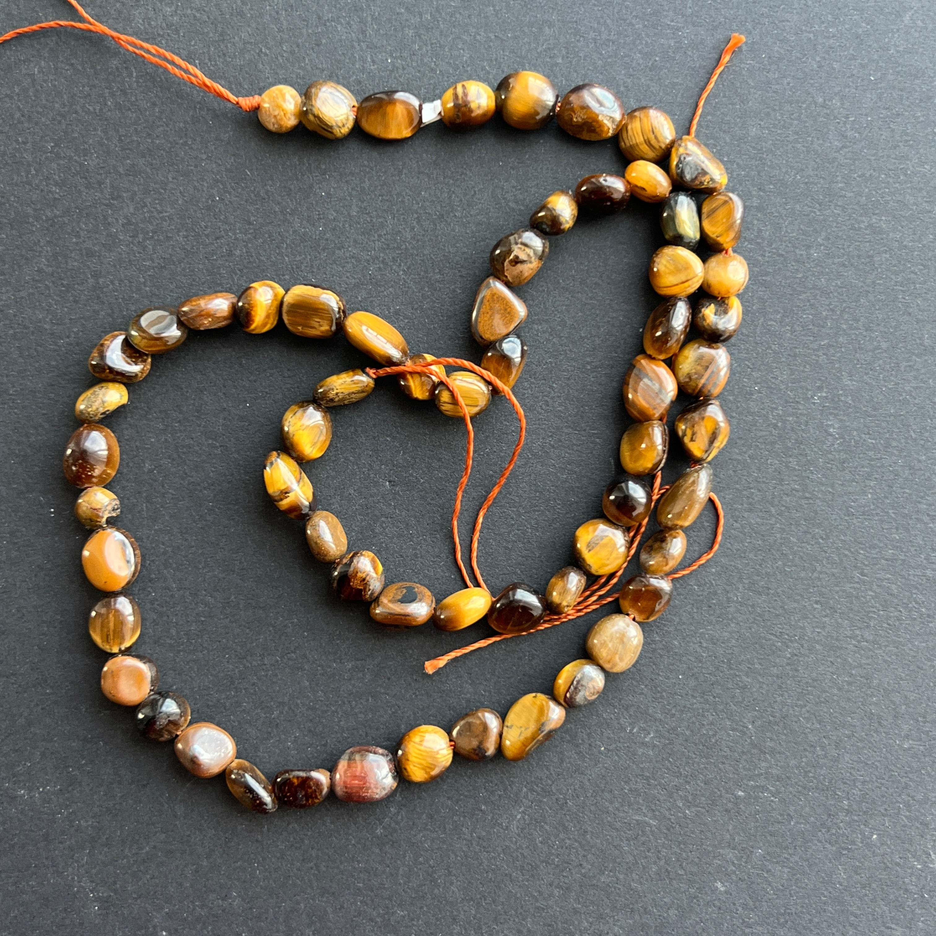 Низ от полускъпоценни камъни, необработени тигрови очи