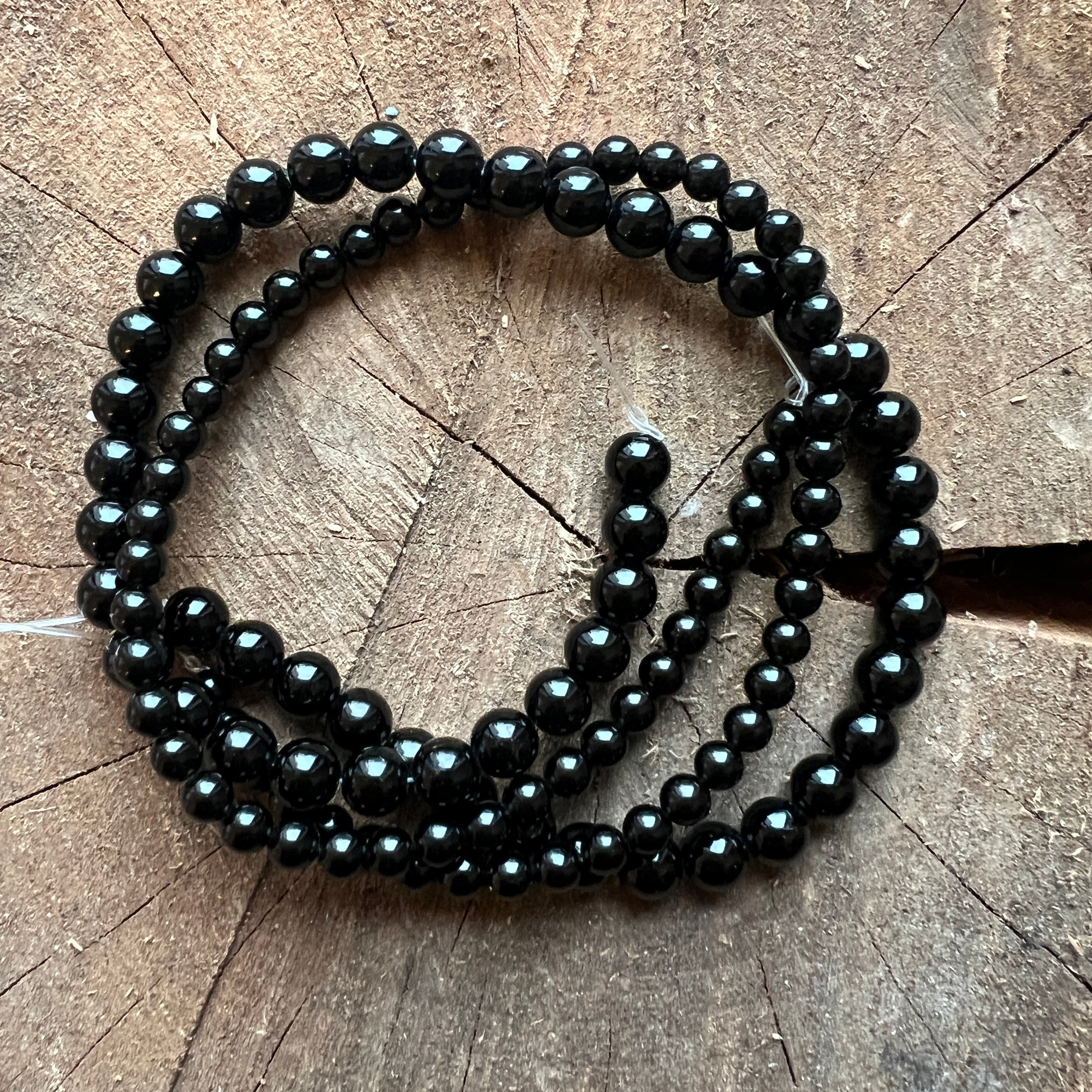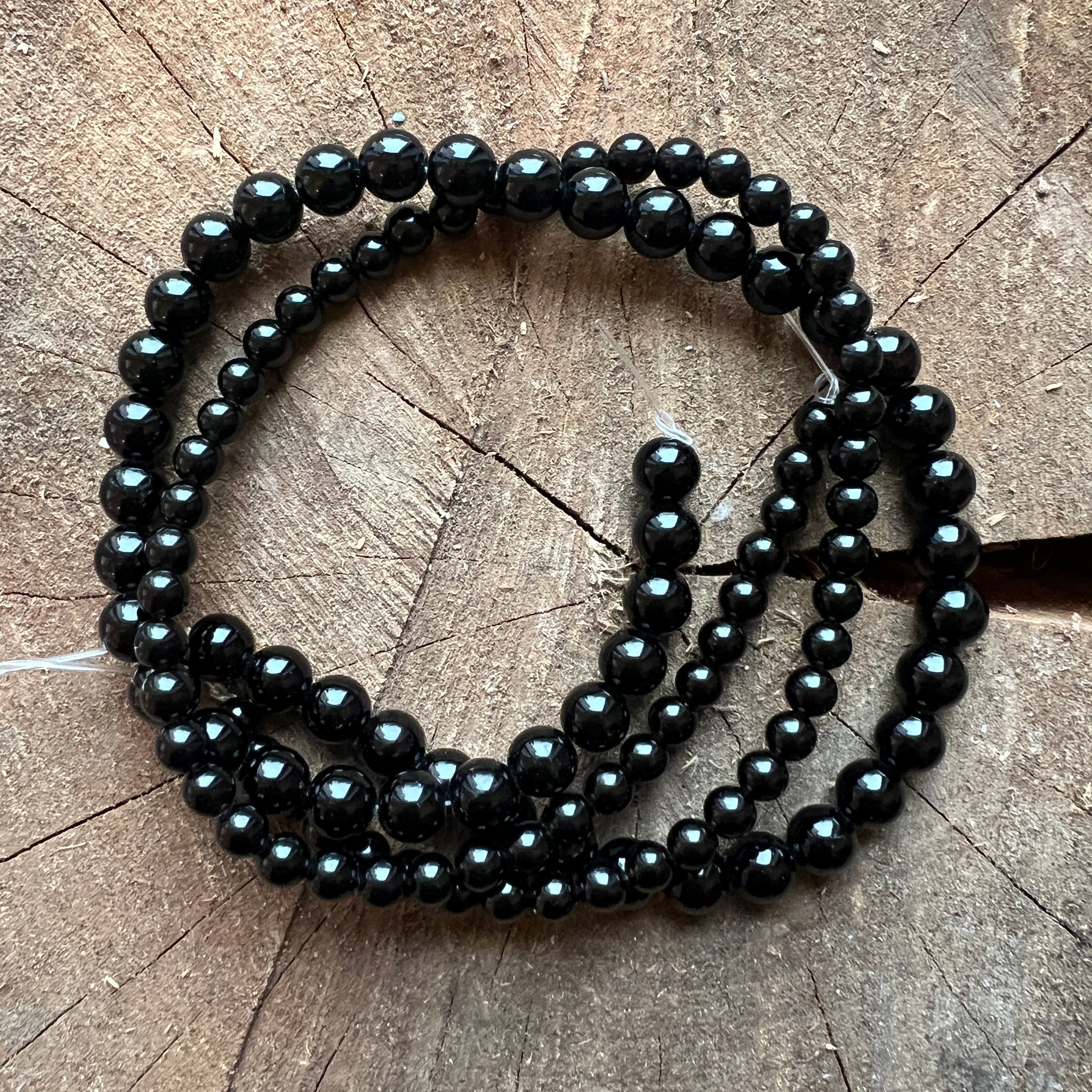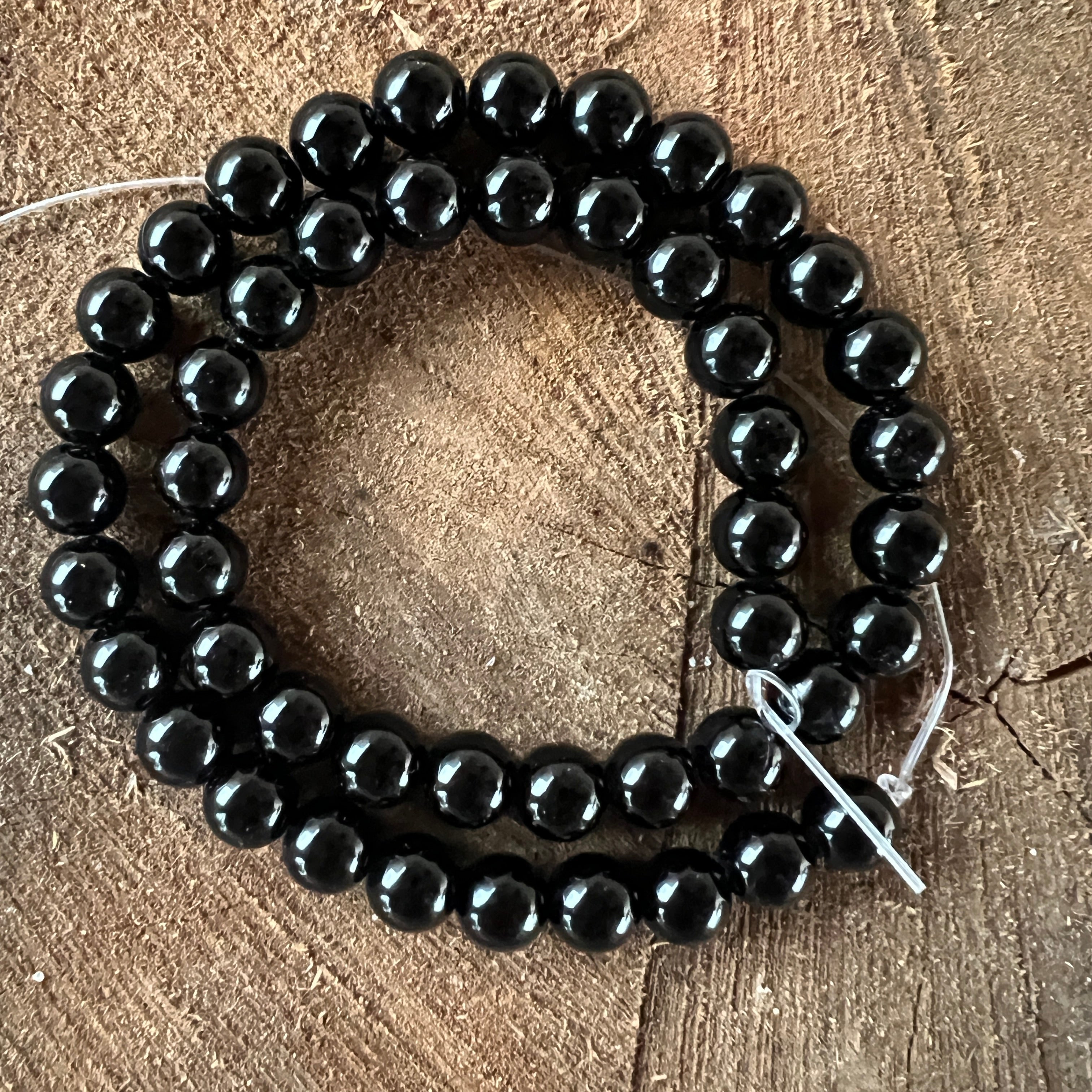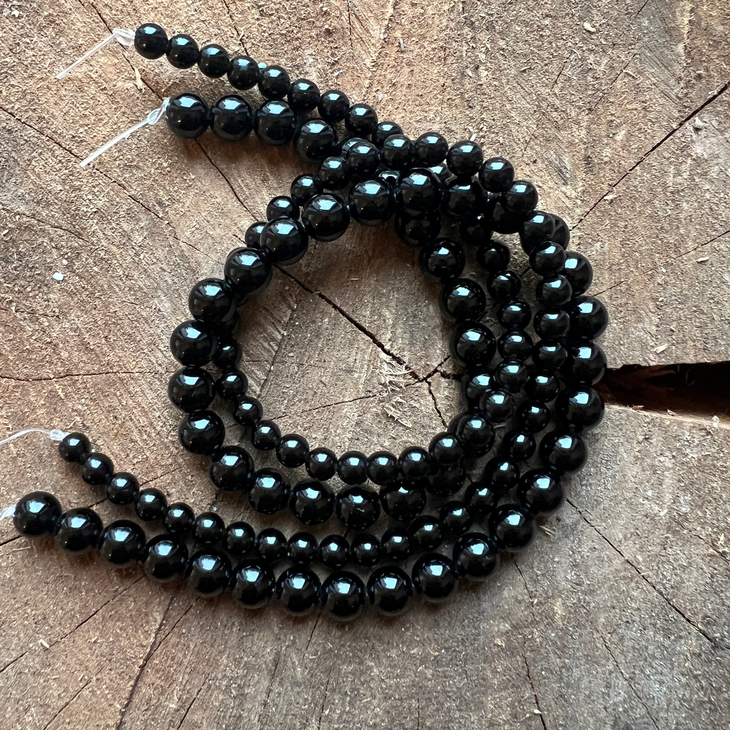 Наниз от обсидиан, съставен от естествени сферични мъниста, перфектен за колиета, гривни или други ръчно изработени бижута.