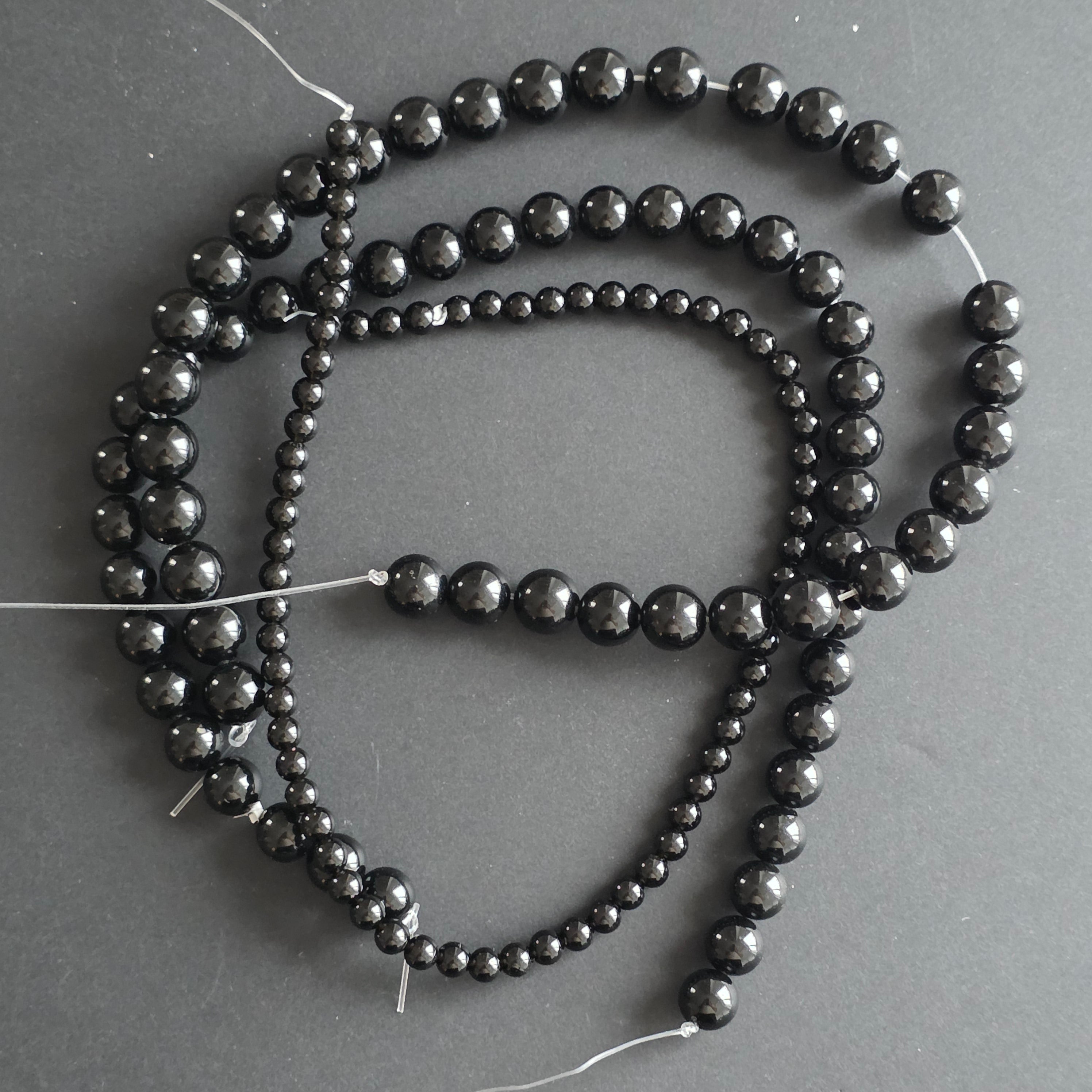 Гривна от обсидиан, съставена от естествени сферични мъниста, перфектна за колиета, гривни или други ръчно изработени бижута.