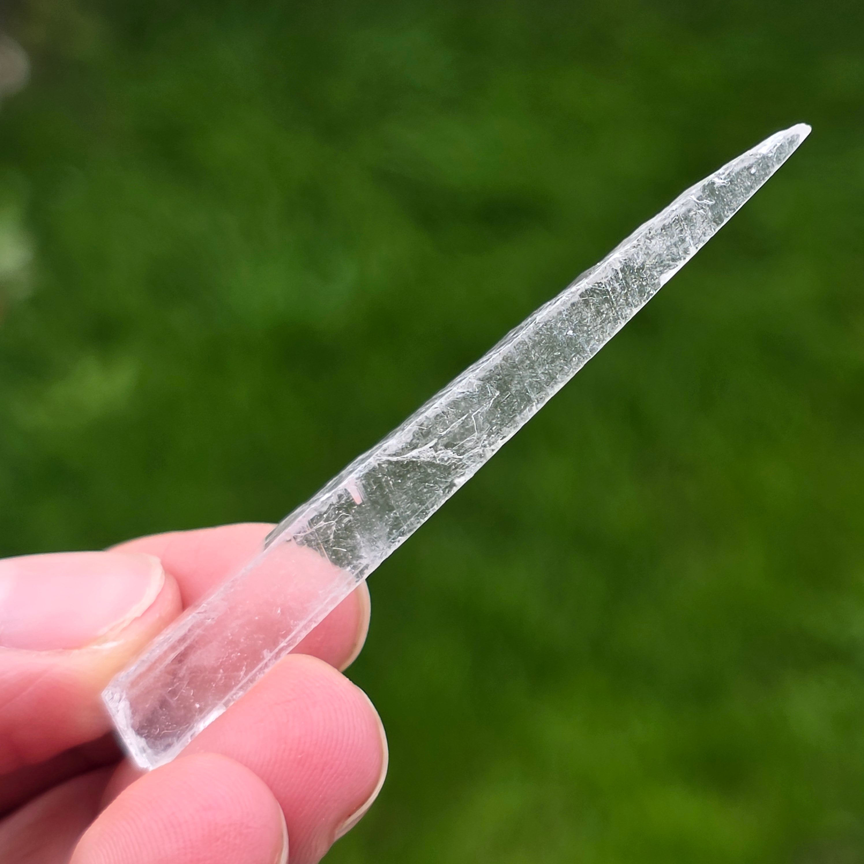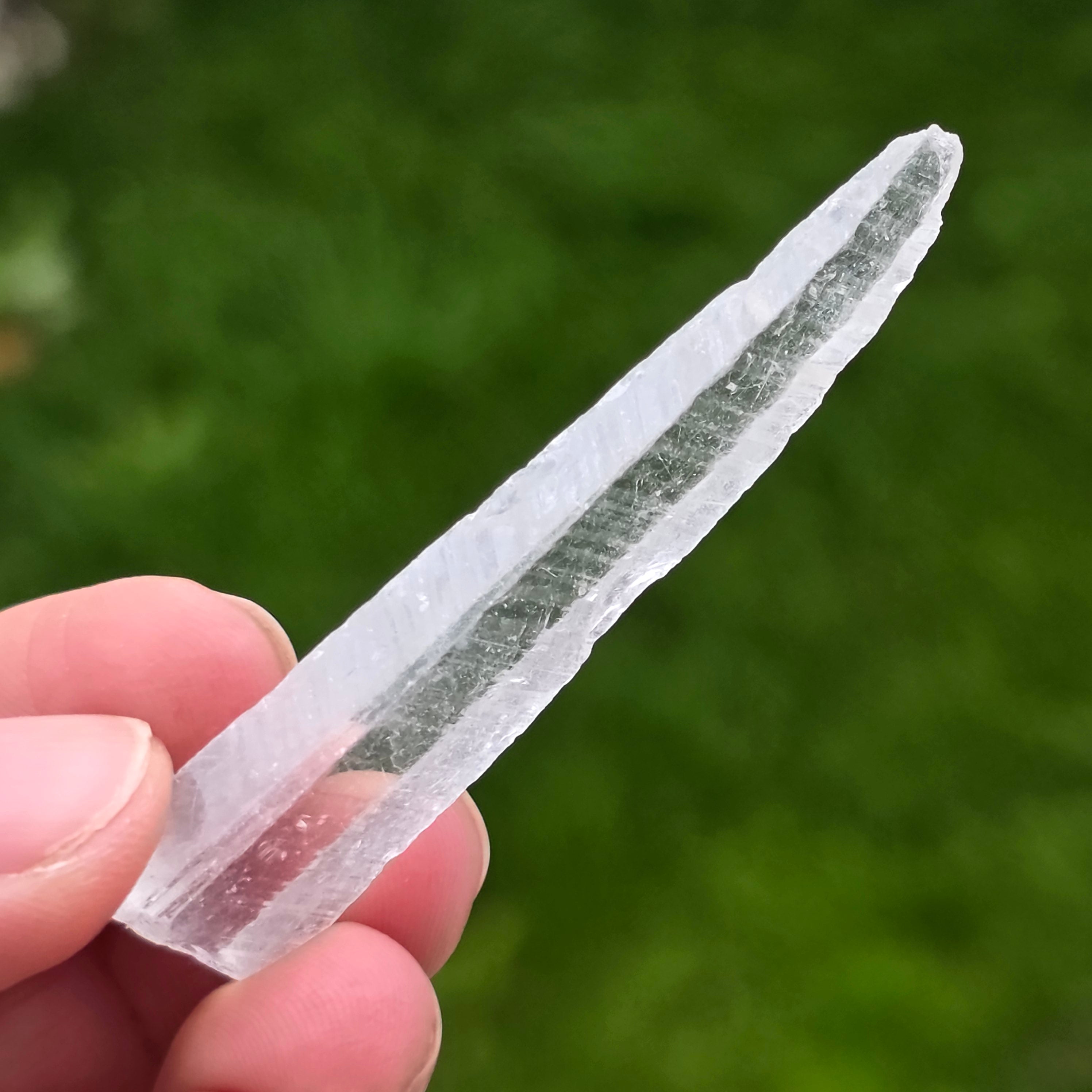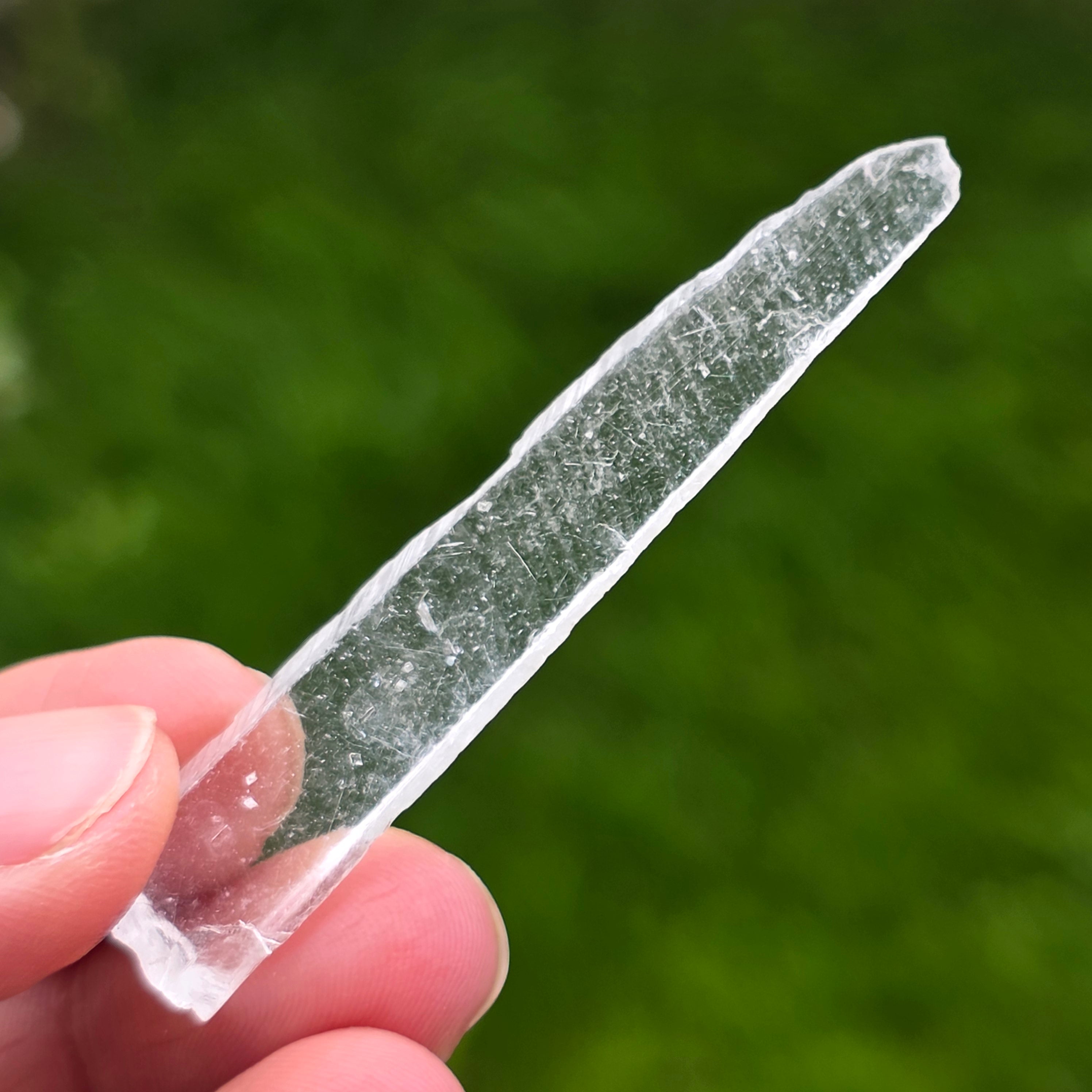Кристалите се проявяват във форма на тънки призматични структури с ясни върховес висока прозрачност и дискретен блясък, почти стъклен. Тяхната издължена форма и начин на растеж придават на всеки екземпляр лек, визуално крехък характер, но със строго минералогично определена структура. Чистият и равномерен вид прави тези образци изключително ценени в колекционерските витрини.