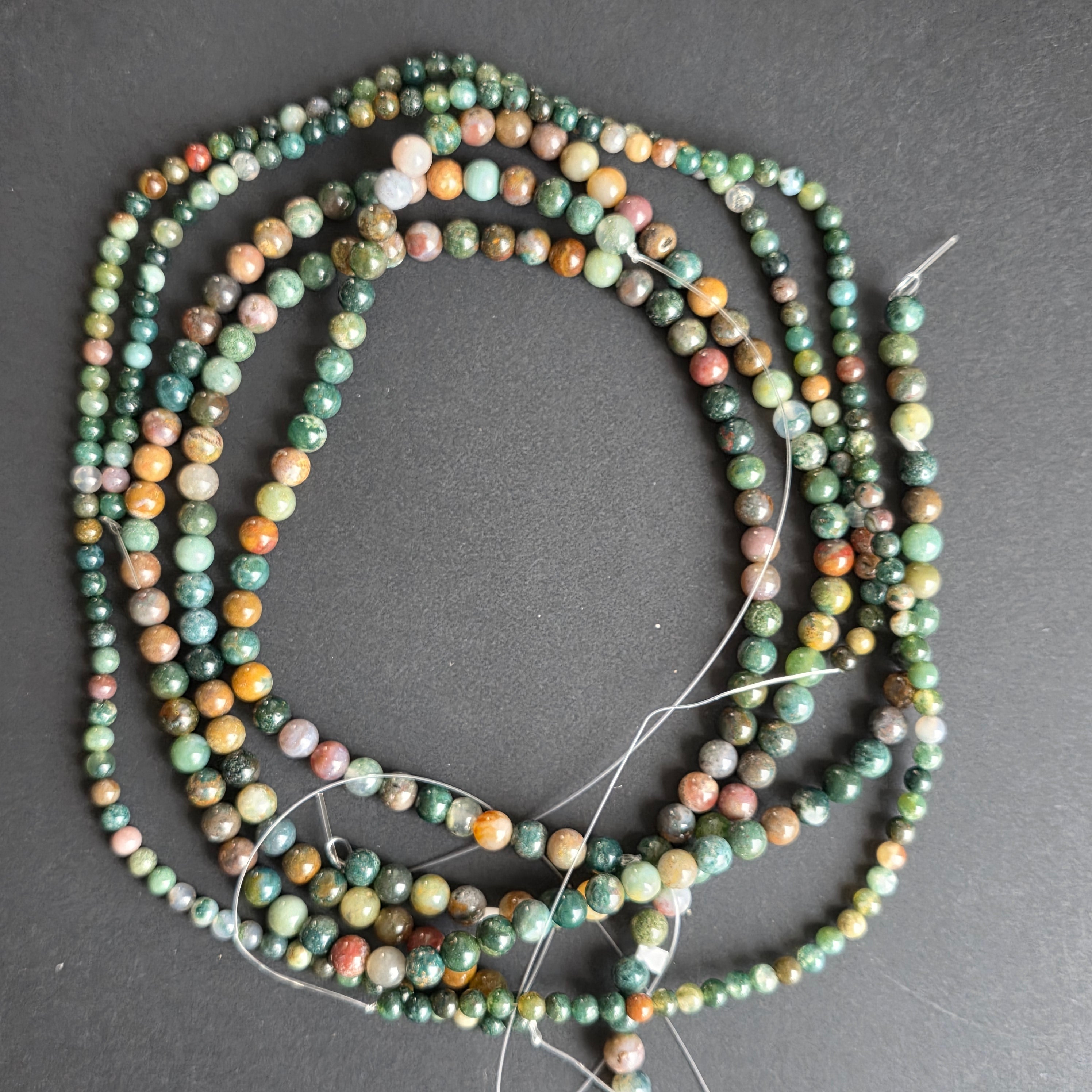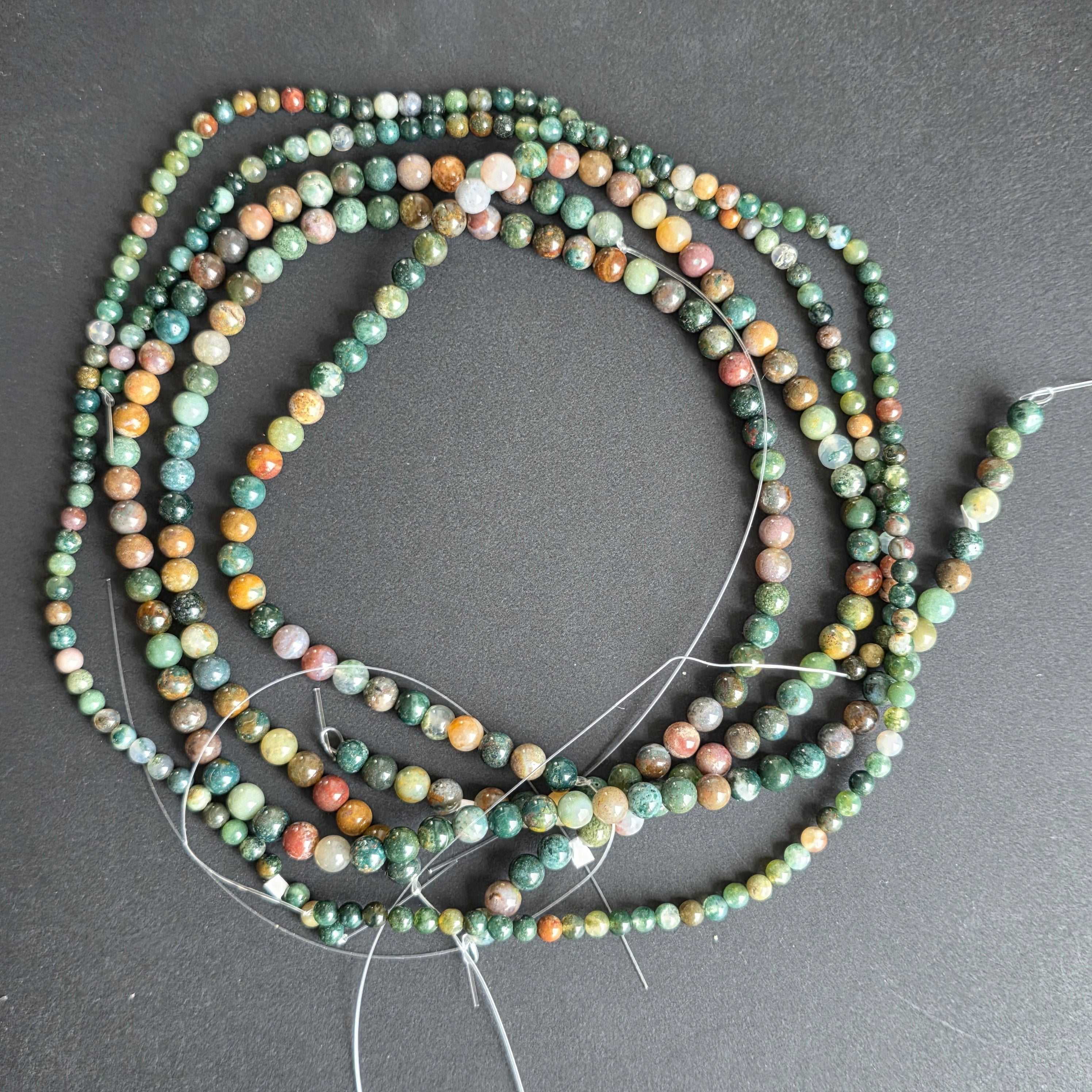 Нишка ИНДИЙСКИ АХАТсъставена от естествени сферични мъниста, идеална за колиета, гривни или други ръчно изработени бижута.