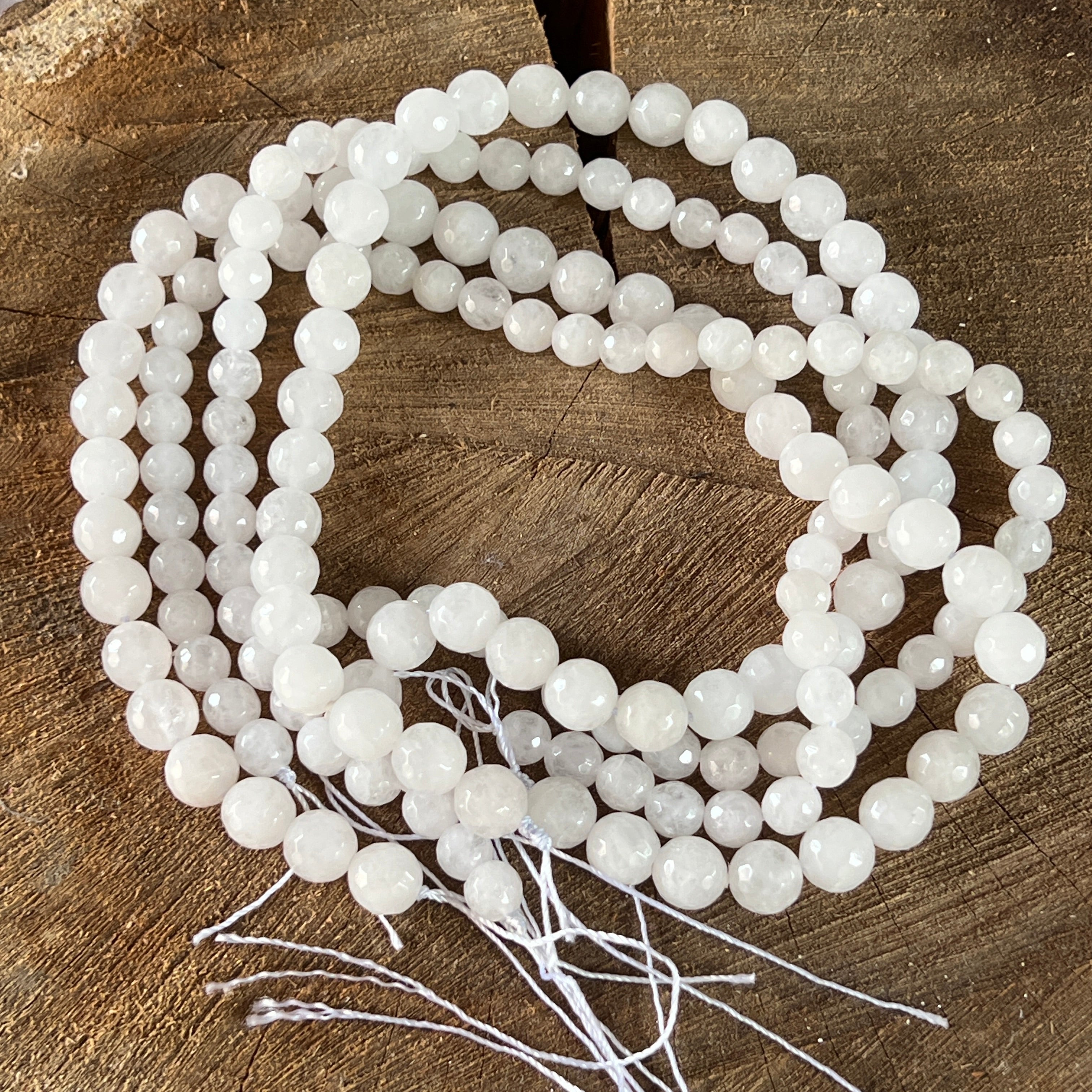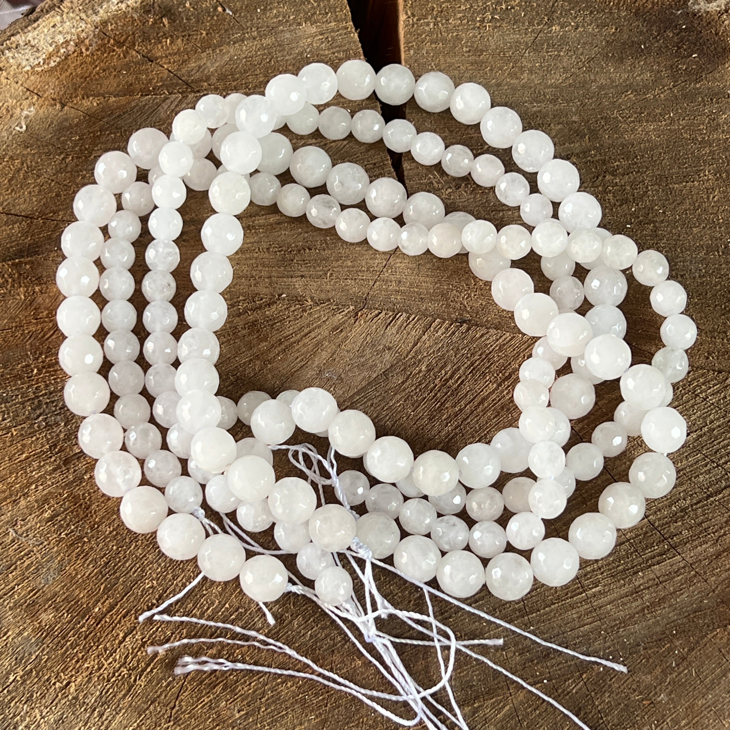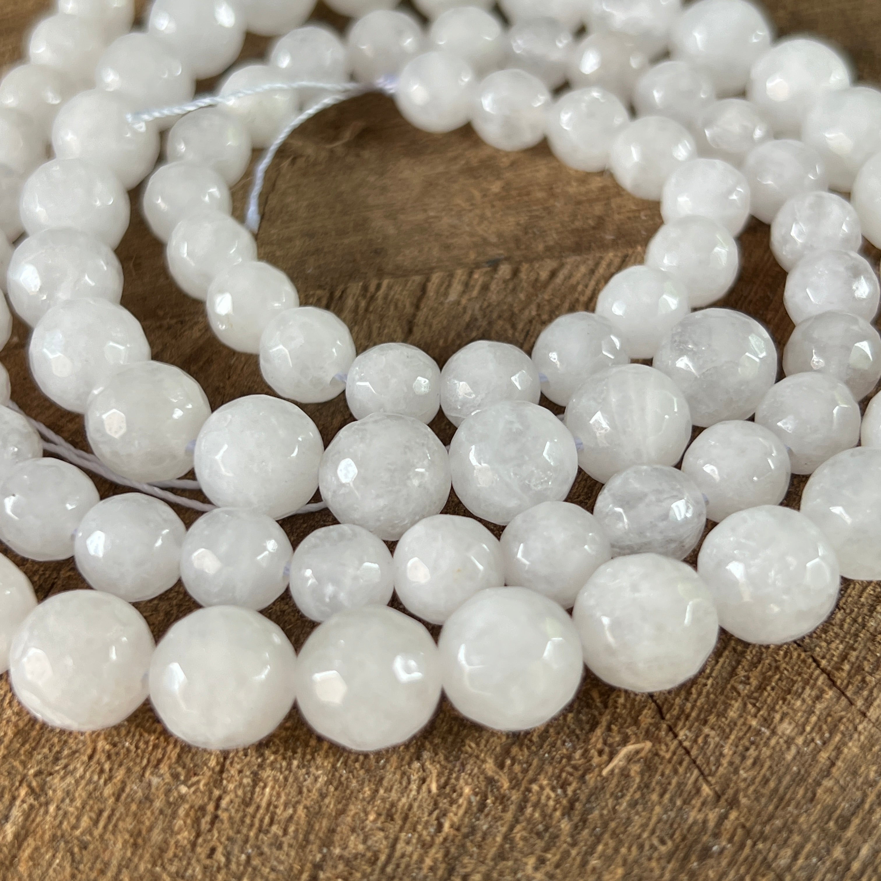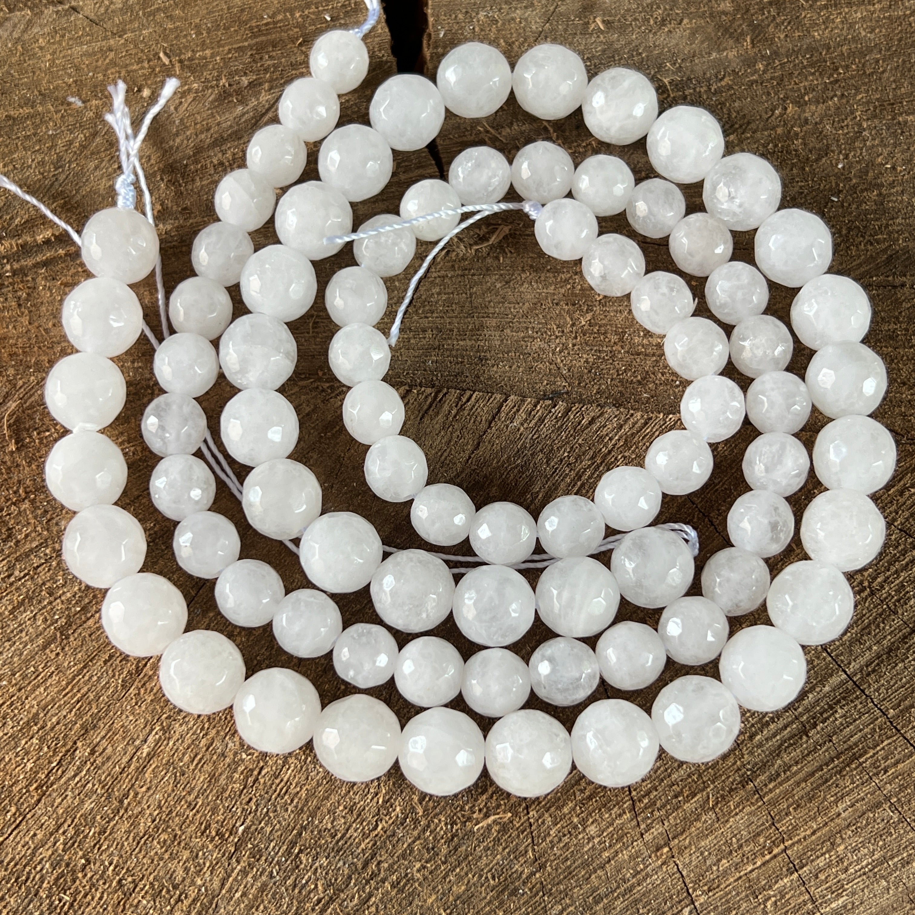 Нишка от БЯЛ ЯД, съставена от естествени фасетирани сферични мъниста, перфектна за колиета, гривни или други ръчно изработени бижута.