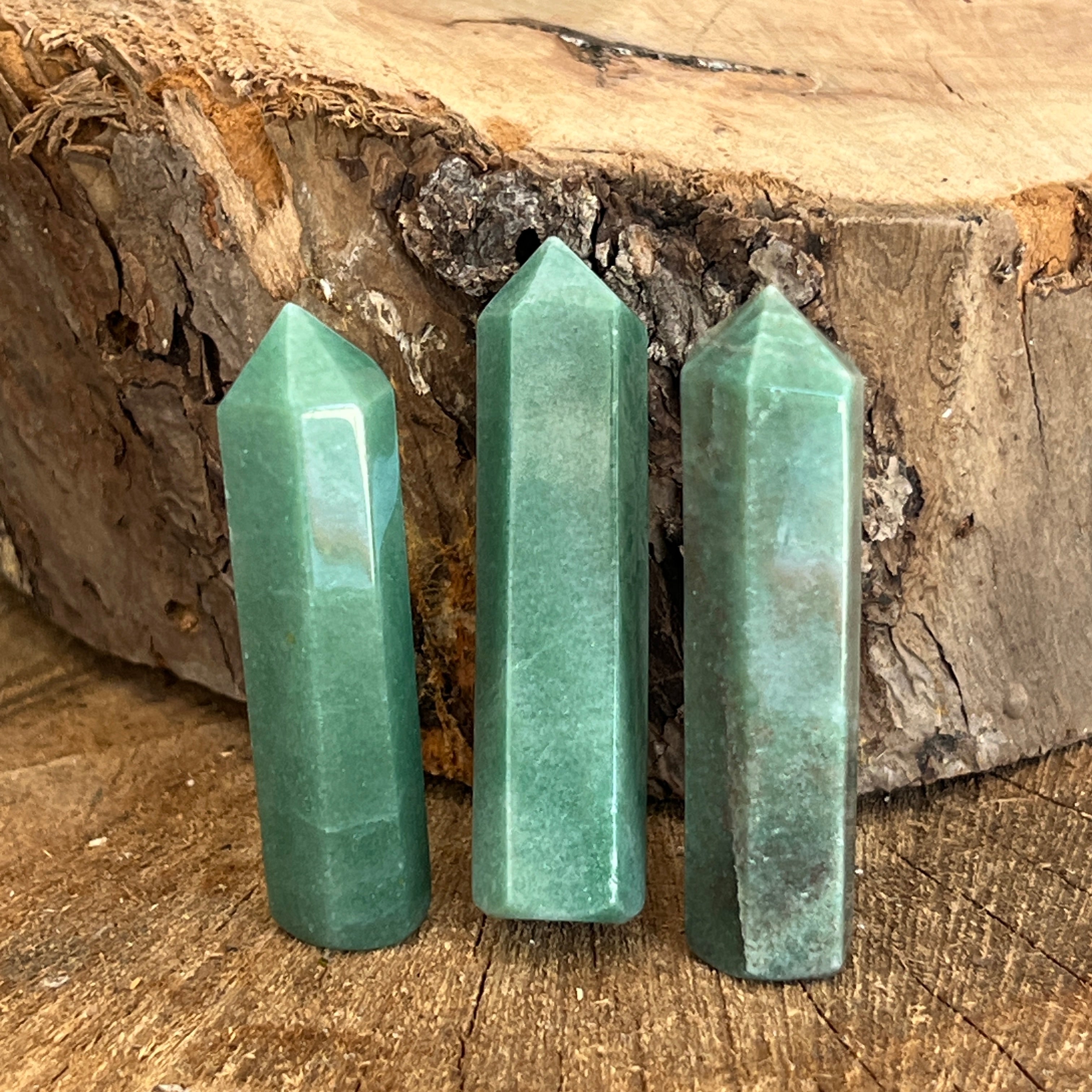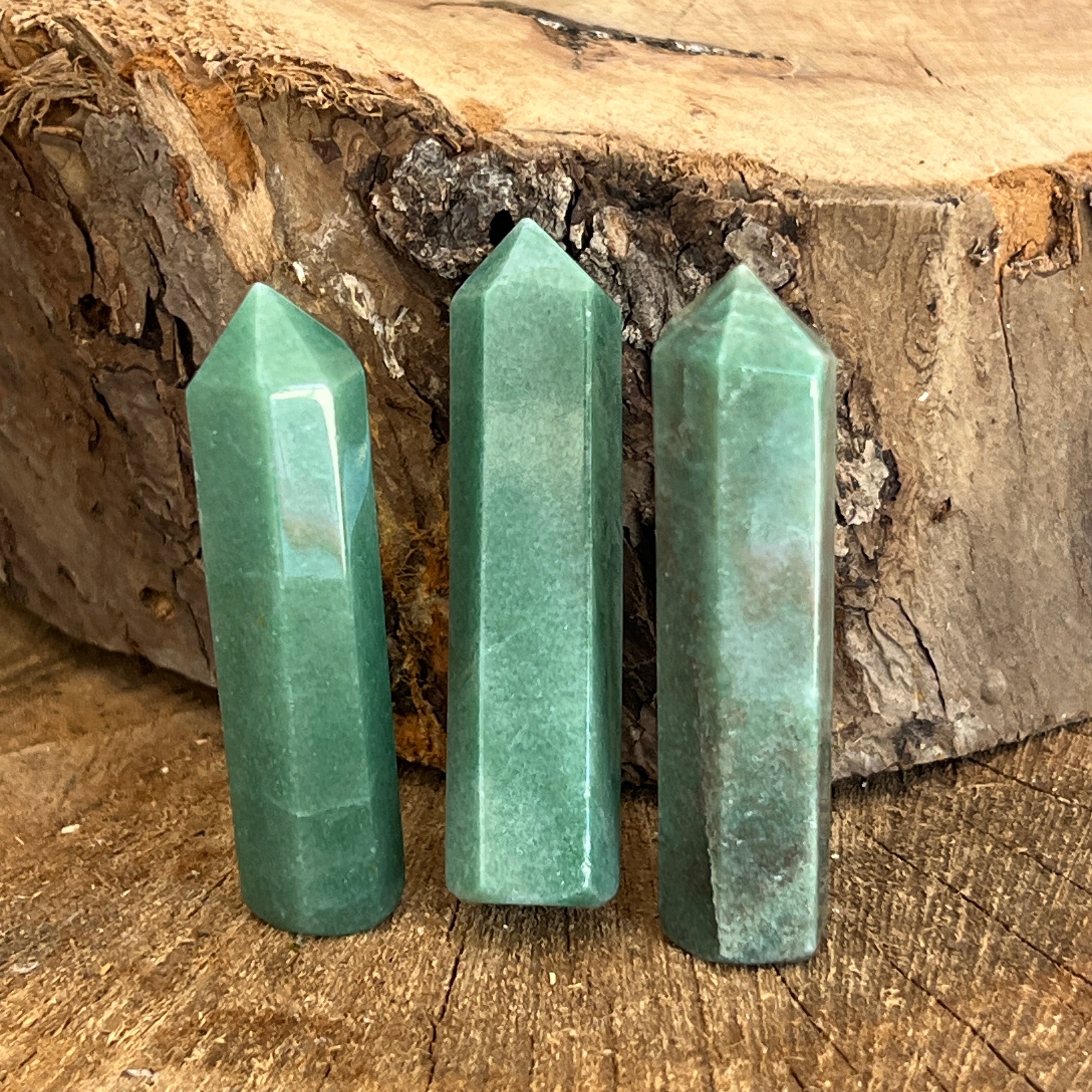 Обелискът от зелен авентурин съчетава елегантната си форма с успокояващата и възстановителна енергия на камъка, като символизира растеж и хармония.