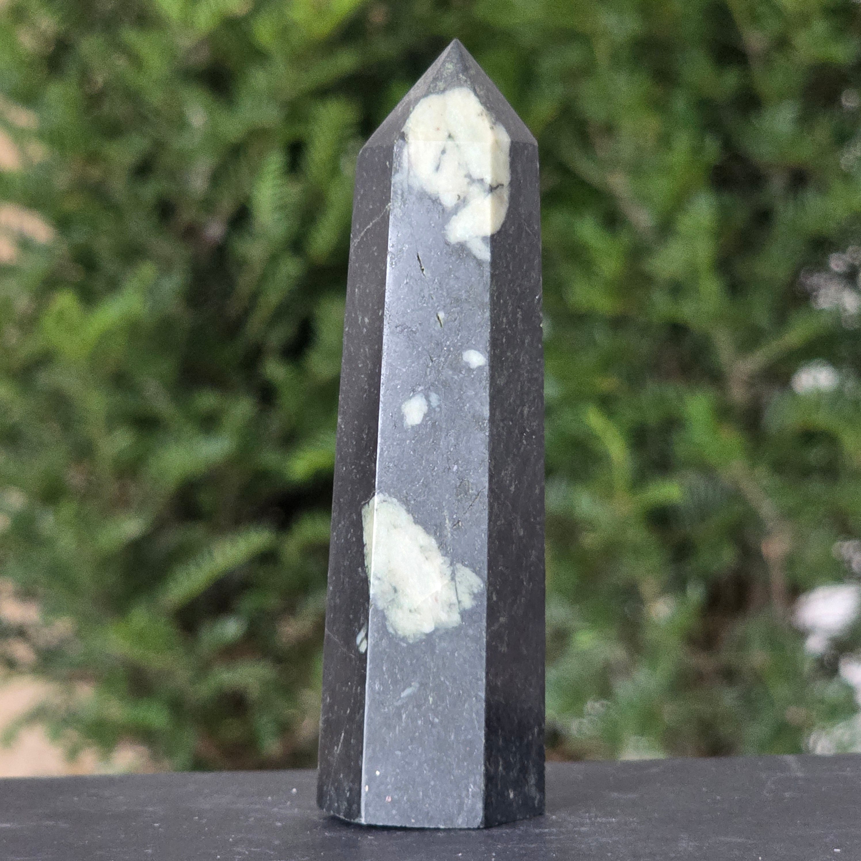 Формата на обелиск, символ на духовното извисяване, усилва енергията на камъка и я насочва към яснота, кураж и удовлетворение.