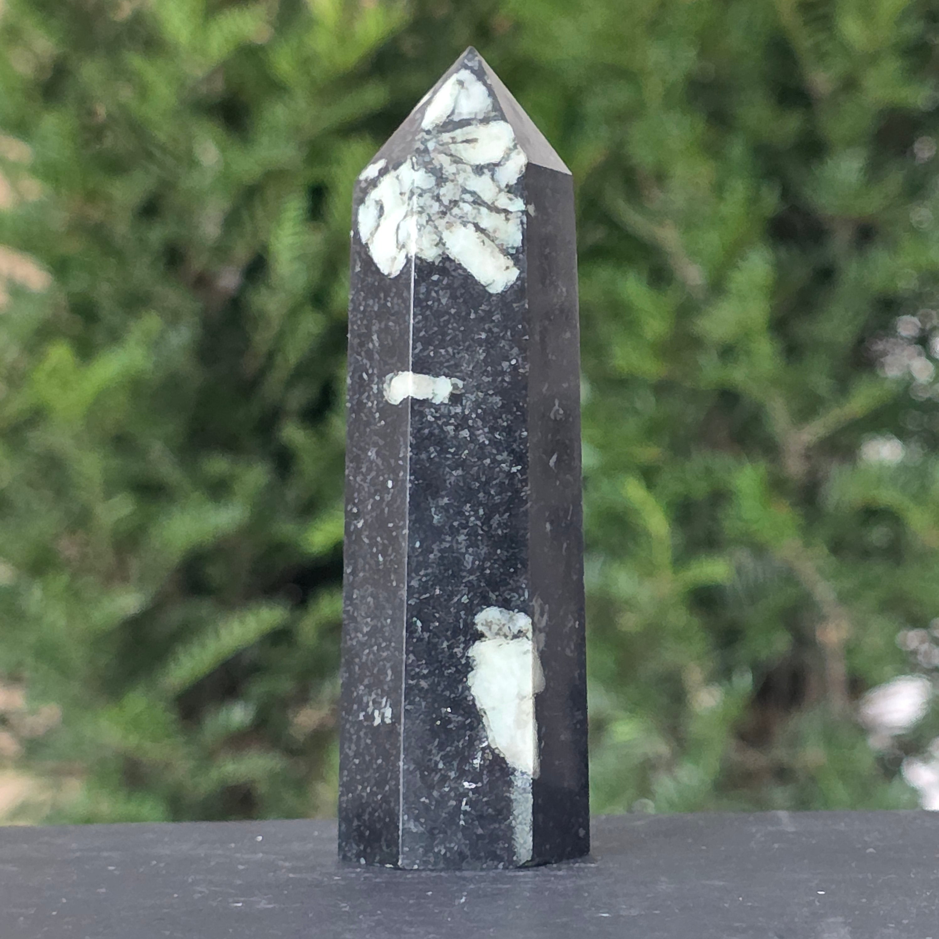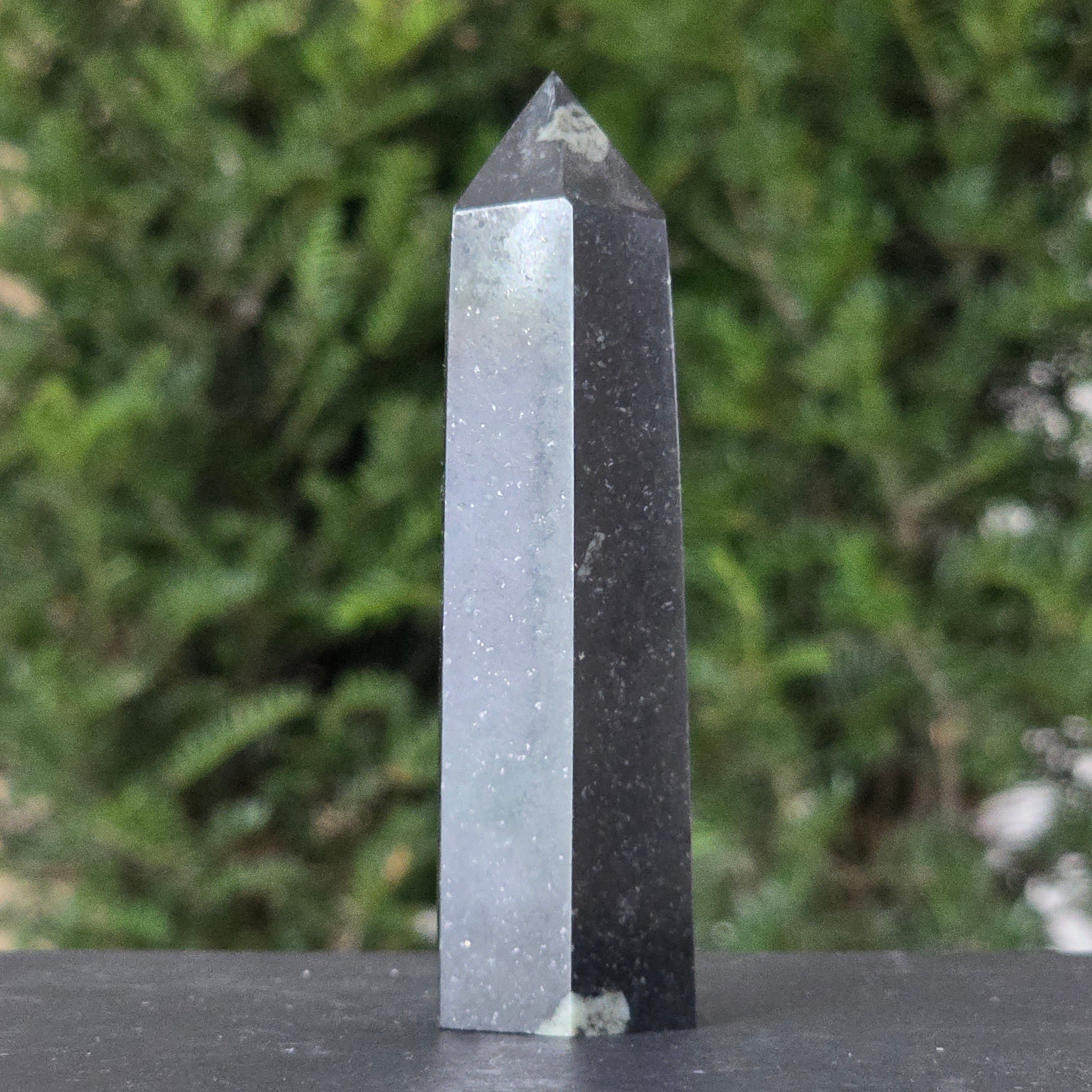 Формата на обелиск, символ на духовното извисяване, усилва енергията на камъка и я насочва към яснота, кураж и удовлетворение.