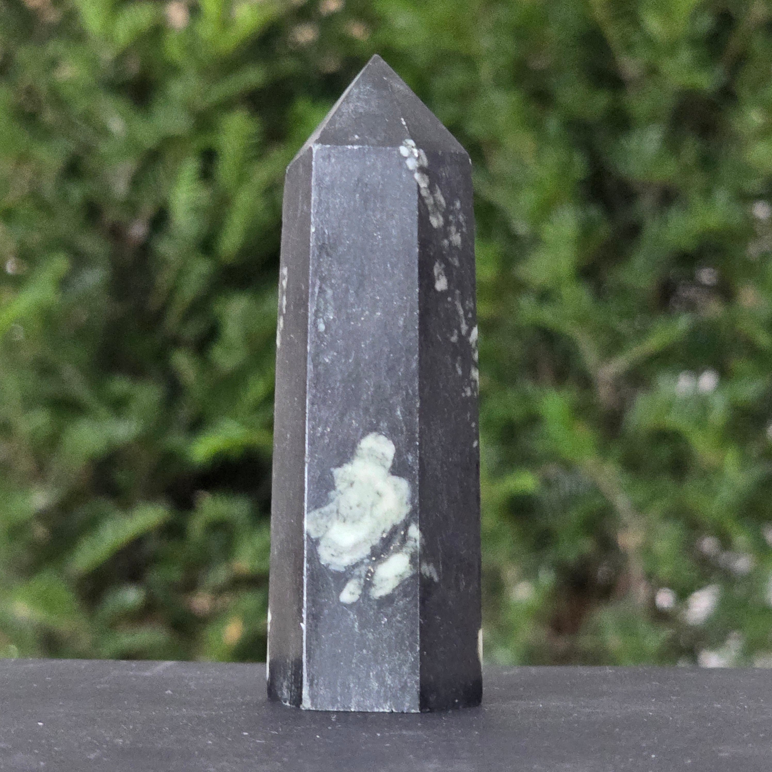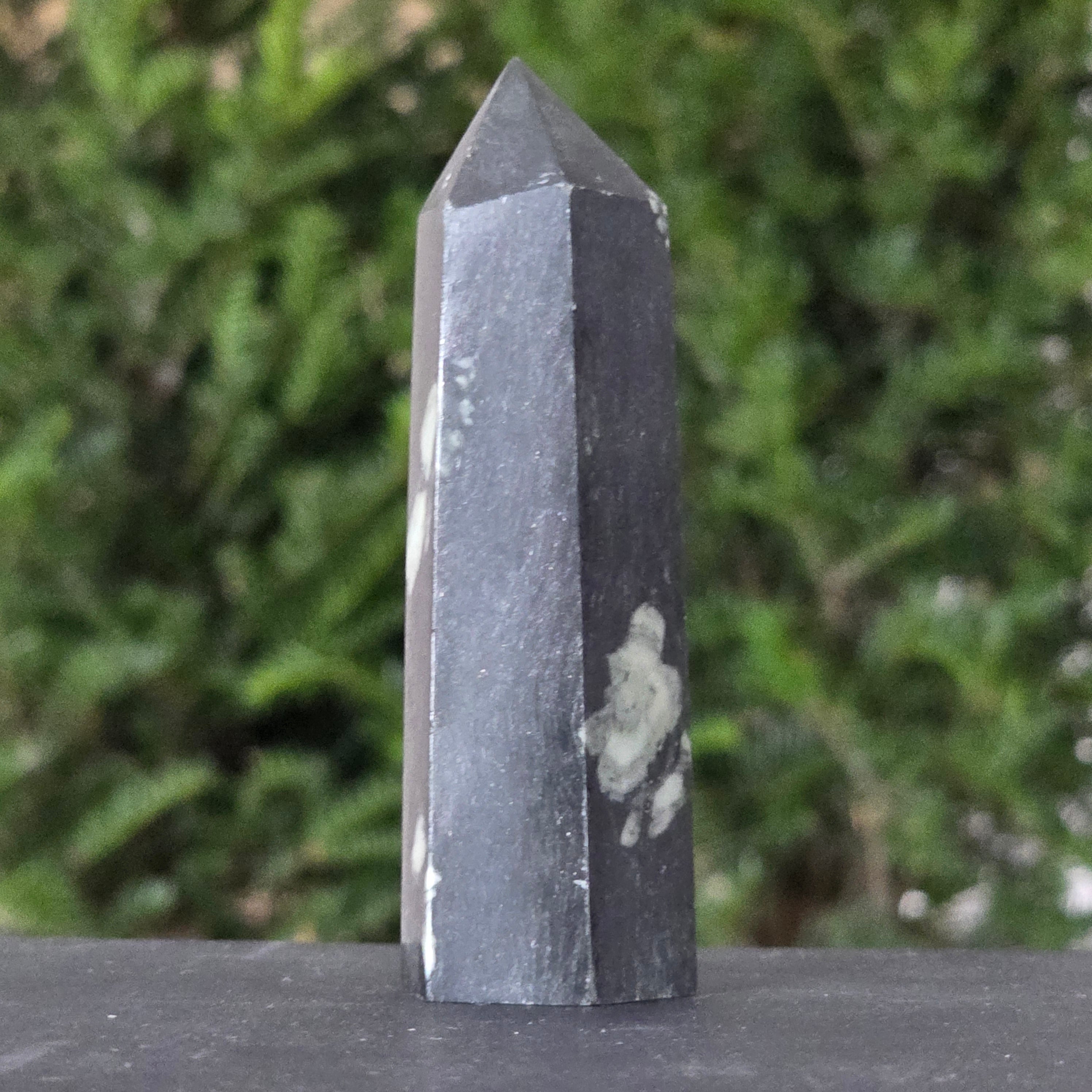 Форма на обелиск, символ на духовното извисяване, усилва енергията на камъка и я насочва към яснота, кураж и пълнота.