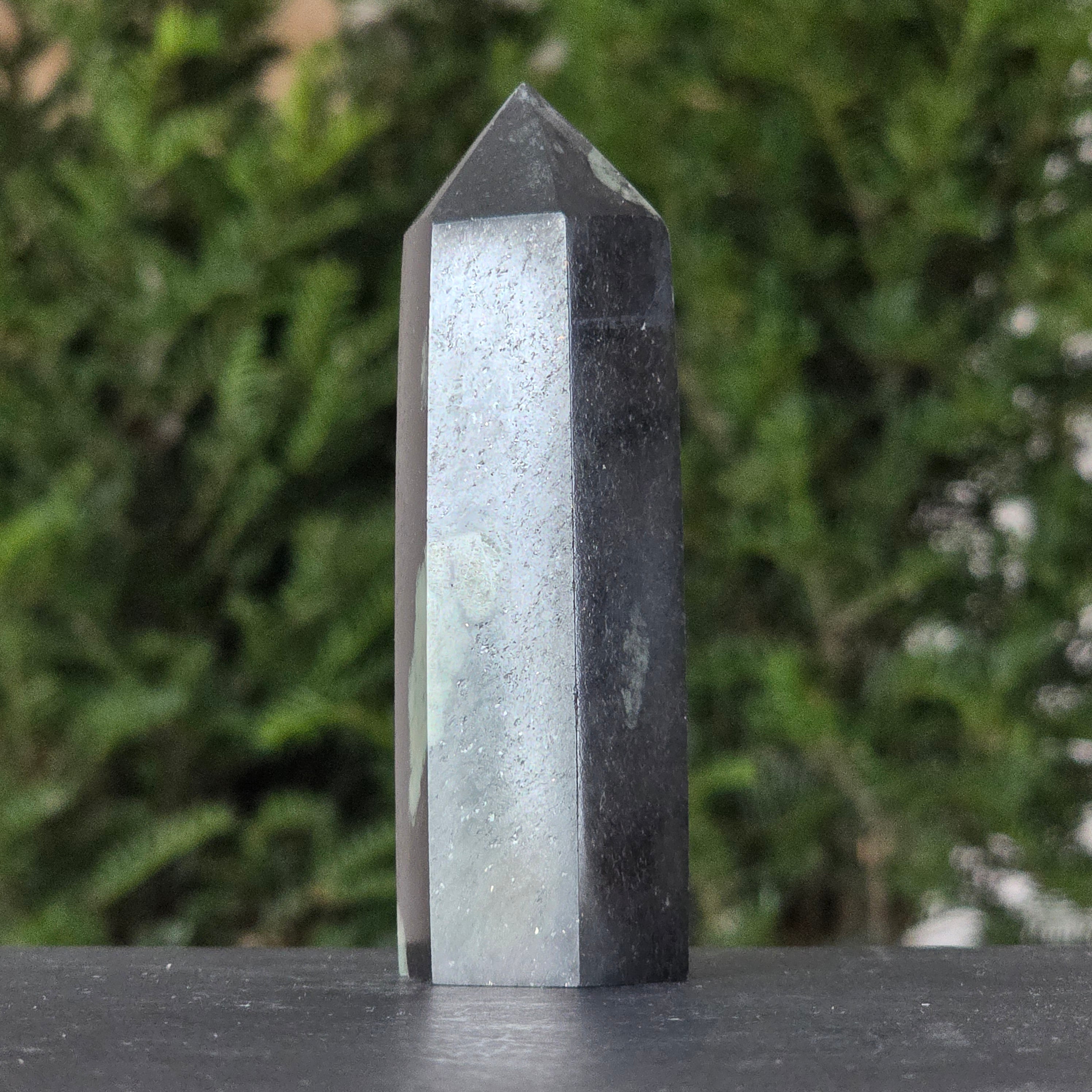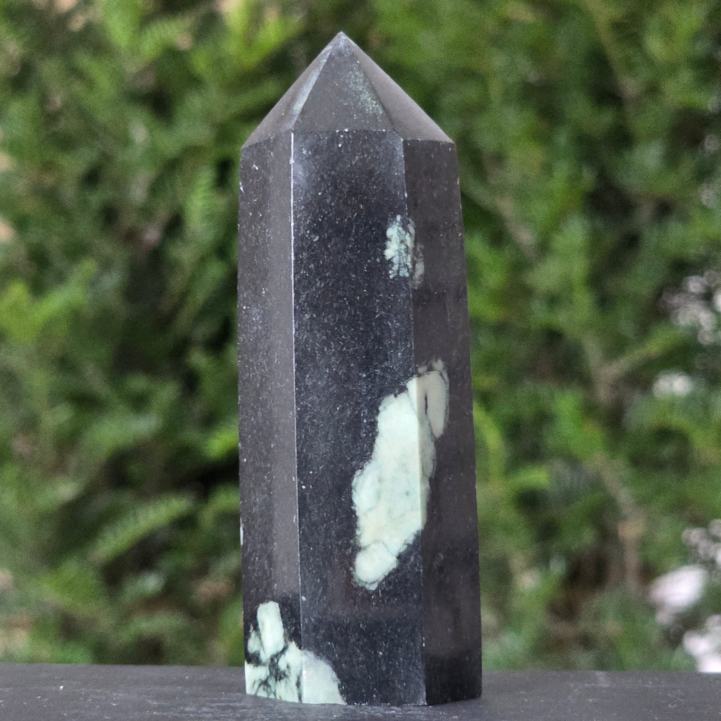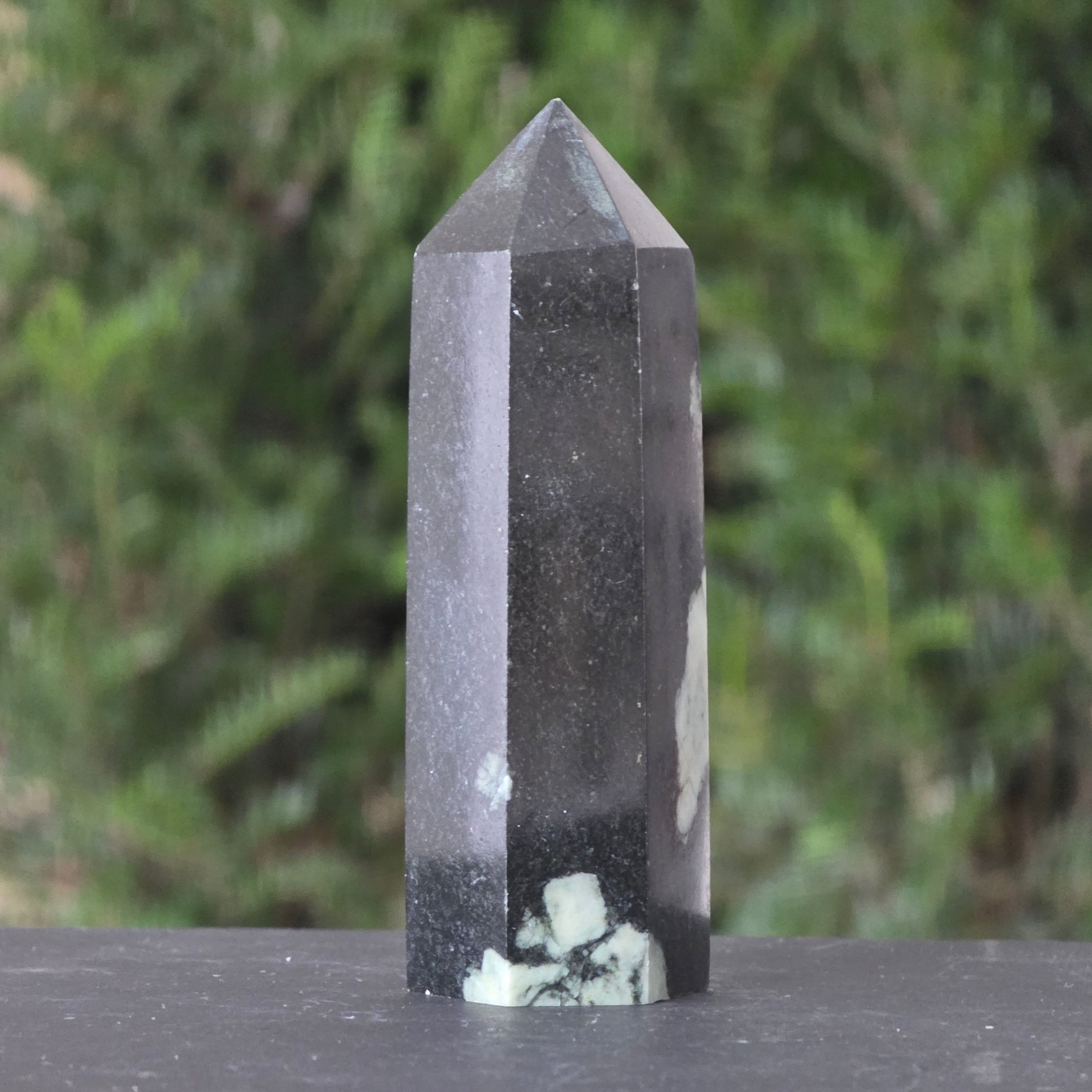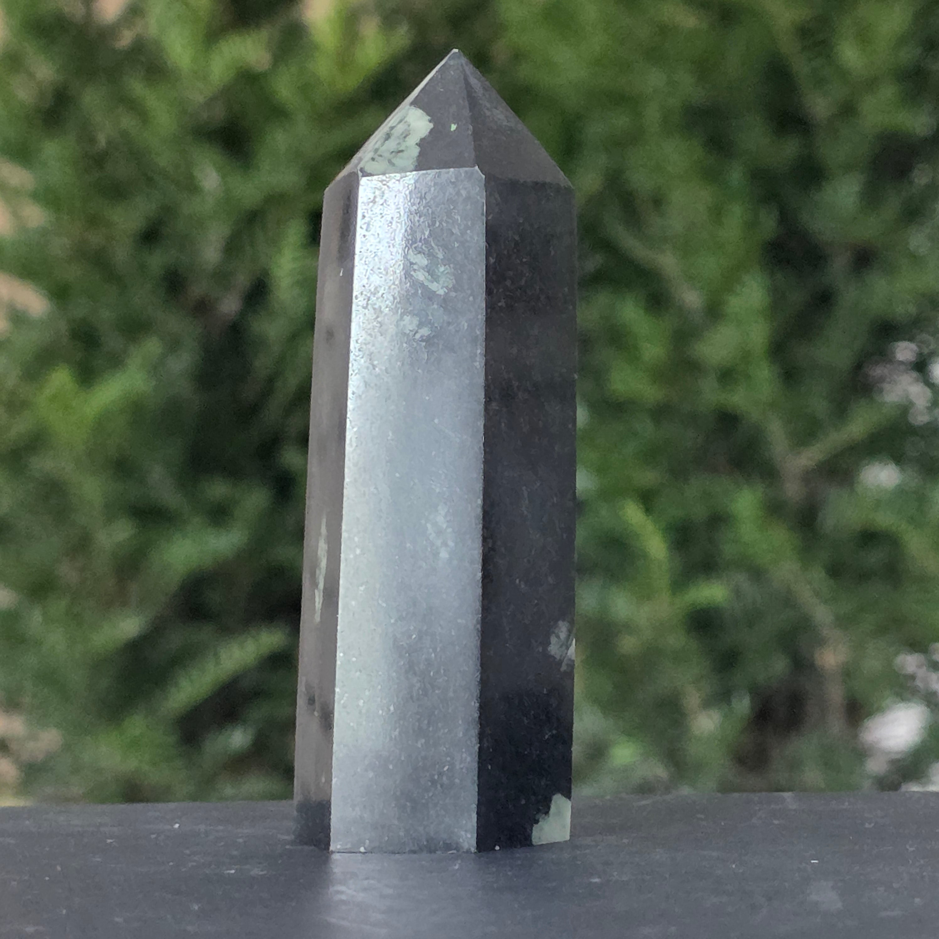 Формата на обелиск, символ на духовното извисяване, усилва енергията на камъка и я насочва към яснота, кураж и удовлетворение.