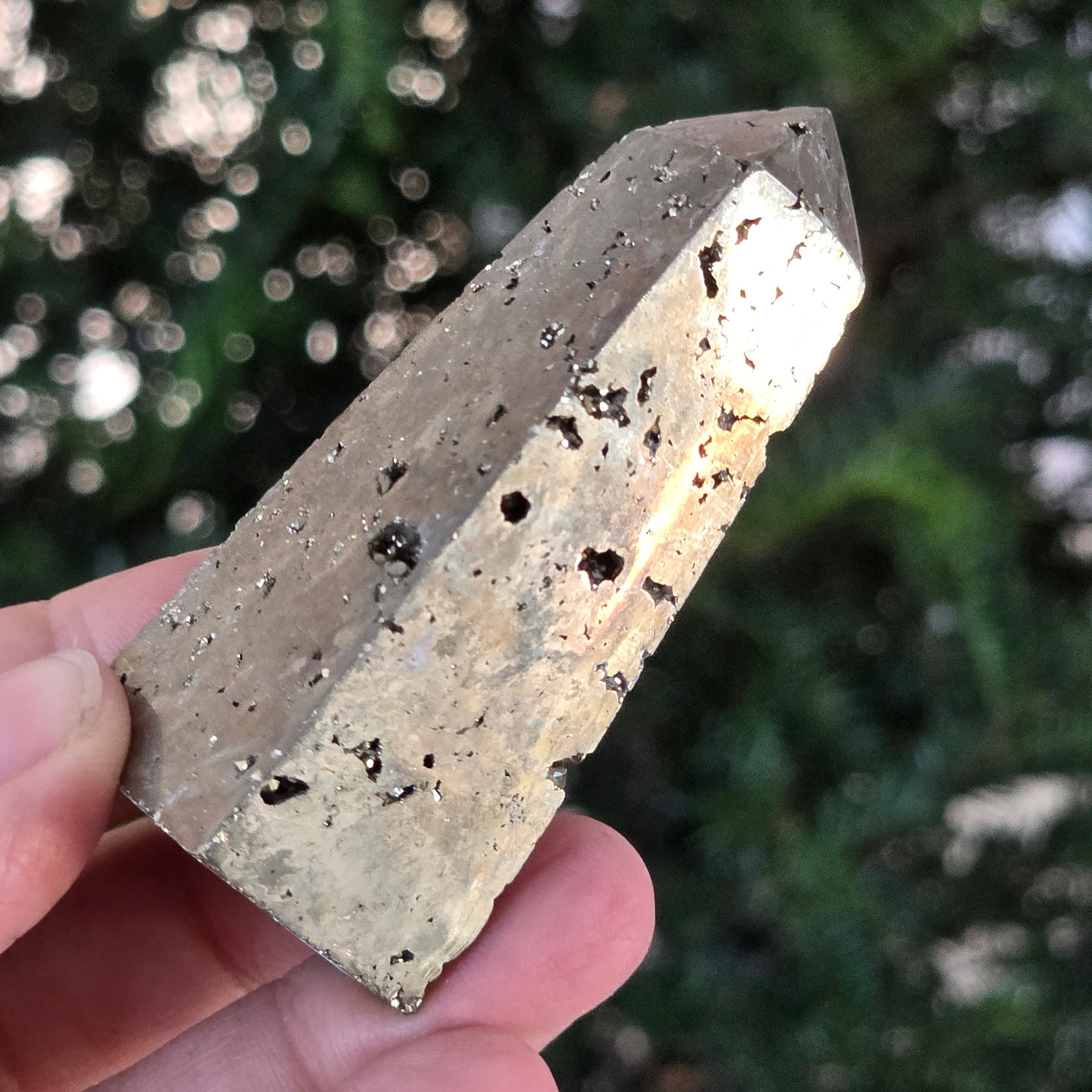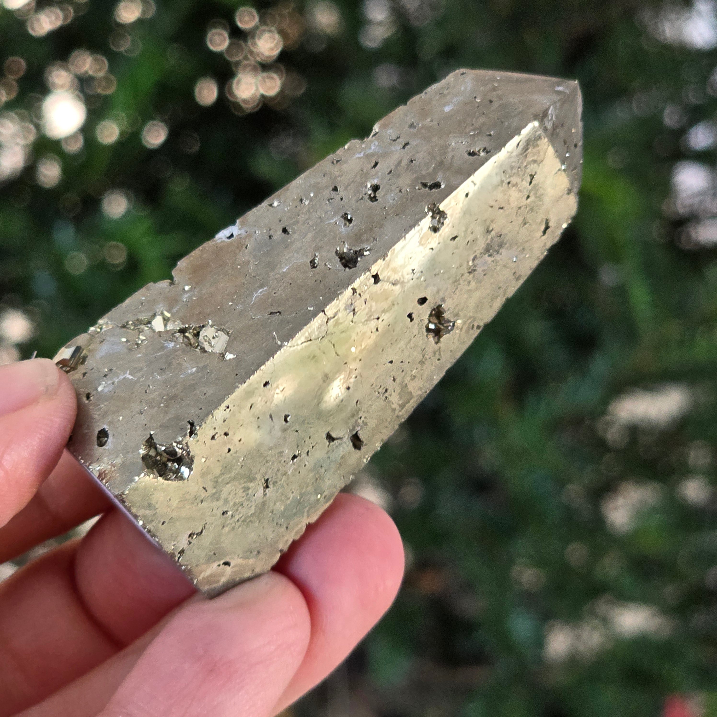 Обелискът от перуански пири́т излъчва сила, изобилие и умствена яснота. Всяко златисто отражение напомня за светлината на съзнанието и вътрешната сила, която превръща намеренията в реалност. Впечатляващ предмет, подходящ както за колекционери, така и като декоративен елемент с жизнена енергия.