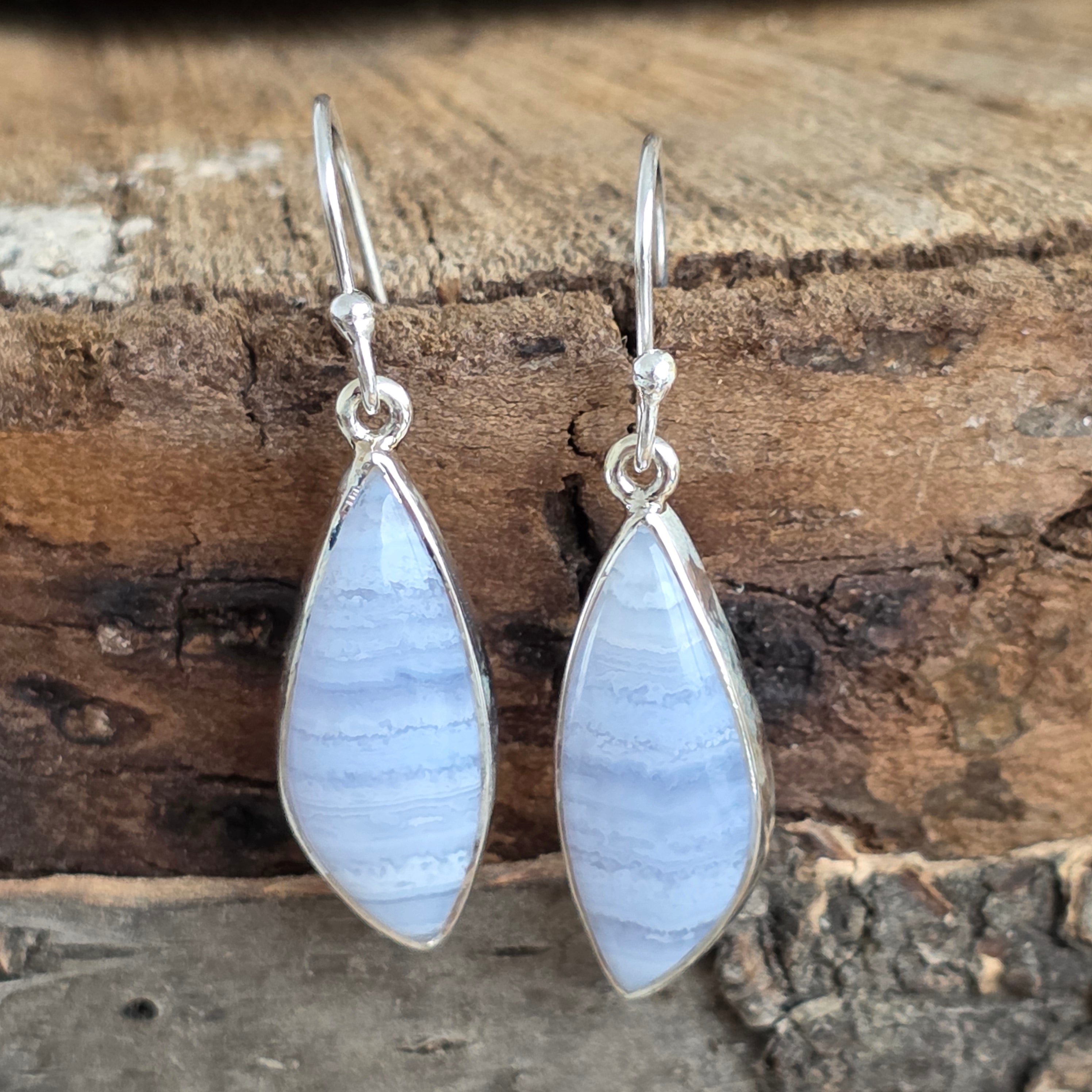 Обеци от син калцедон / blue lace от сребро | Модел 2