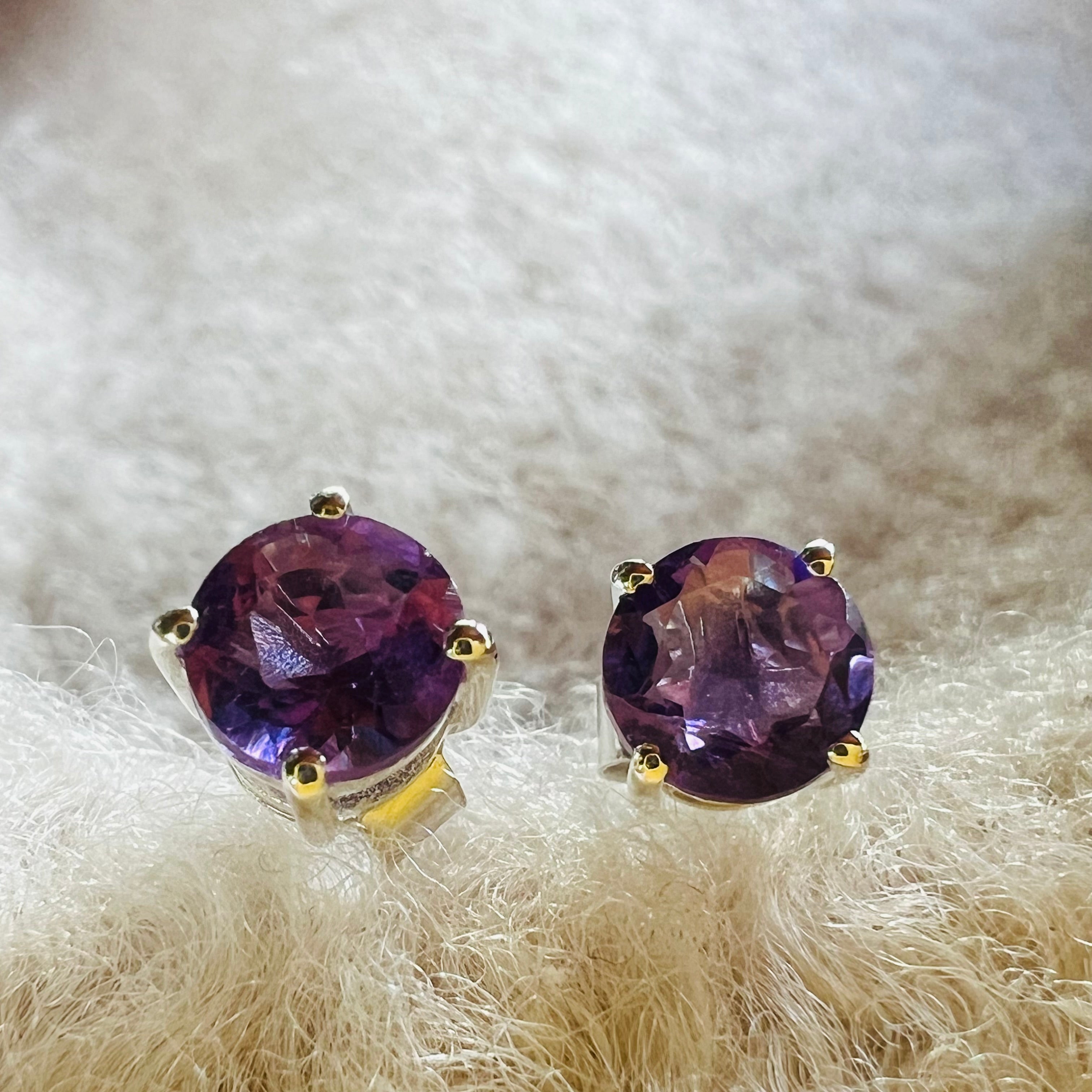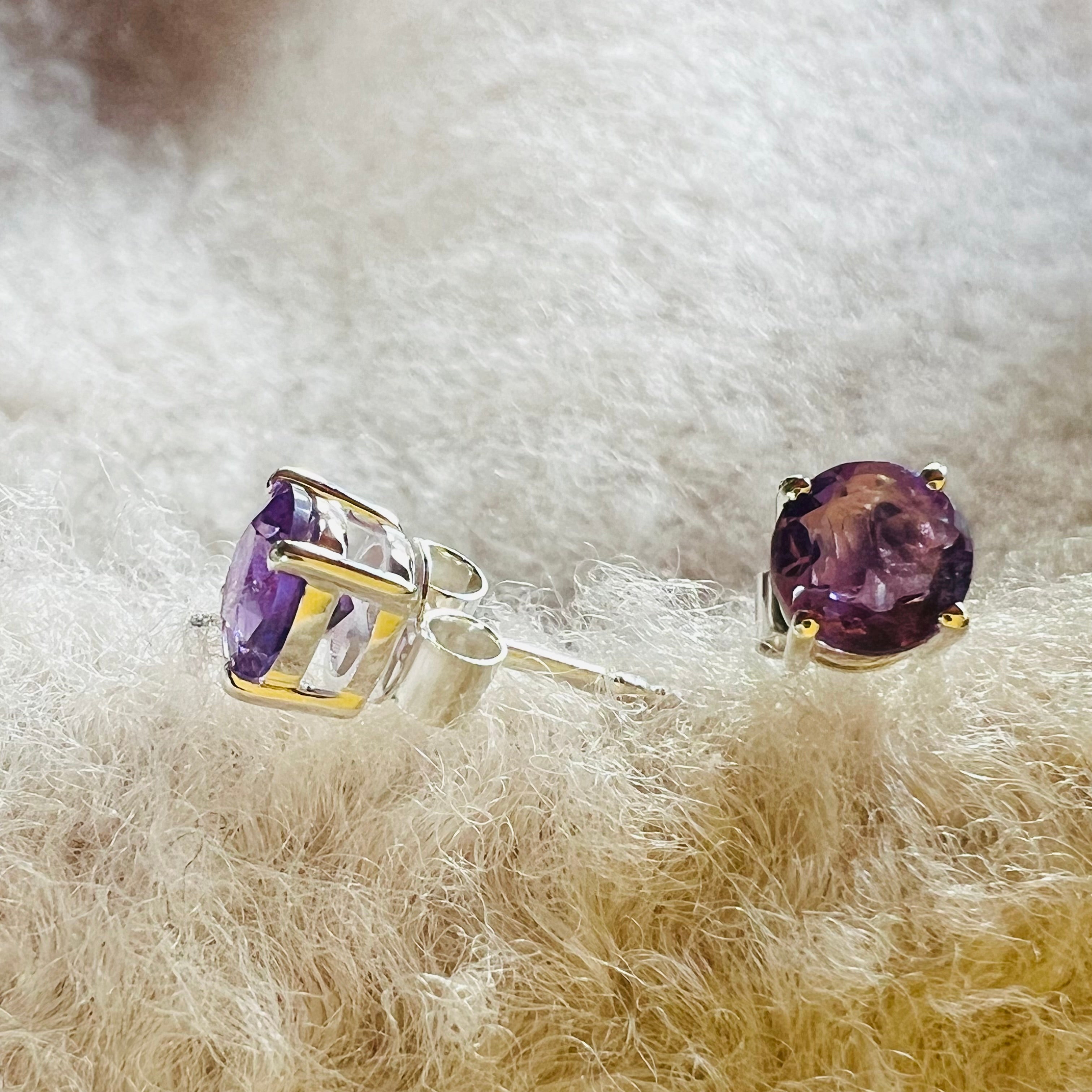 Обеци с аметист, сребро, 6 мм, кръгли/4