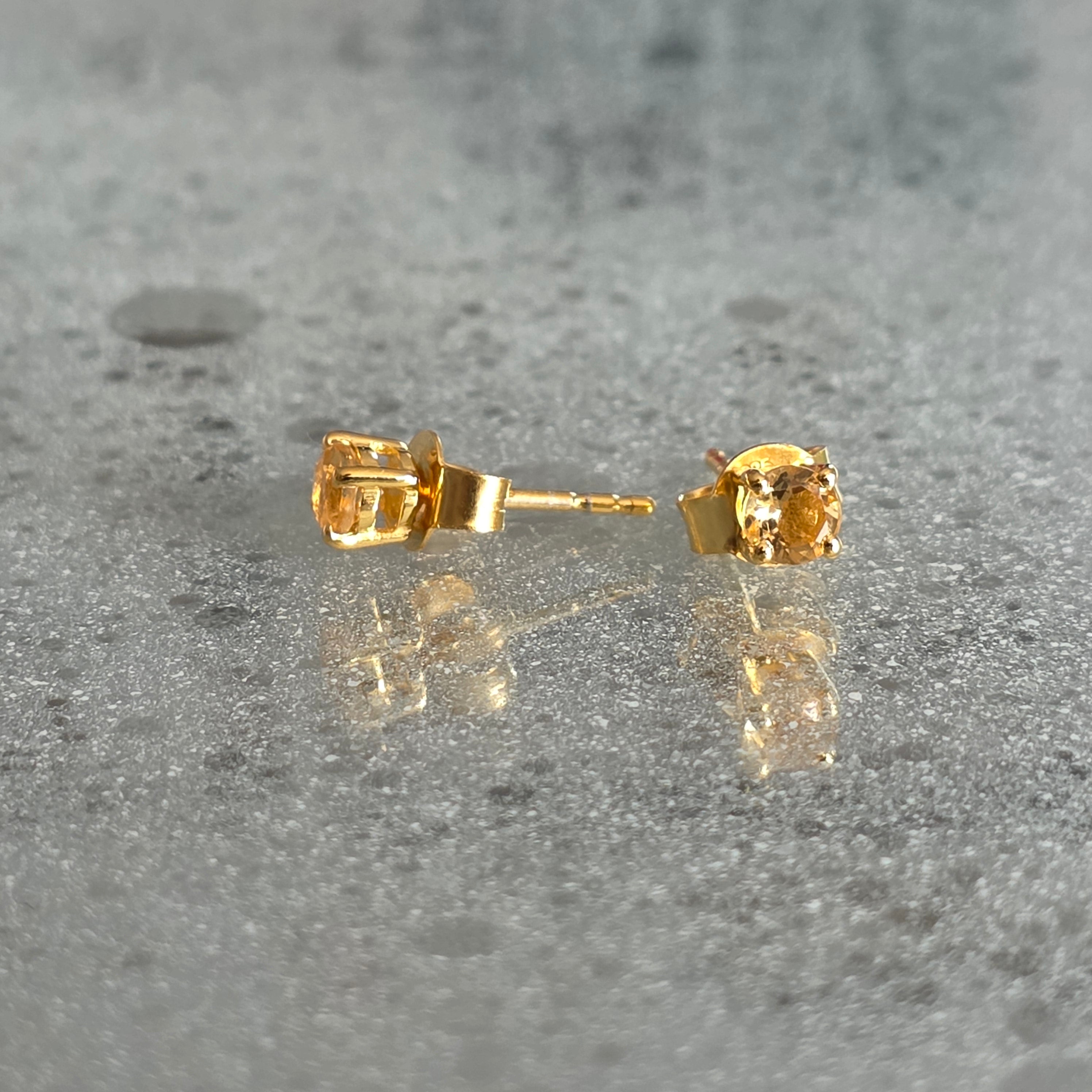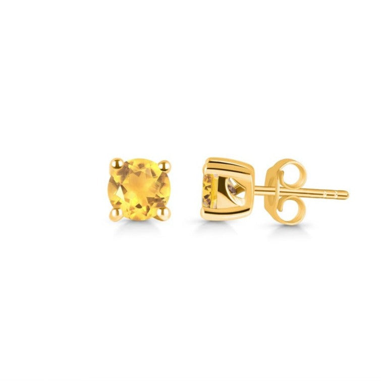 Цитринови обеци 4 мм сребърни, позлатени