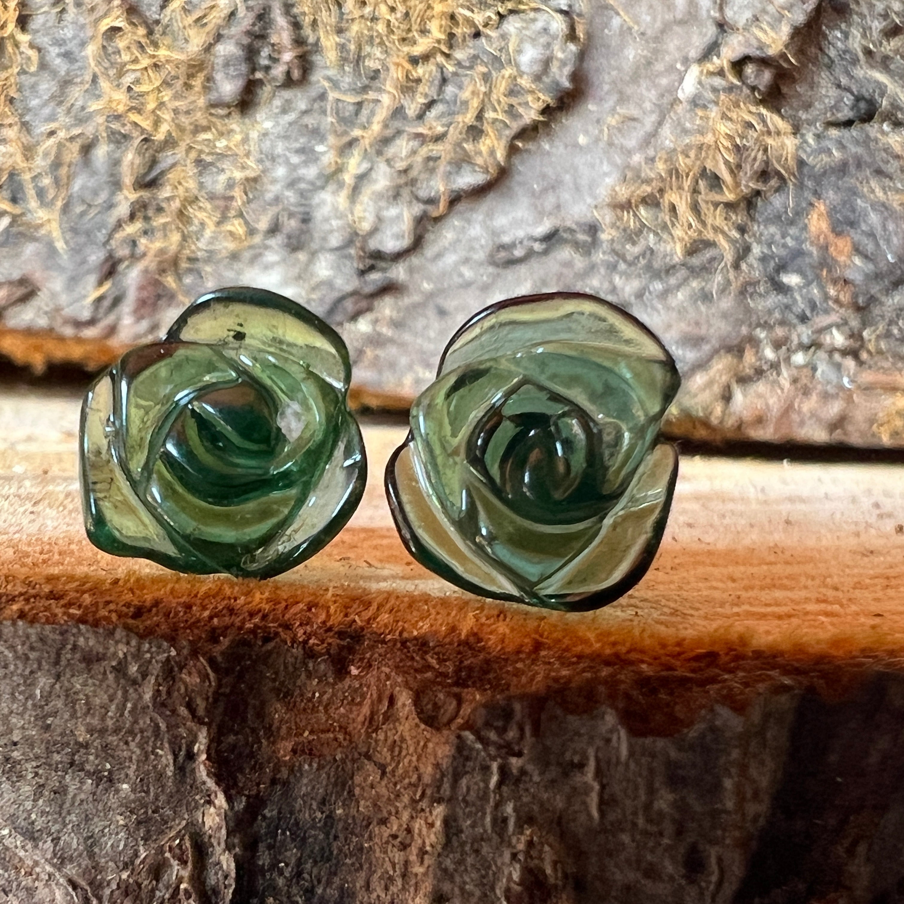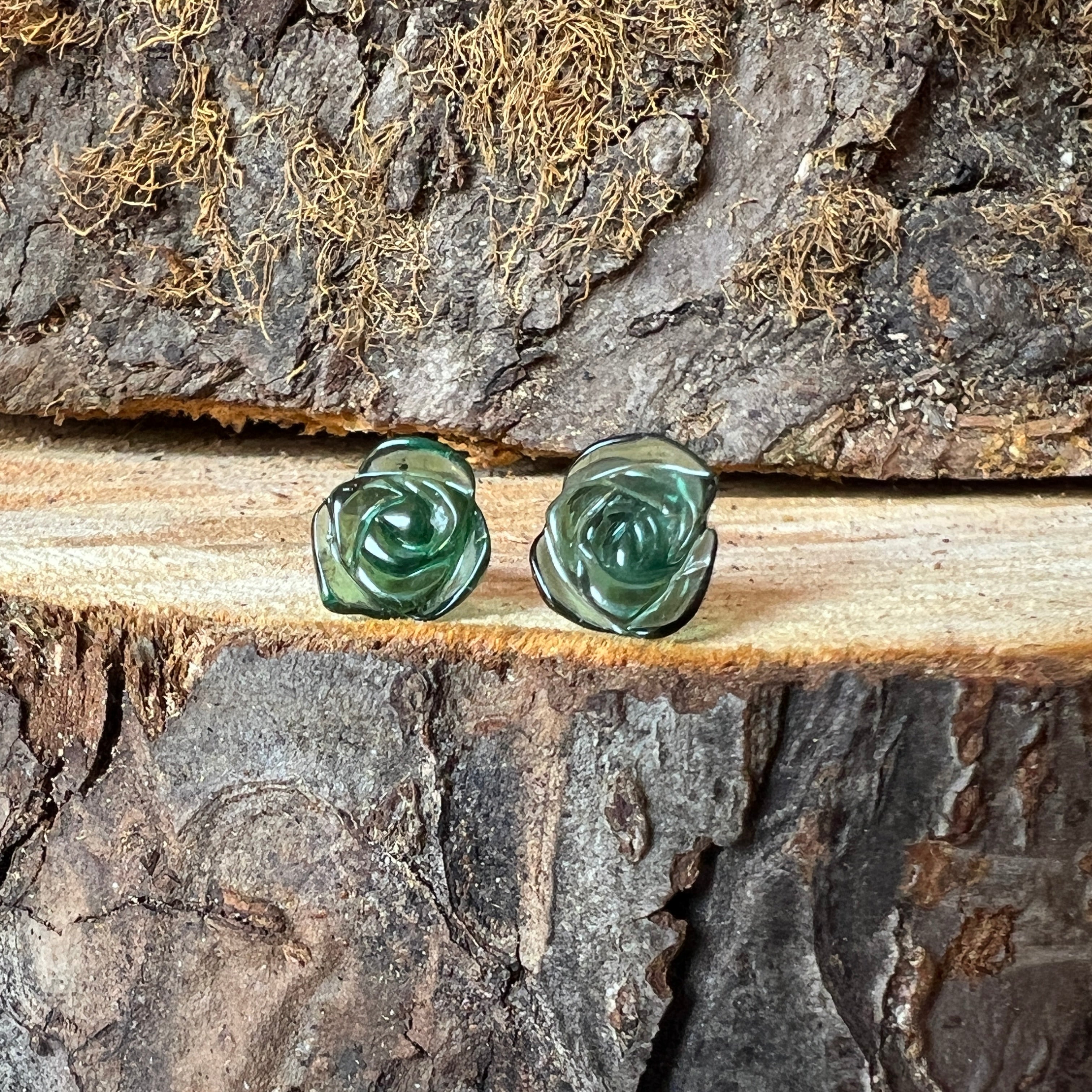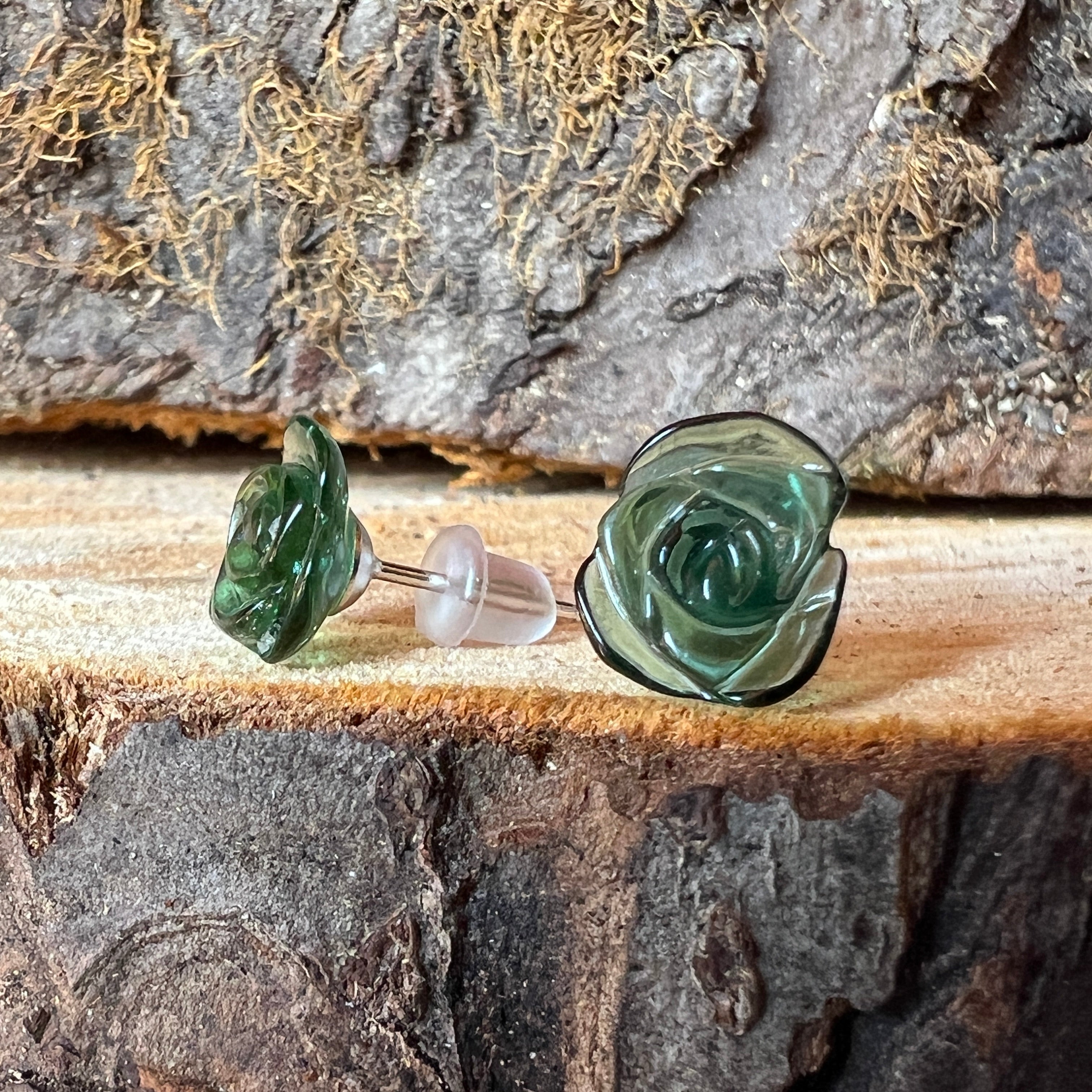 Обеци тип гвоздче с зелен турмалин от сребро модел Flower#1