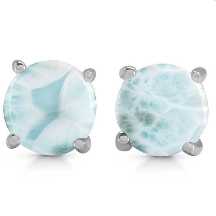 Обеци тип седеф с ларимар и сребро 6 мм Кръгли