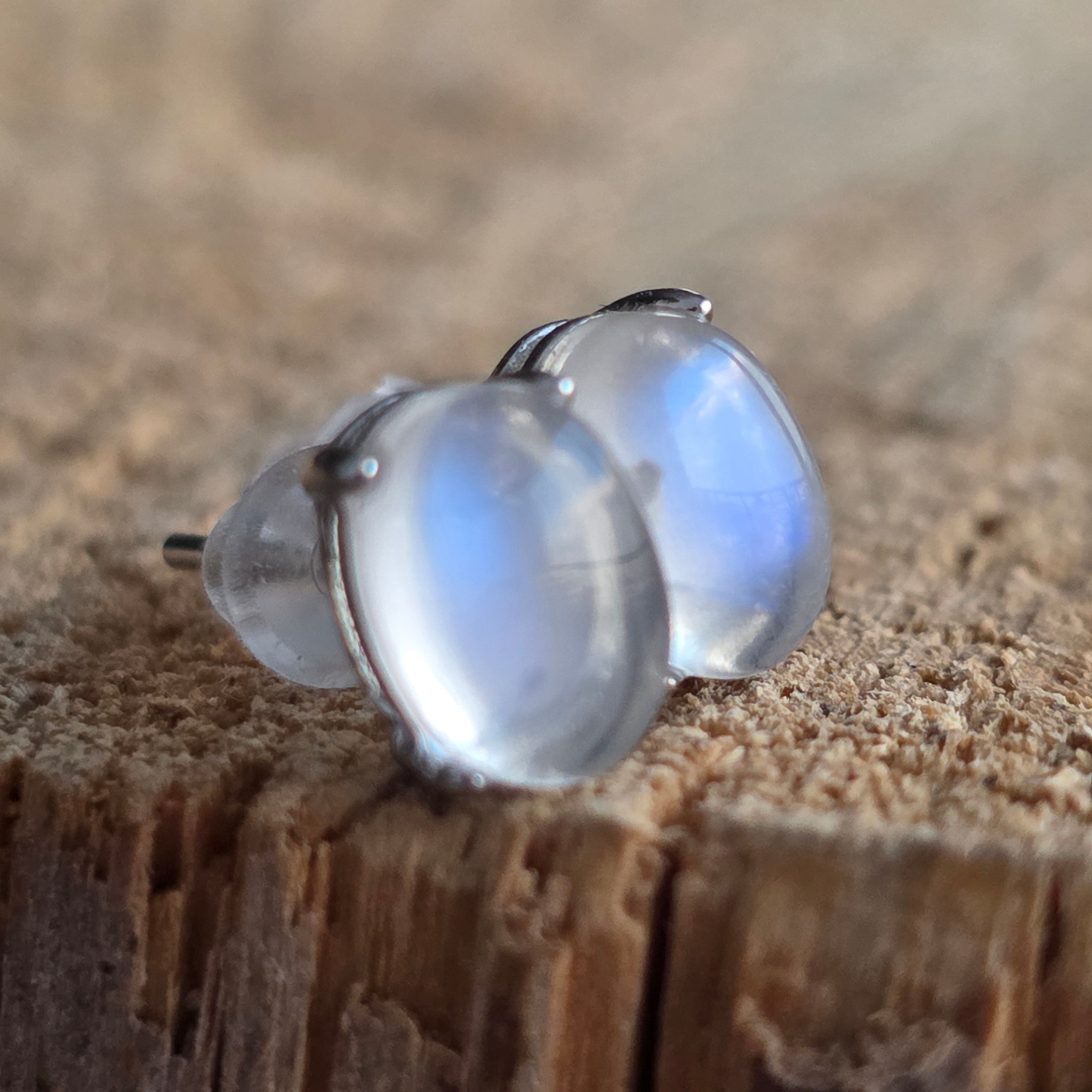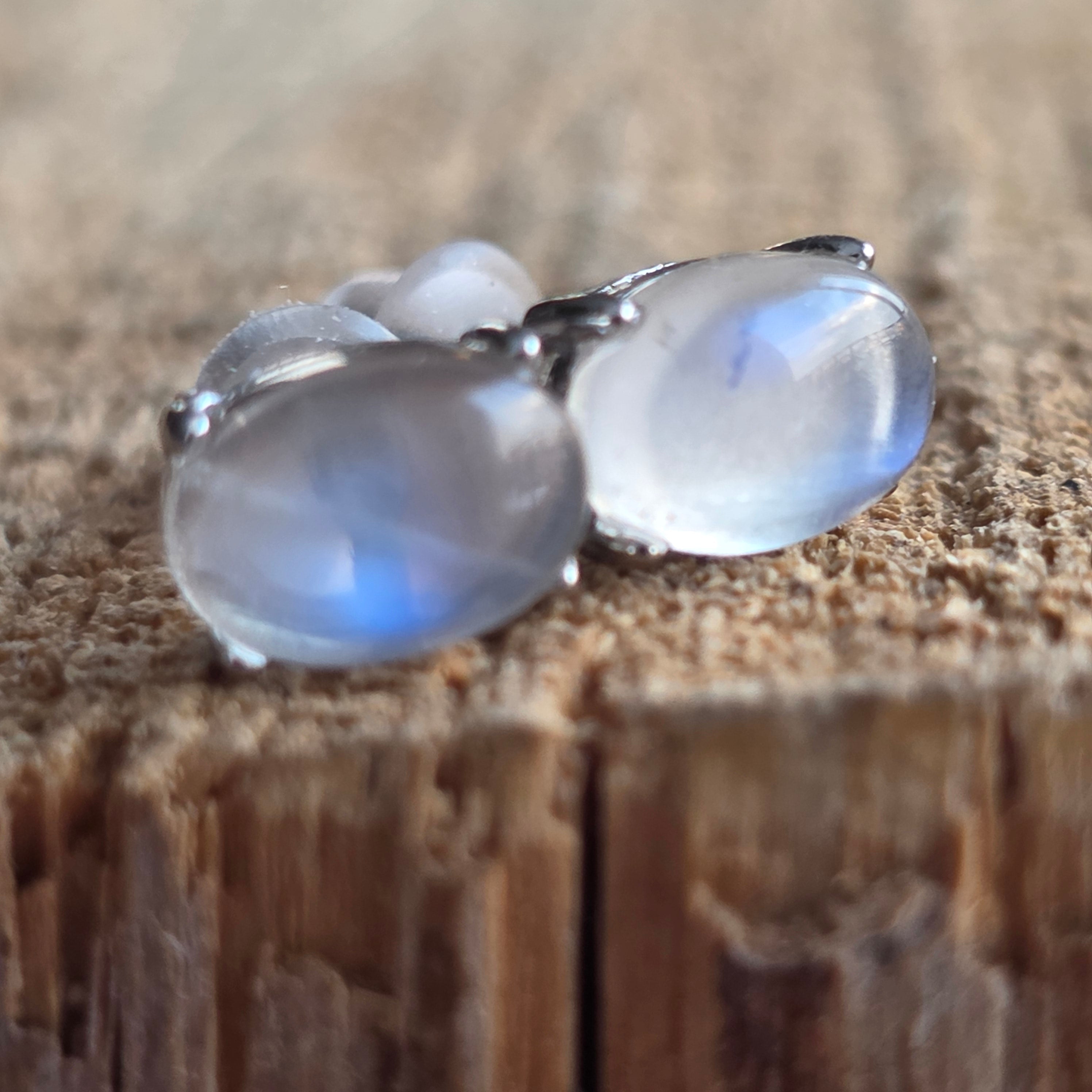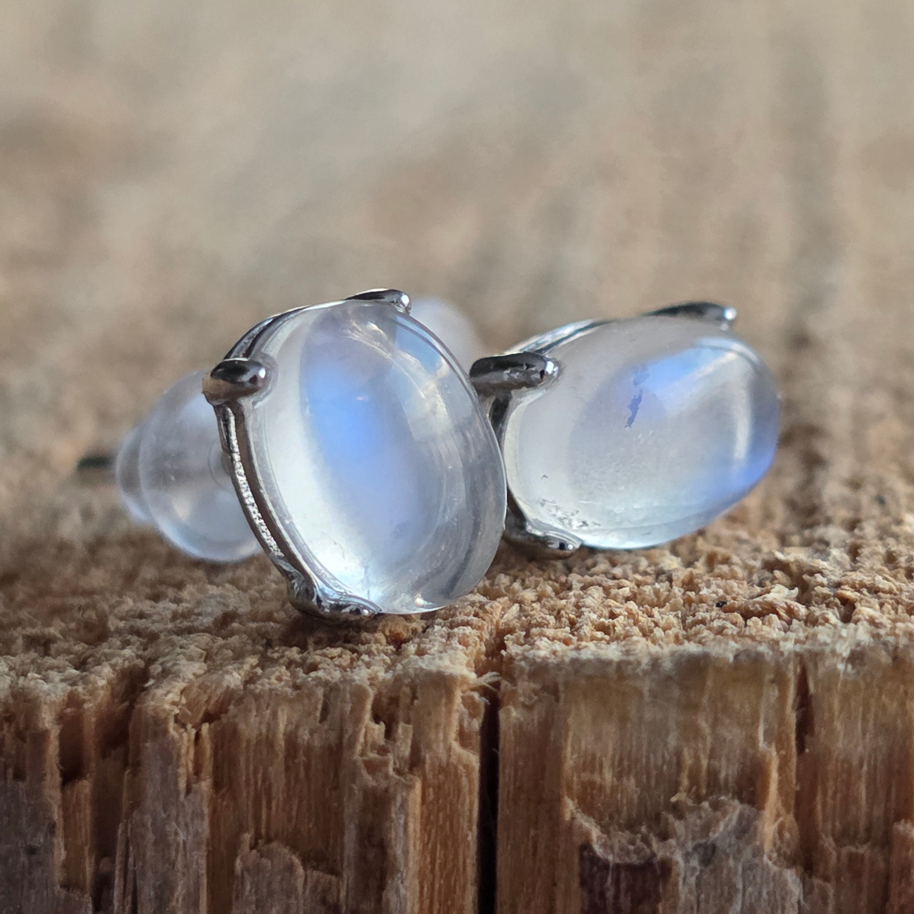 Обеци тип „студ“ с камък Лунен камък, сребро 6 мм овални