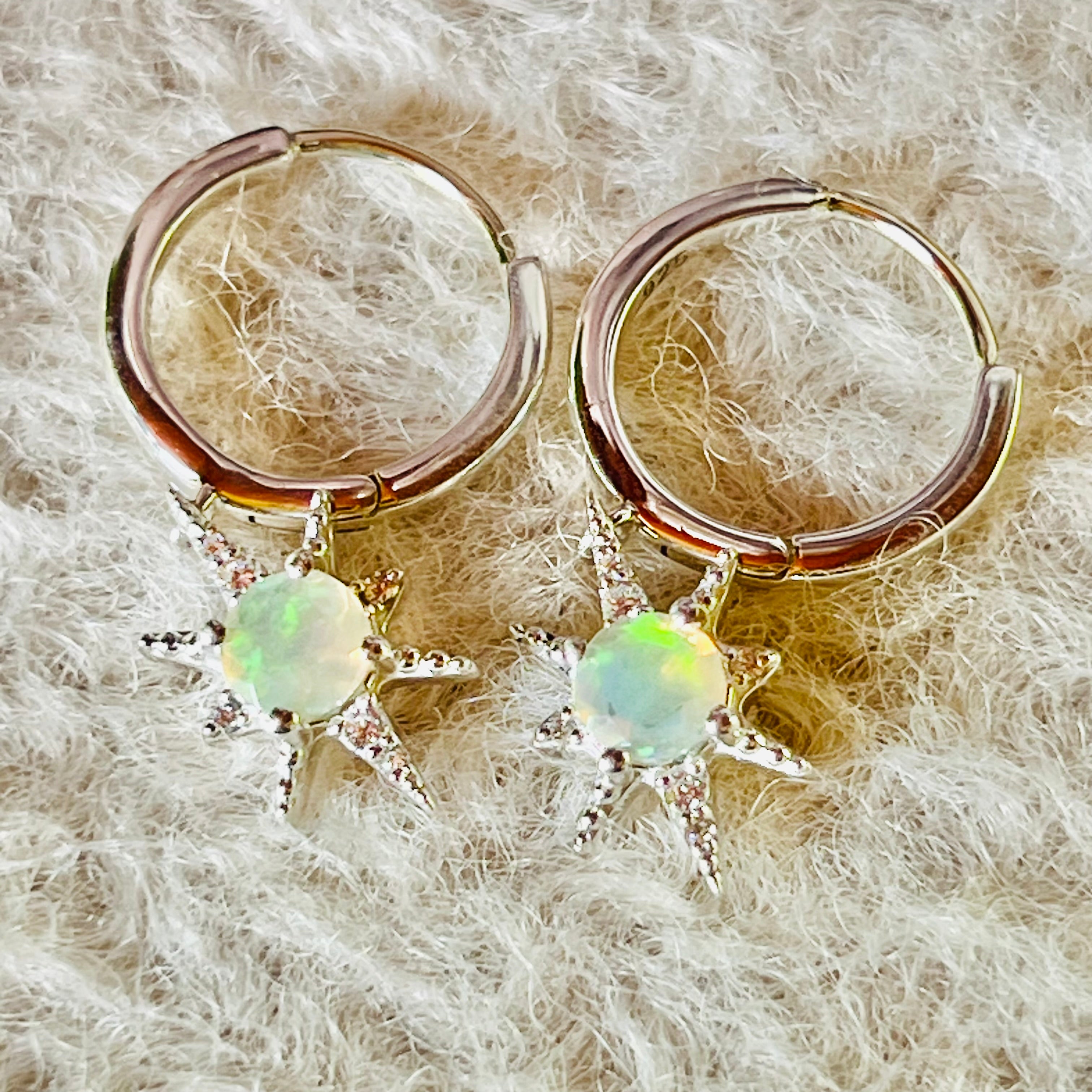 Descriere - Обеци тип „студ“ с опал от сребро Hoop star
