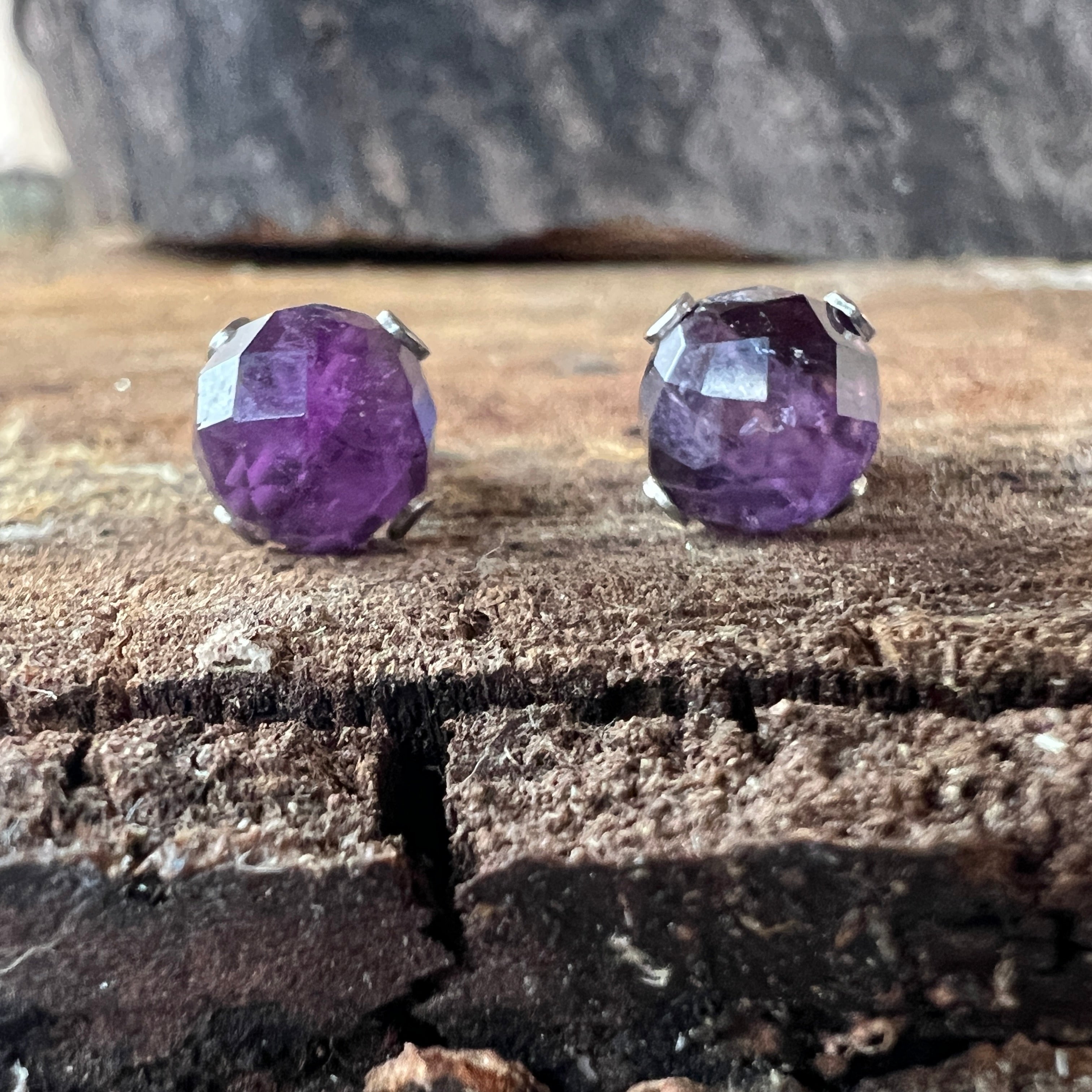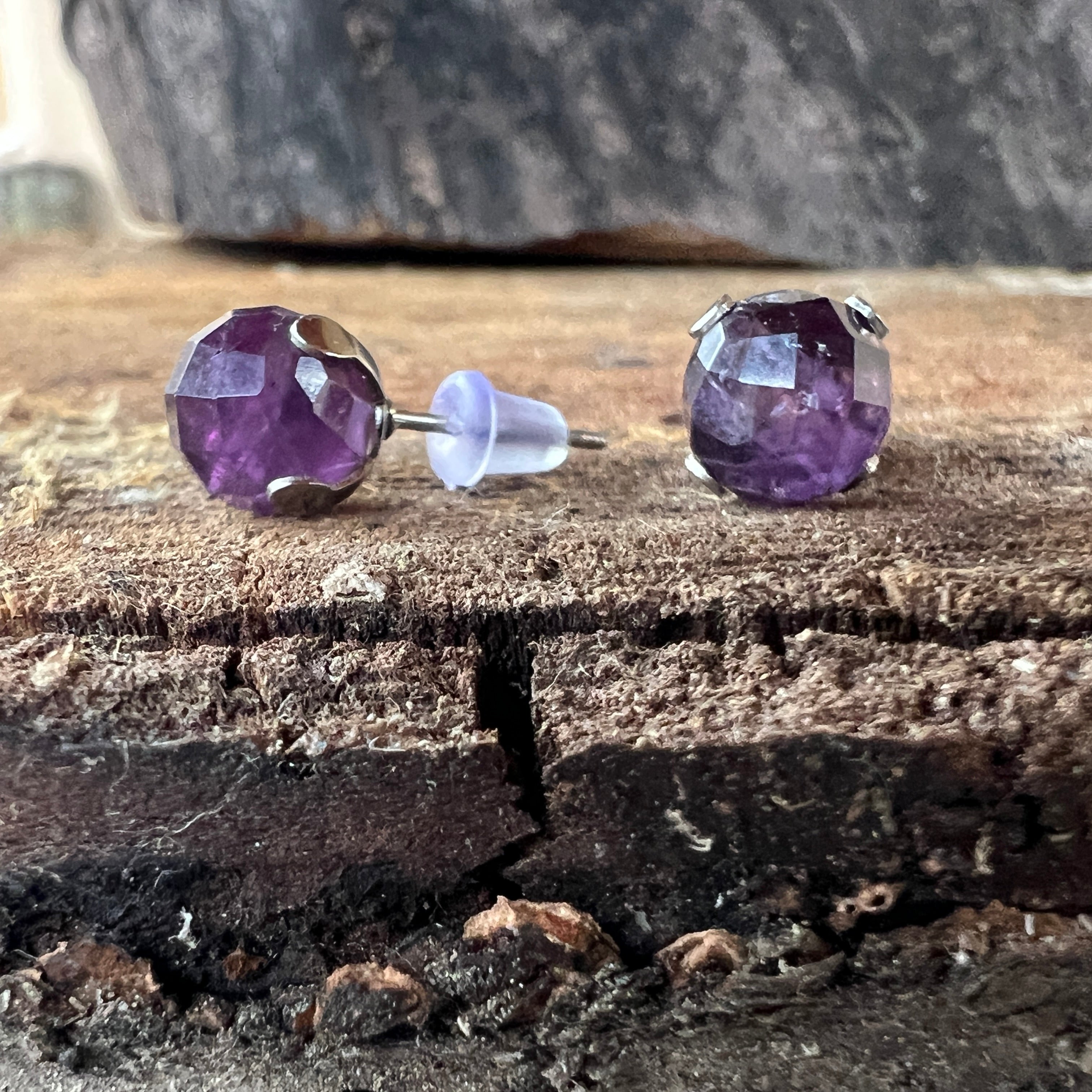 Обеци тип „студ“ с фасетирани аметистови топчета 8 мм