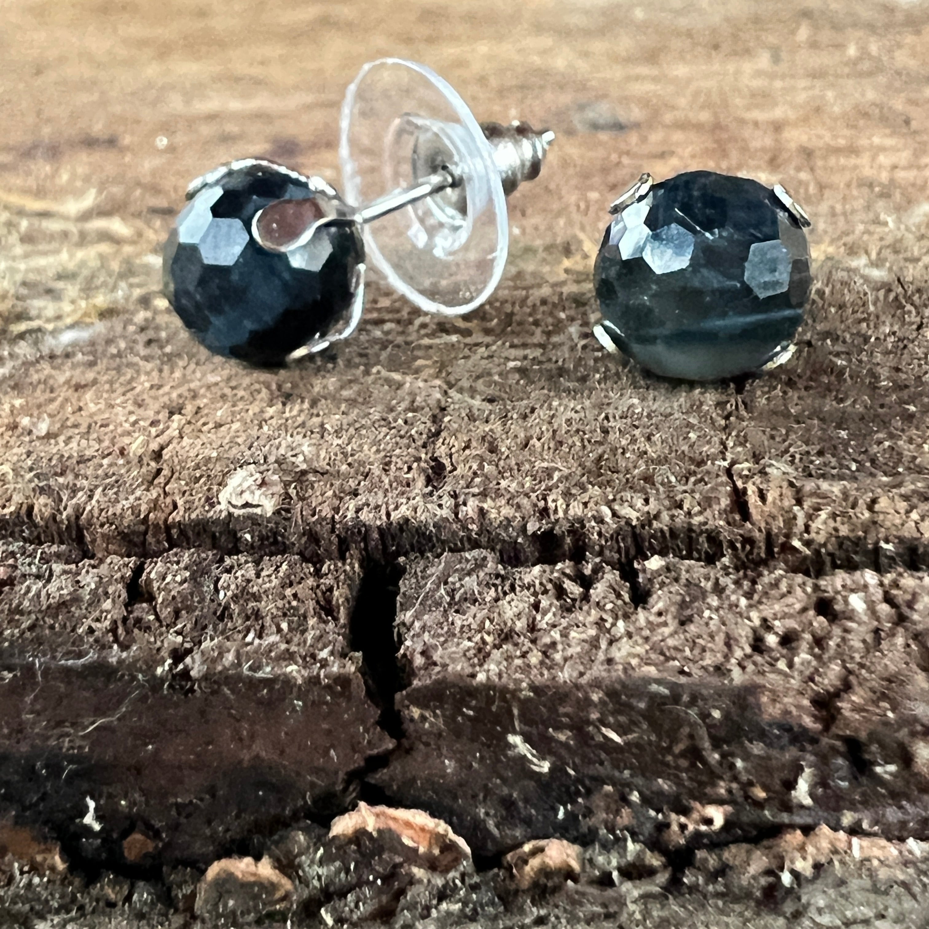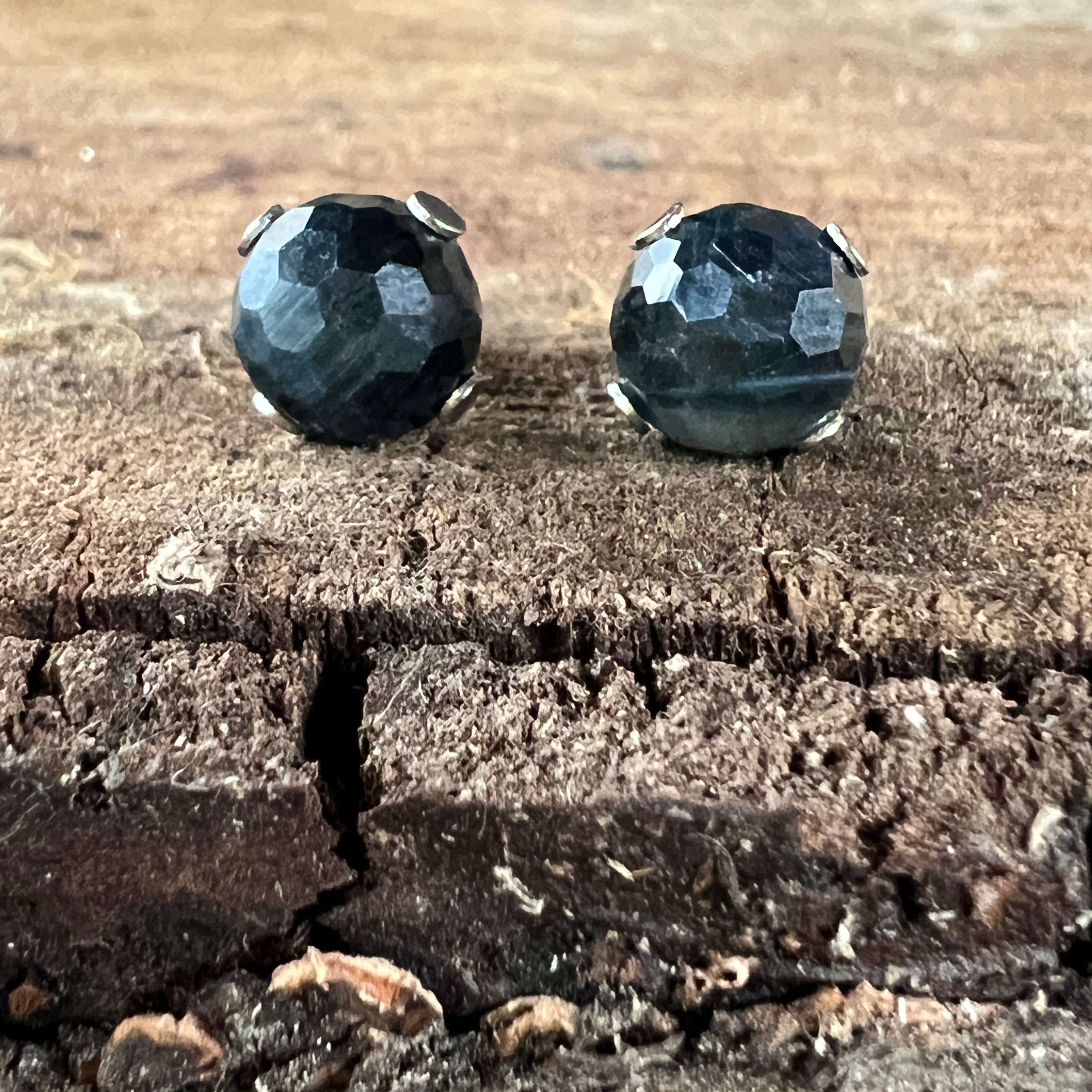 Обици с талисман, фасетирани сфери от иолит 8 мм