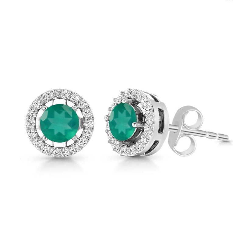 Descriere - Обички обеци от зелен оникс, бял топаз 8 мм
