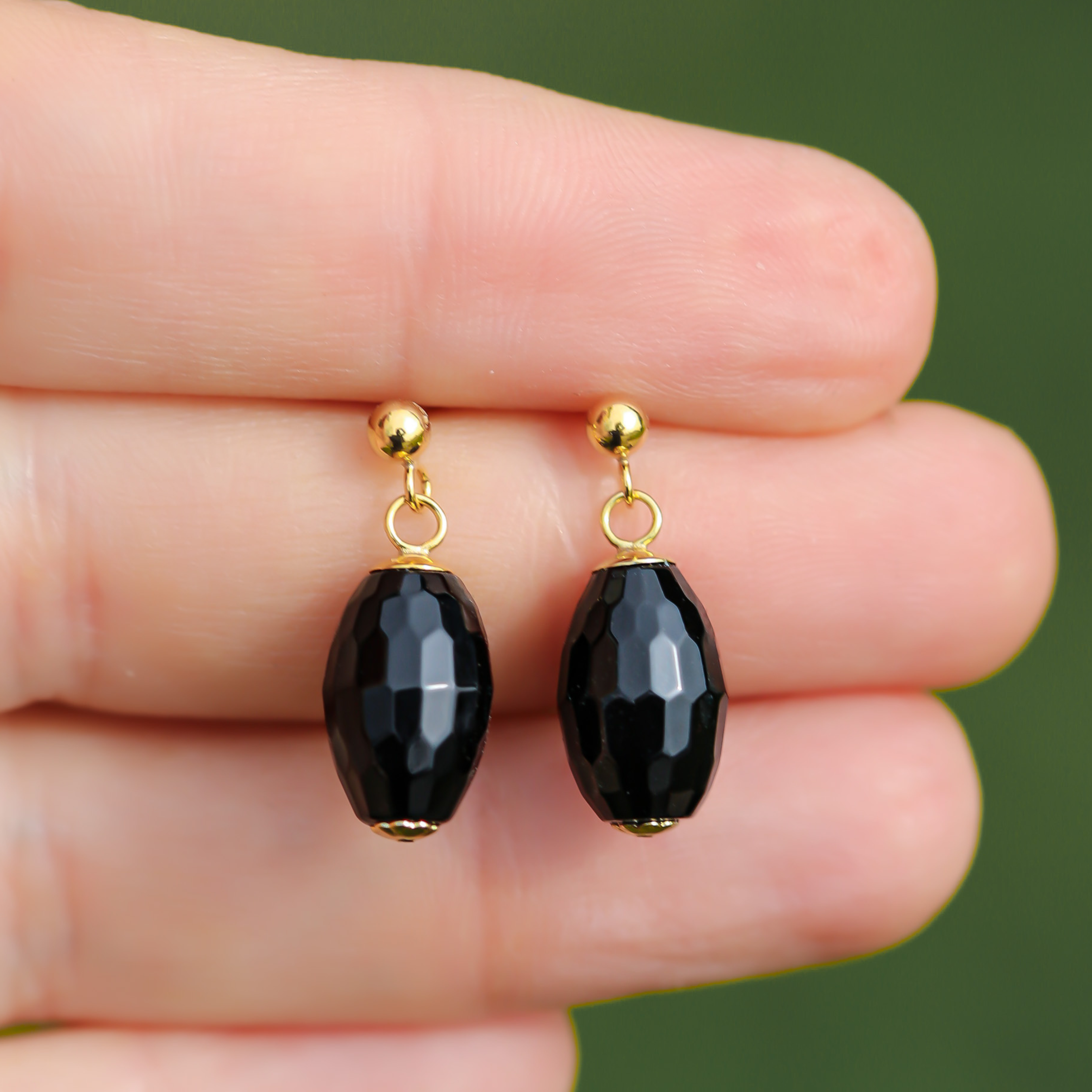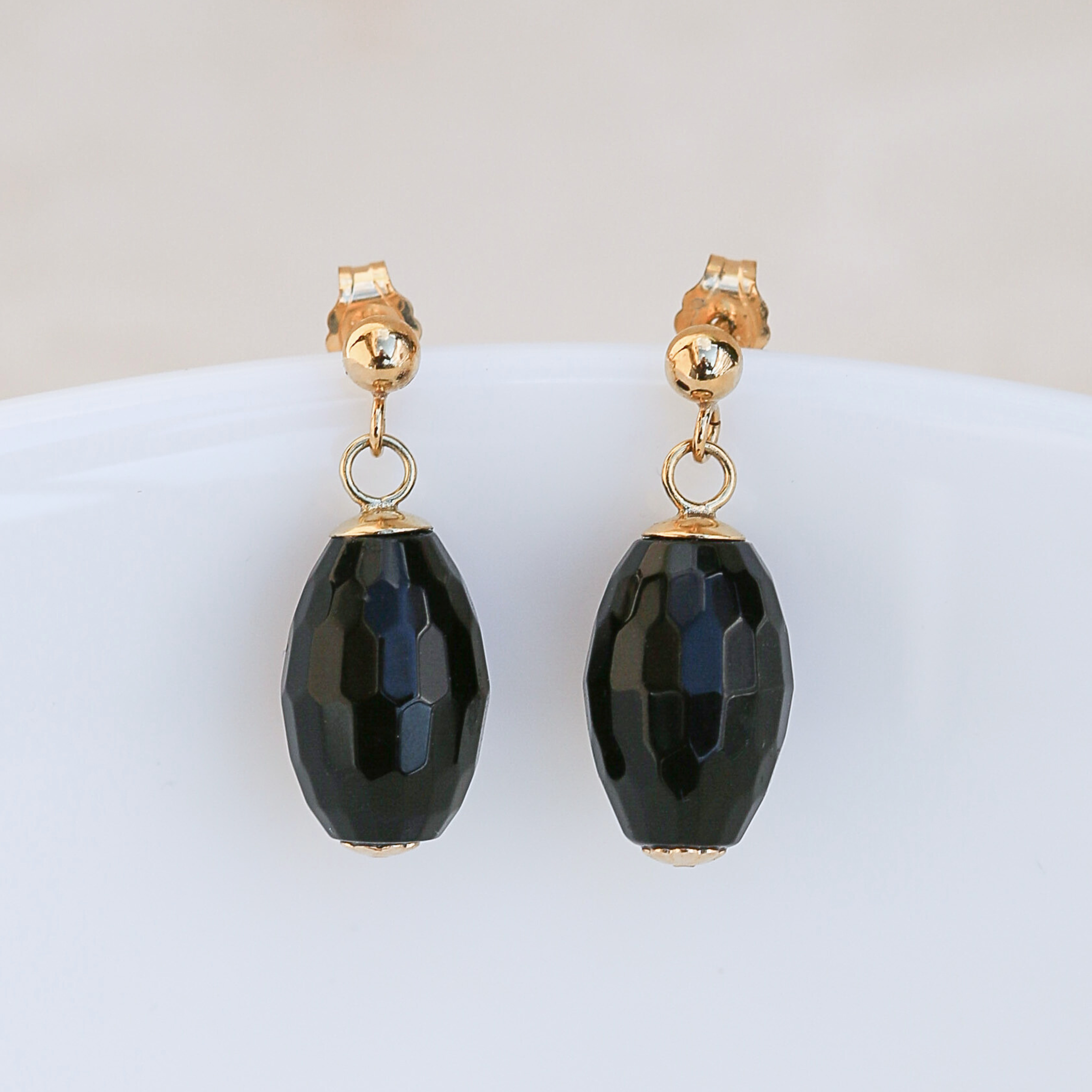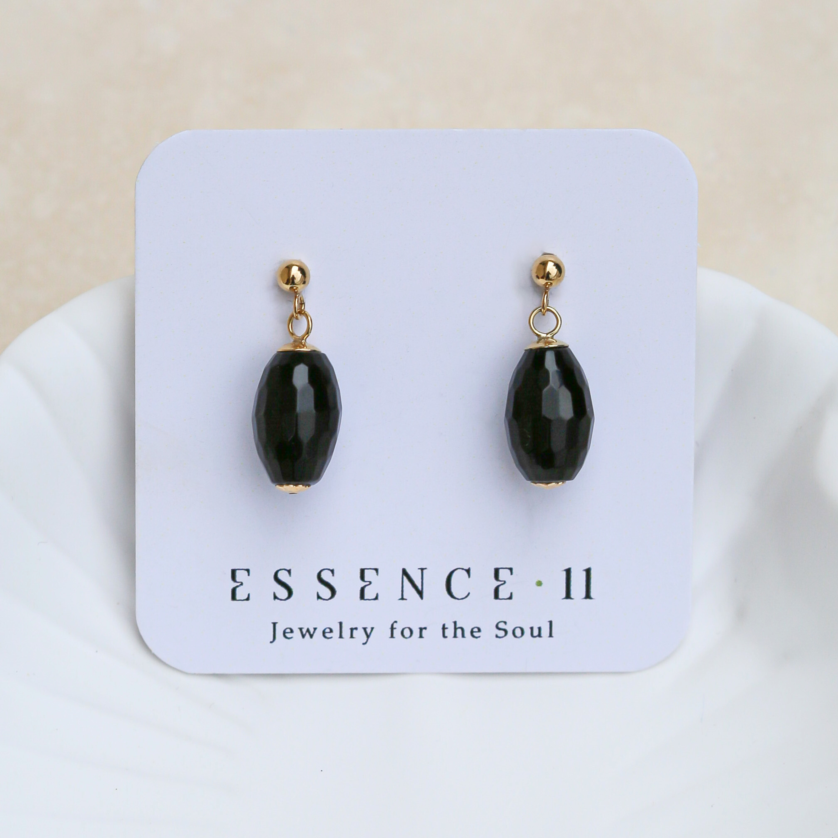Облицовани с фасети оникс обеци, позлатени - Whisper of Strength #2