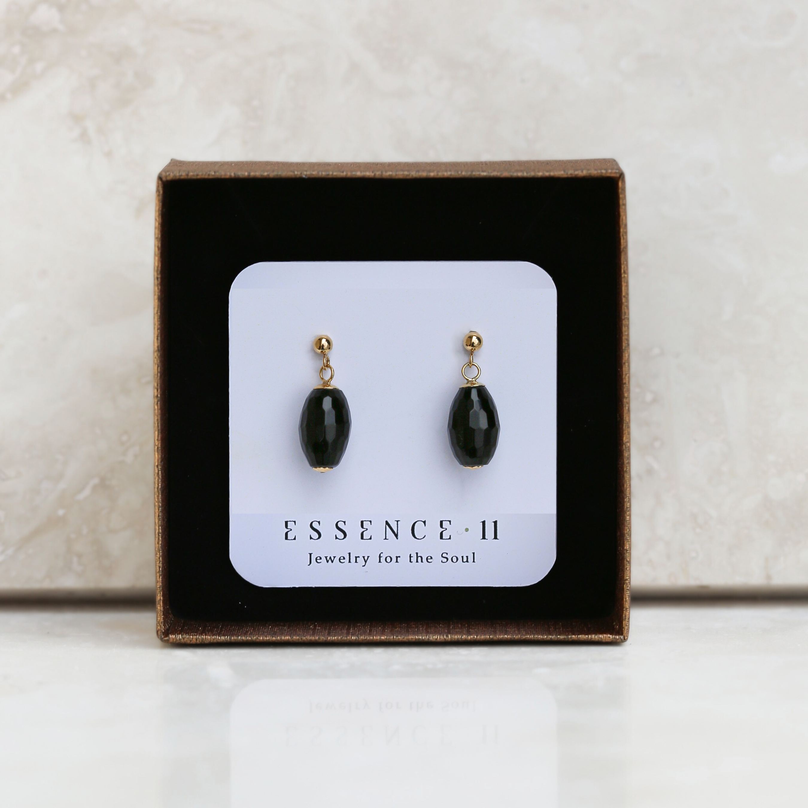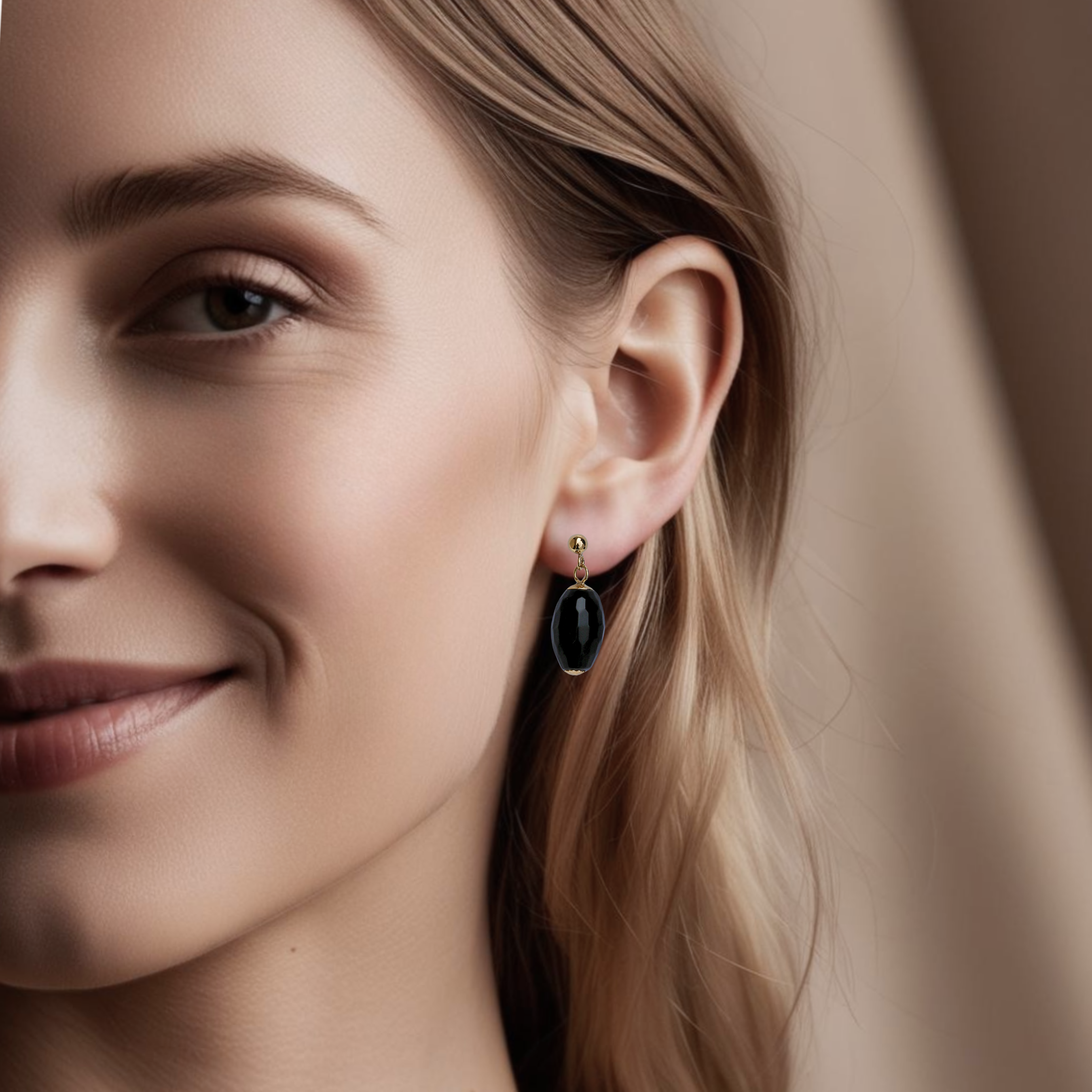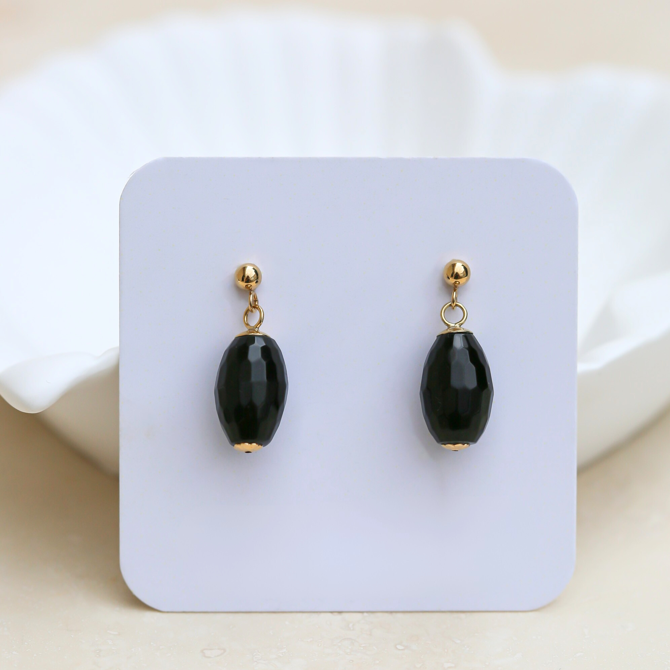 Облицовани с фасети оникс обеци, позлатени - Whisper of Strength #2