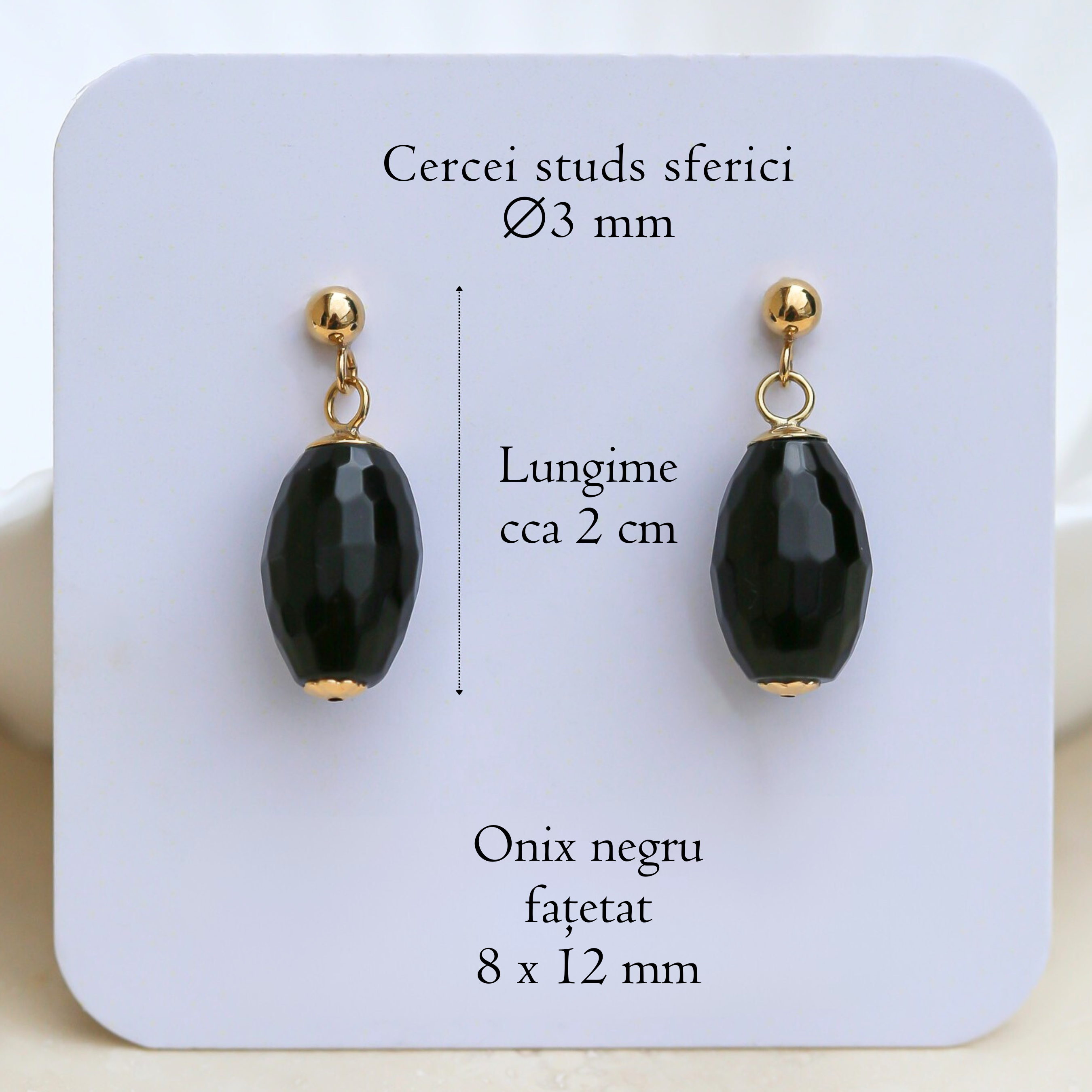 Descriere - Облицовани с фасети оникс обеци, позлатени - Whisper of Strength #2