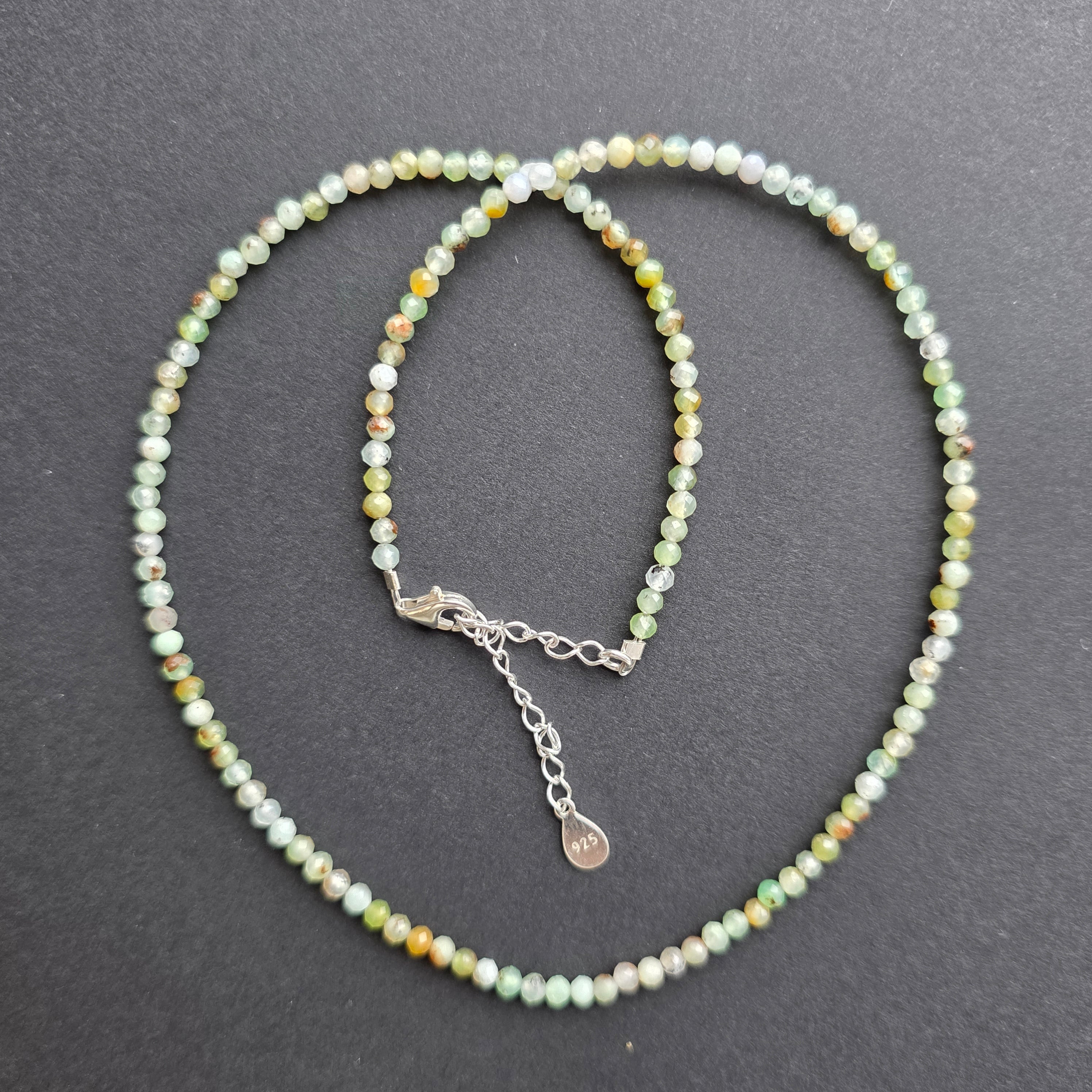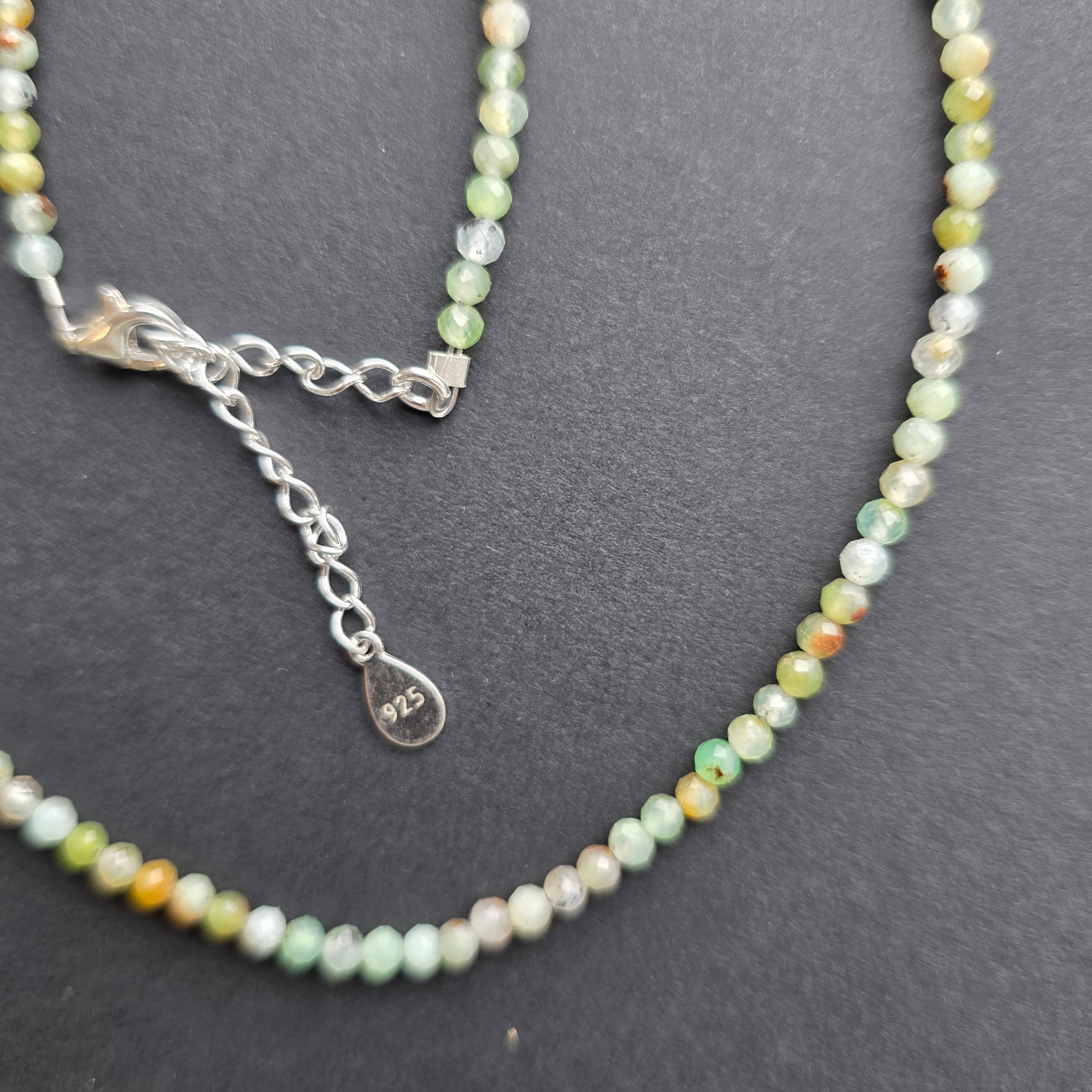 Материали: фасетирана естествена хризопраза 3 мм, 925 сребро