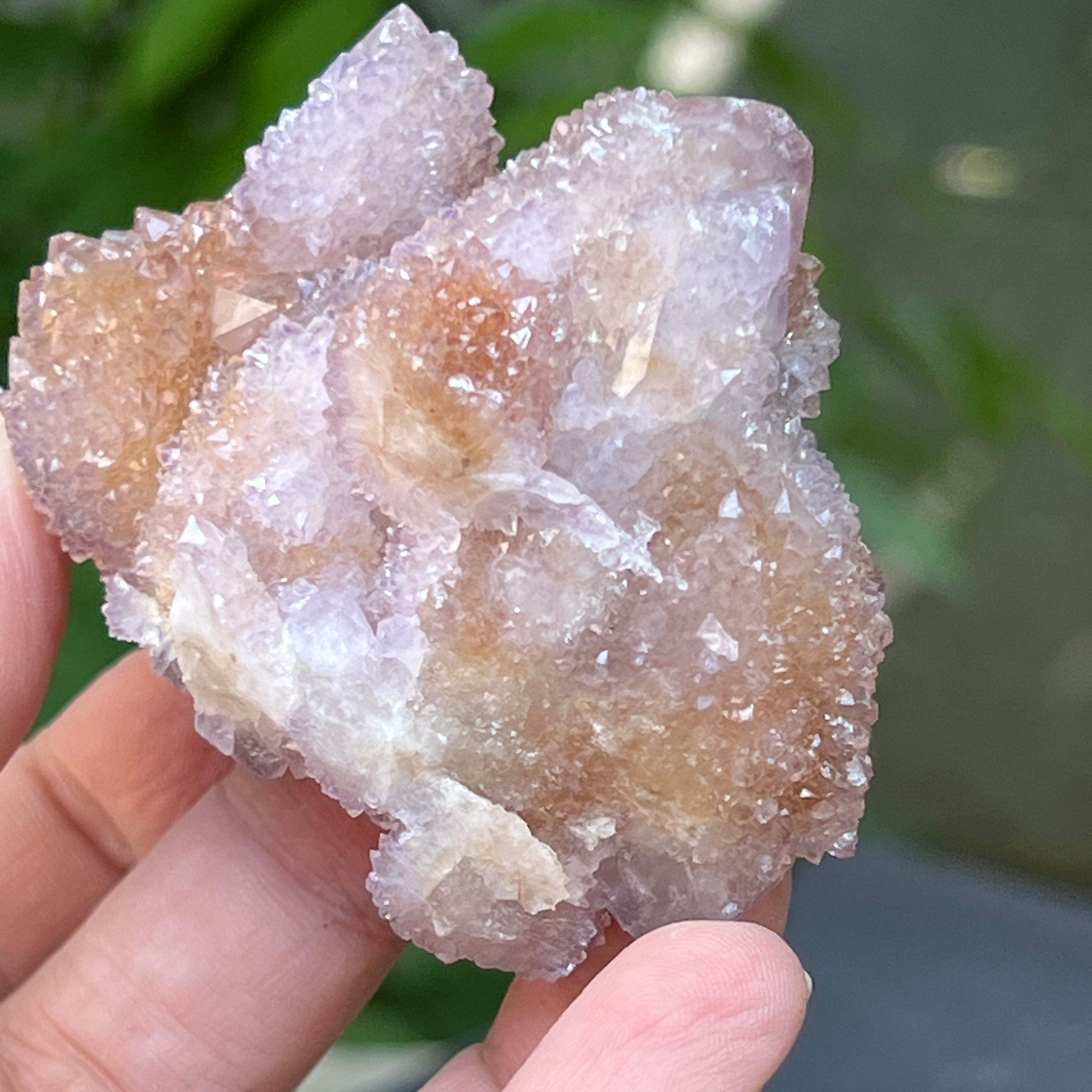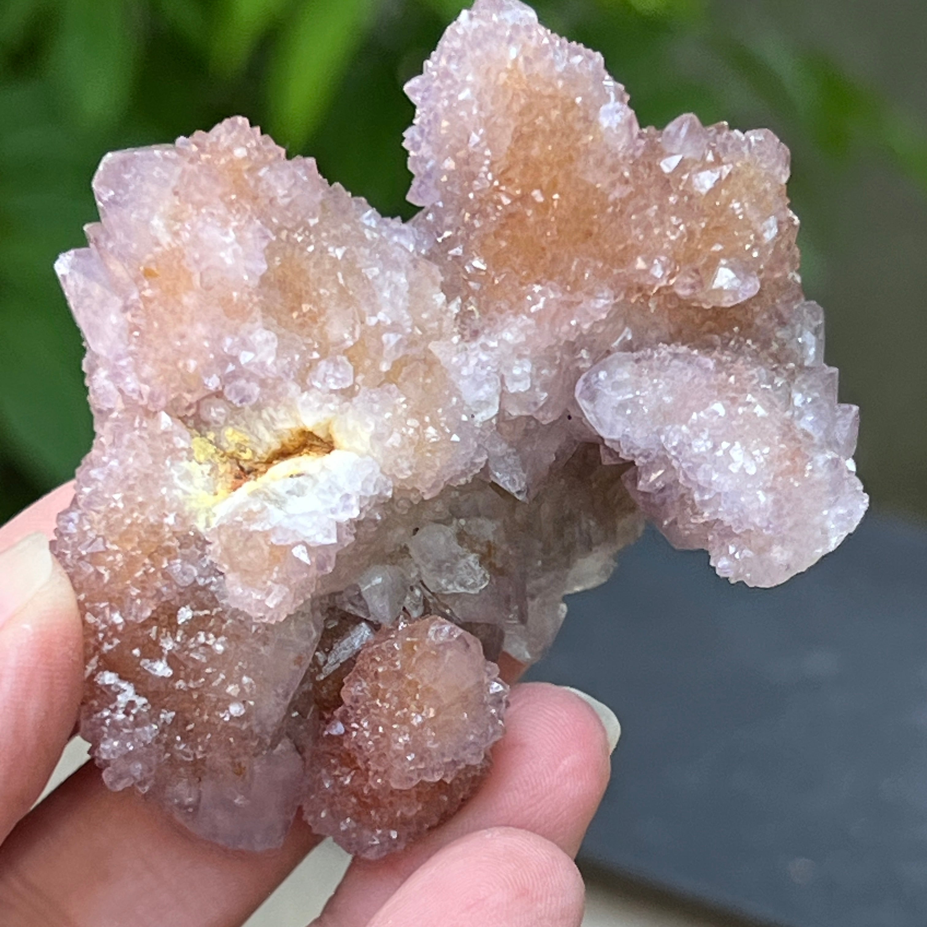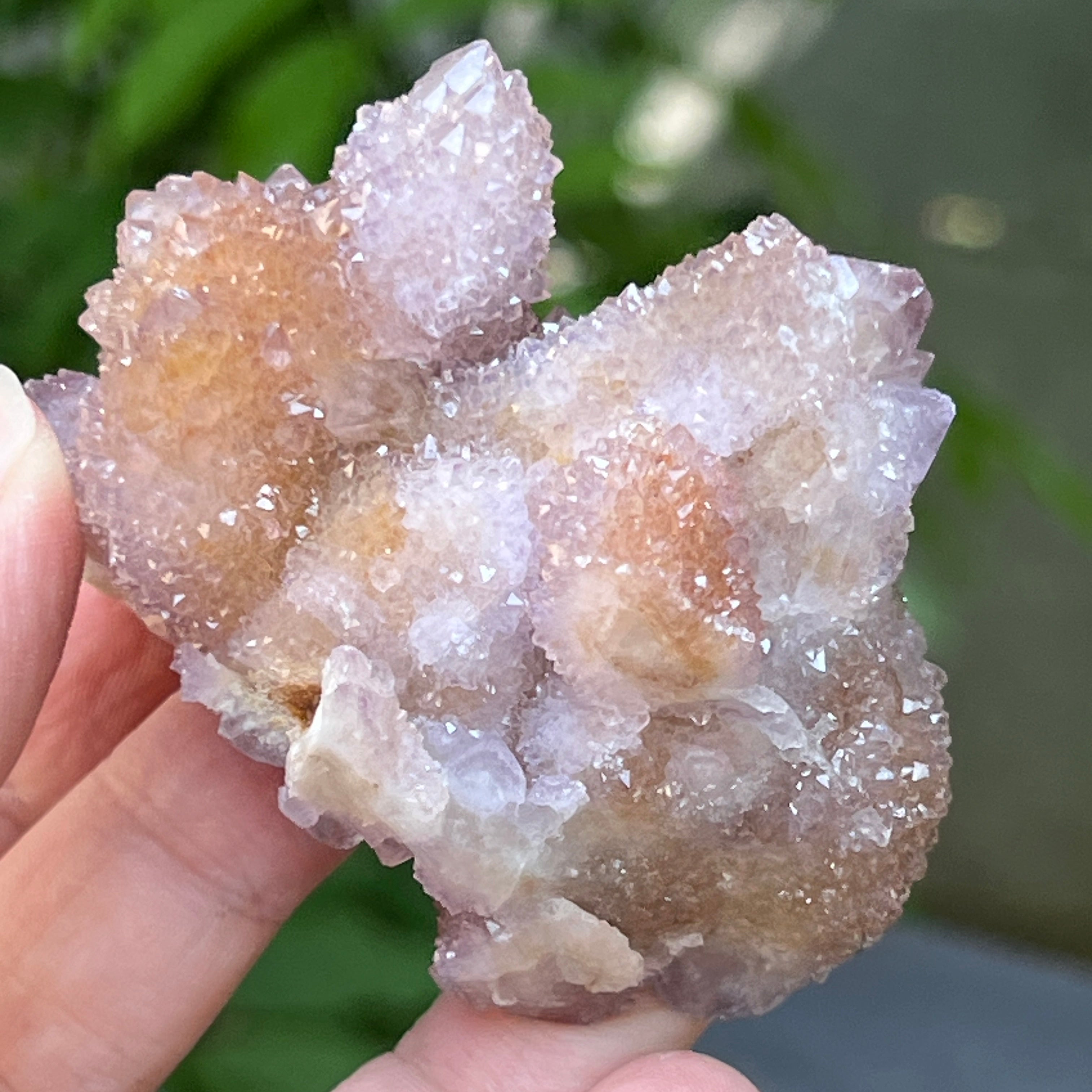 Произхождащ от Южна Африка, този уникален образец съчетава дълбоката енергия на кварца с висшите вибрации на аметиста. Това е камък на сътрудничеството и духовната общност, символ на хармонията между индивидуалността и единството. Всеки малък кристал излъчва от общия център, като мрежа от съзнания в съвършено равновесие.