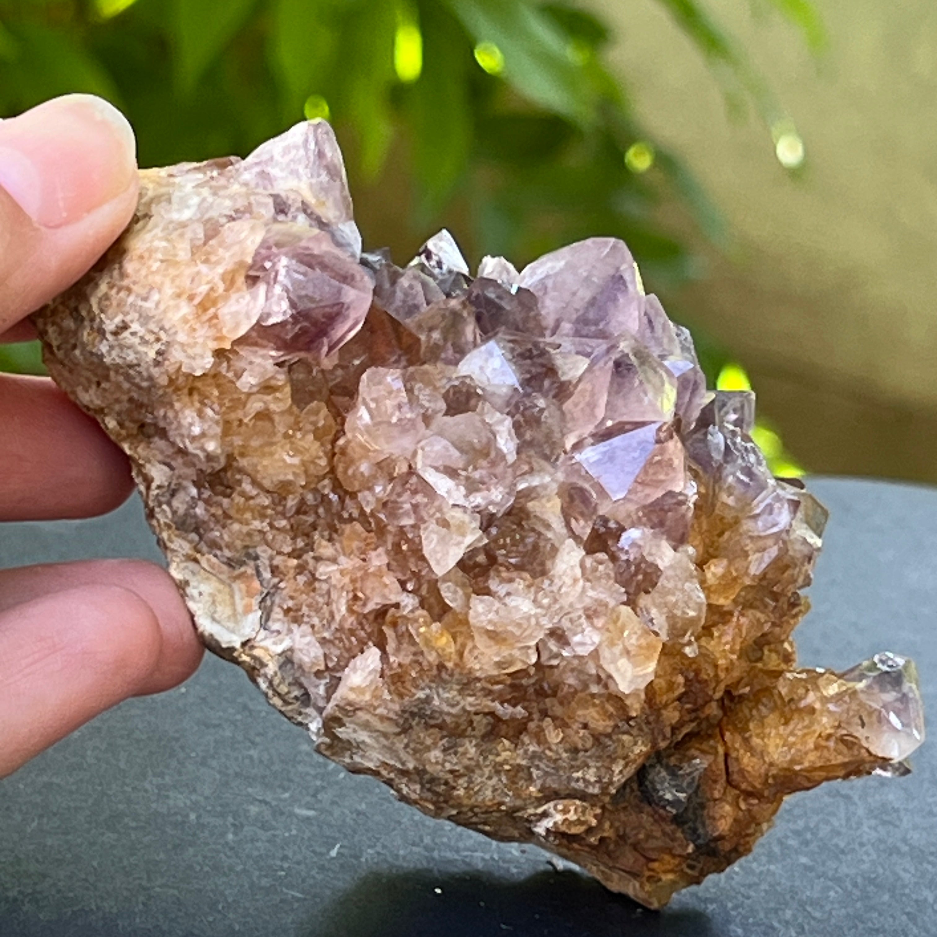 В дълбините на африканската земя, там където тишината на планините крие неразказани истории, се ражда кристал с необичайна красота: Духовният кварцов аметист, известен също като „Кактусов кварц“. Това минерално чудо изглежда обвито в мистична аура – една солидна основа, покрита с хиляди нежни върхове, като общност от кристали, обединени в танца на светлината.
