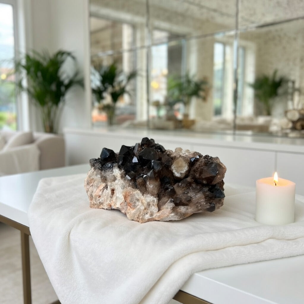 Димният кварц често се свързва със заземяване, защита и трансформация. Счита се, че енергията му помага за освобождаване на отрицателни енергии, намалява стреса и осигурява емоционална стабилност. Счита се също, че улеснява духовното израстване и вътрешното разбиране.