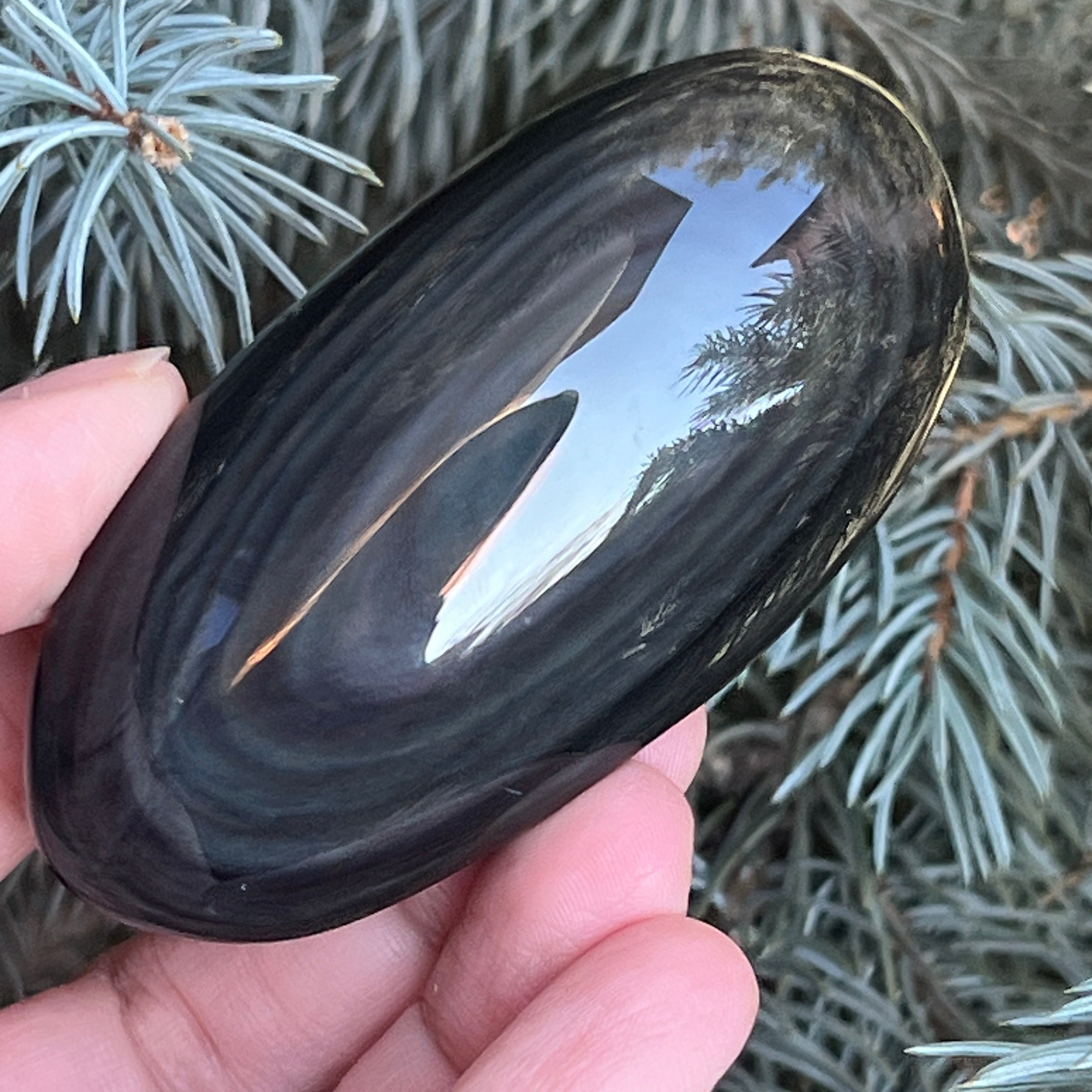 Обсидианов дъгов палмов камък 7, размер: 7.7*3.8*2.6cm