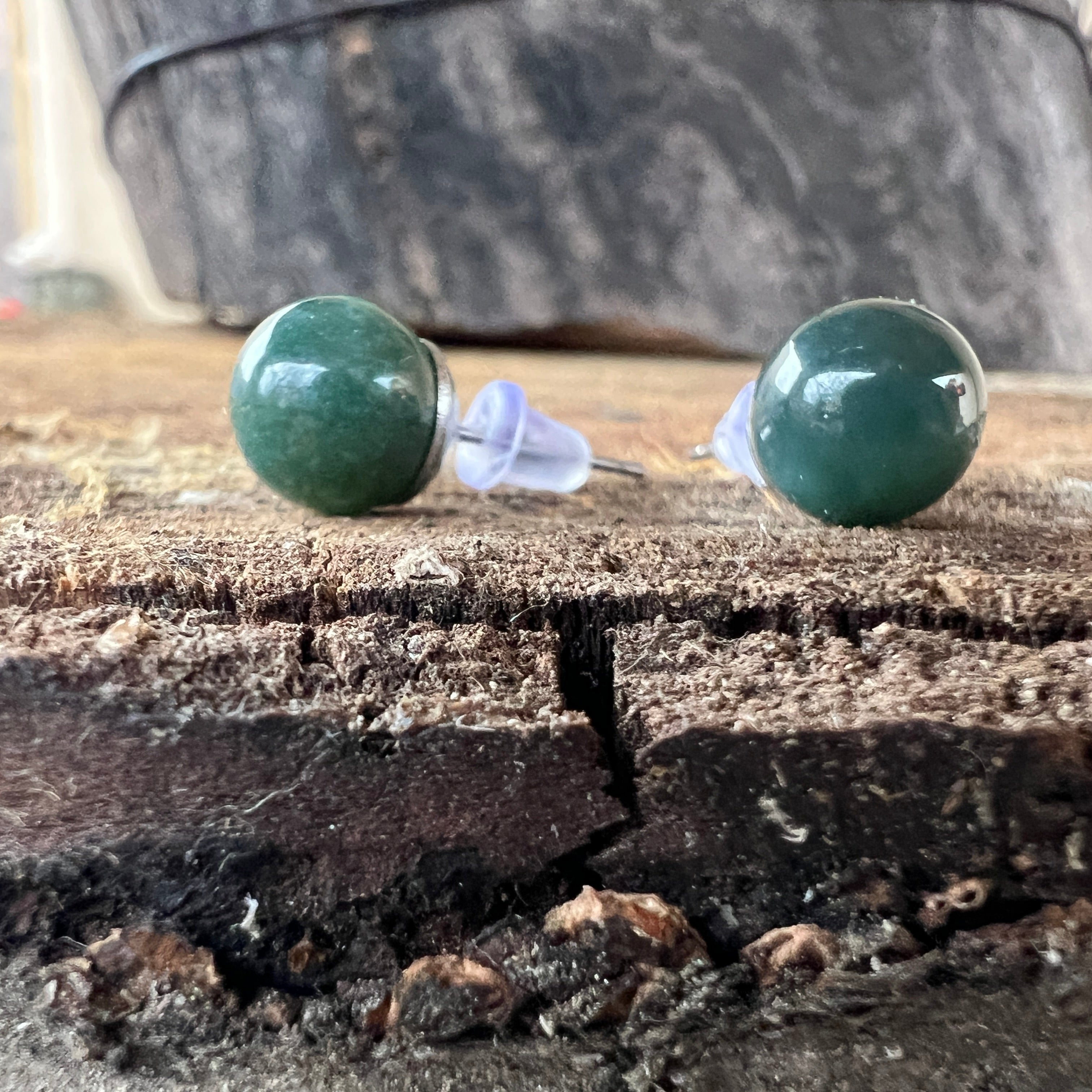 Обeци с гвоздей мъхов ахат, топчета 8 мм