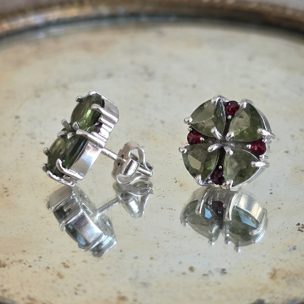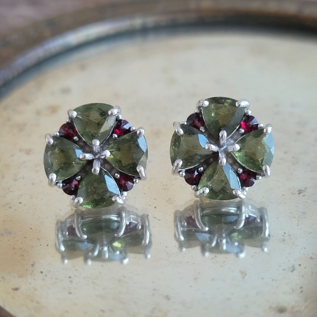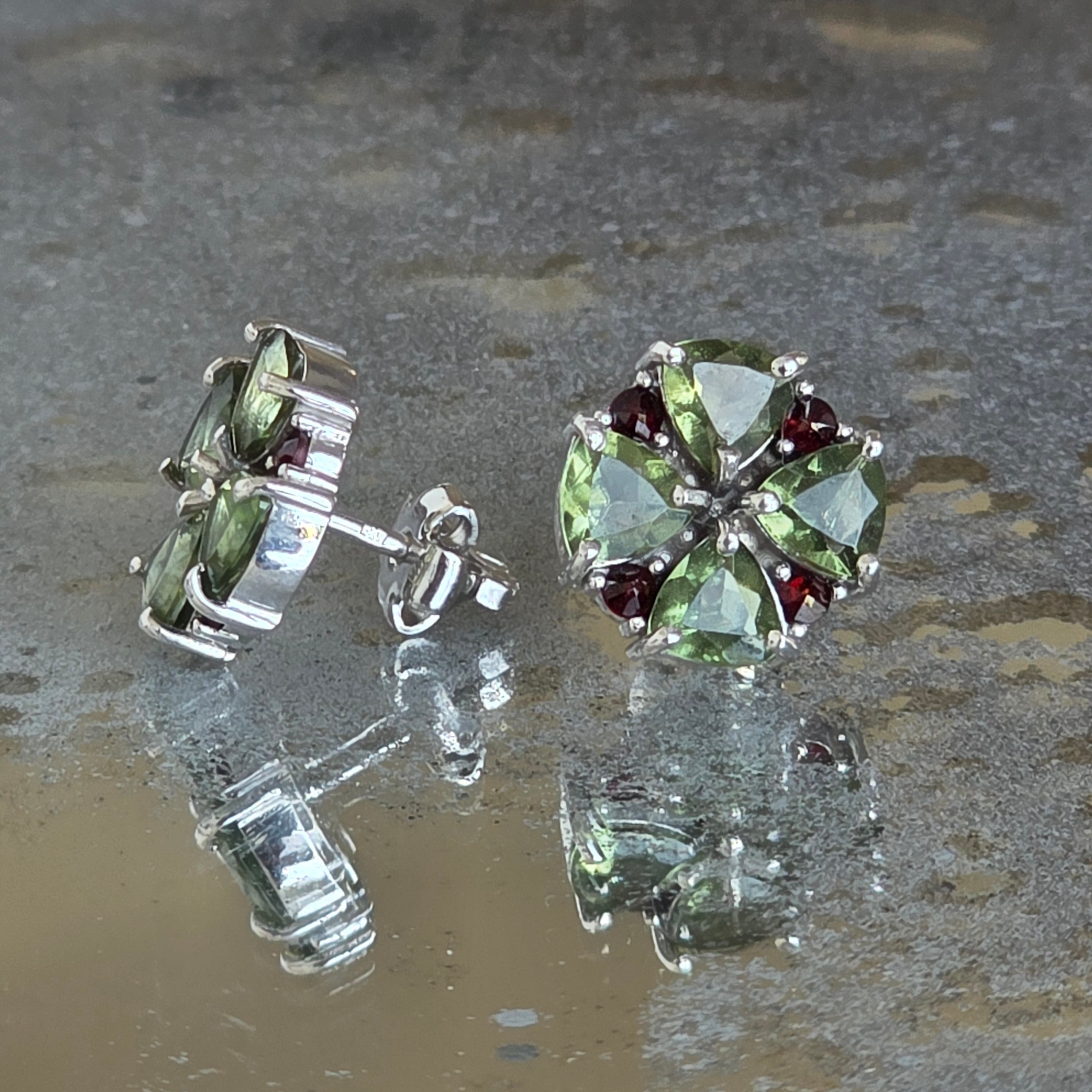 Описание - Обеци с молдавит и гранат от сребро | Lucky