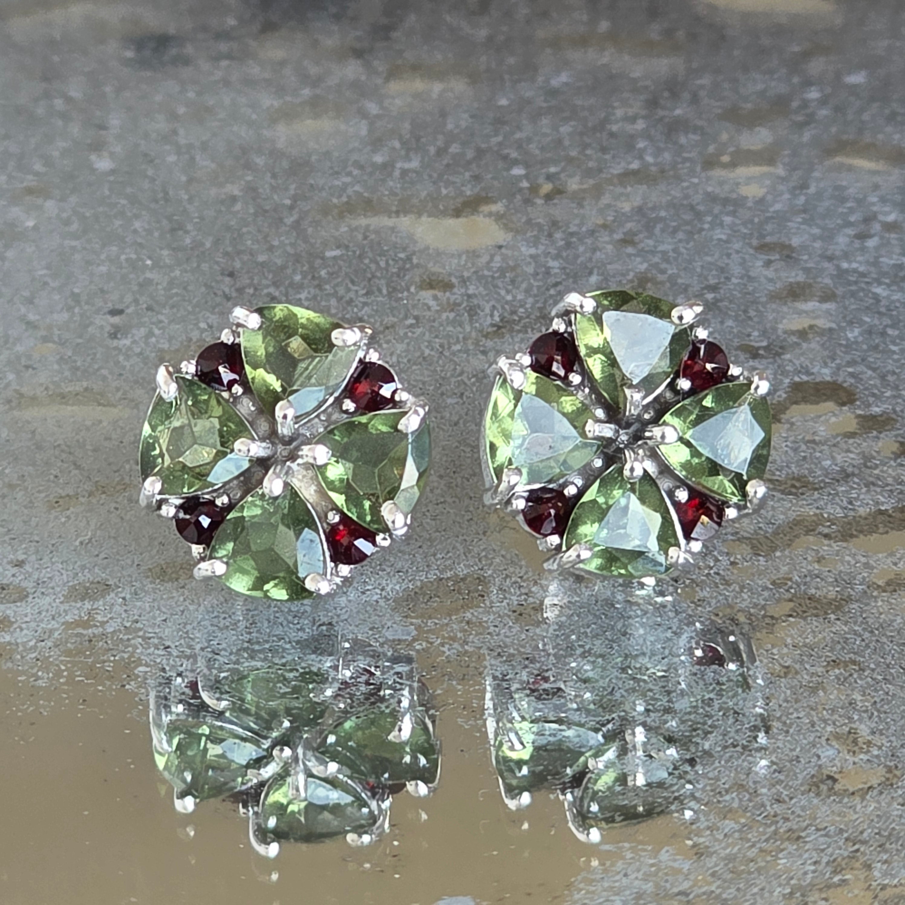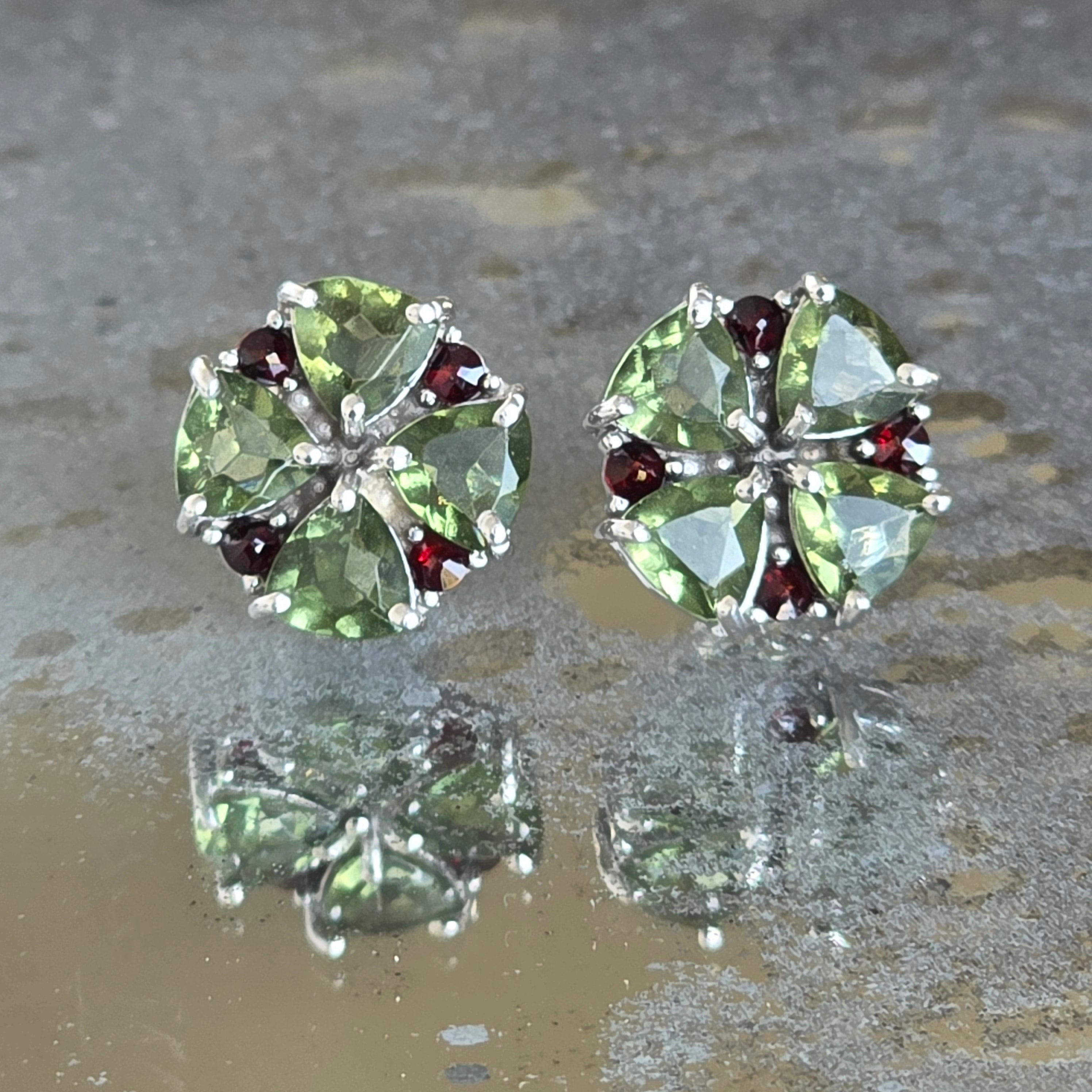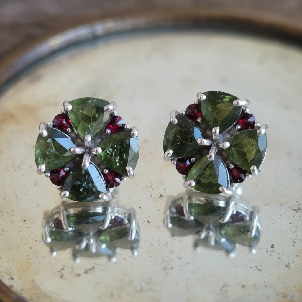 Описание - Обеци с молдавит и гранат от сребро | Lucky
