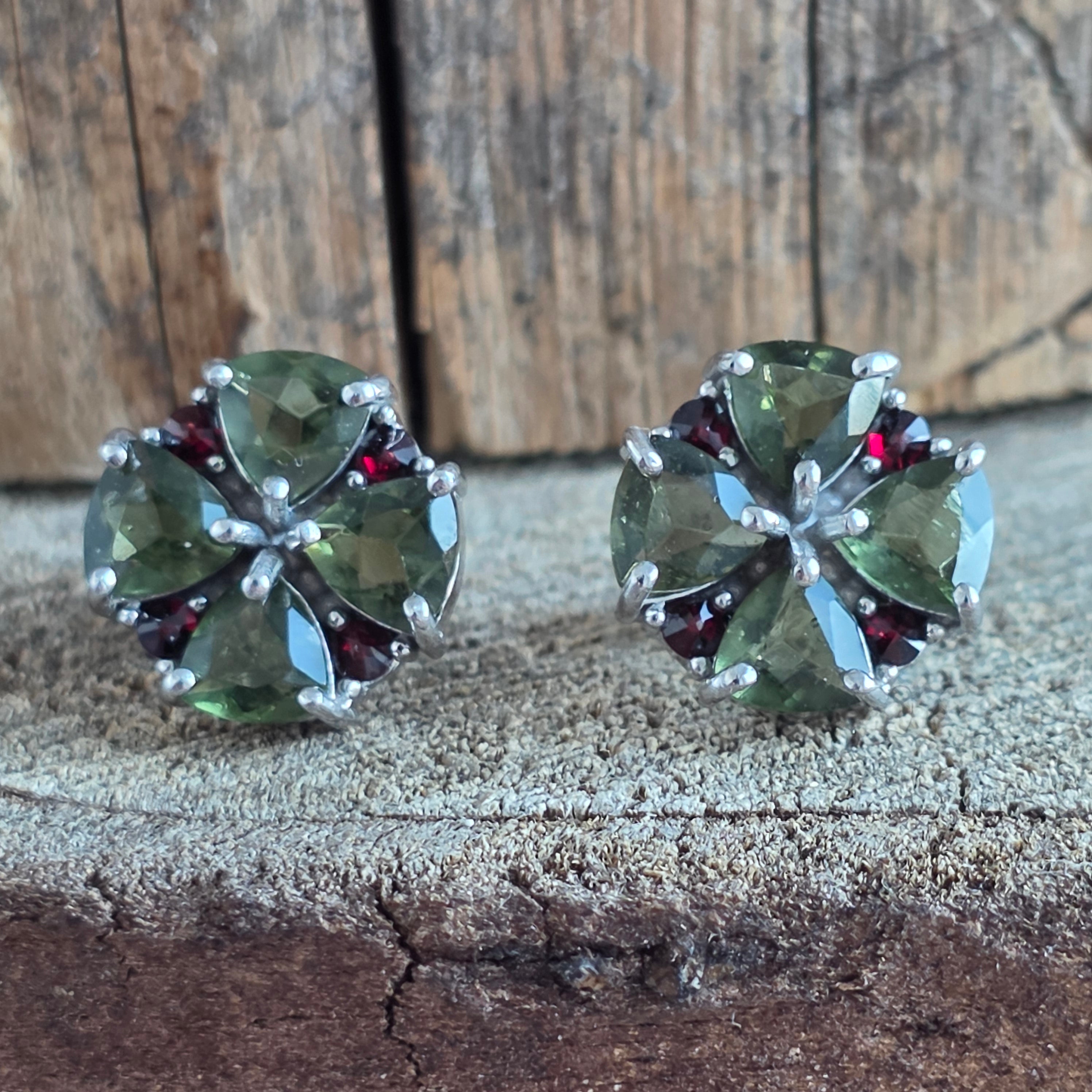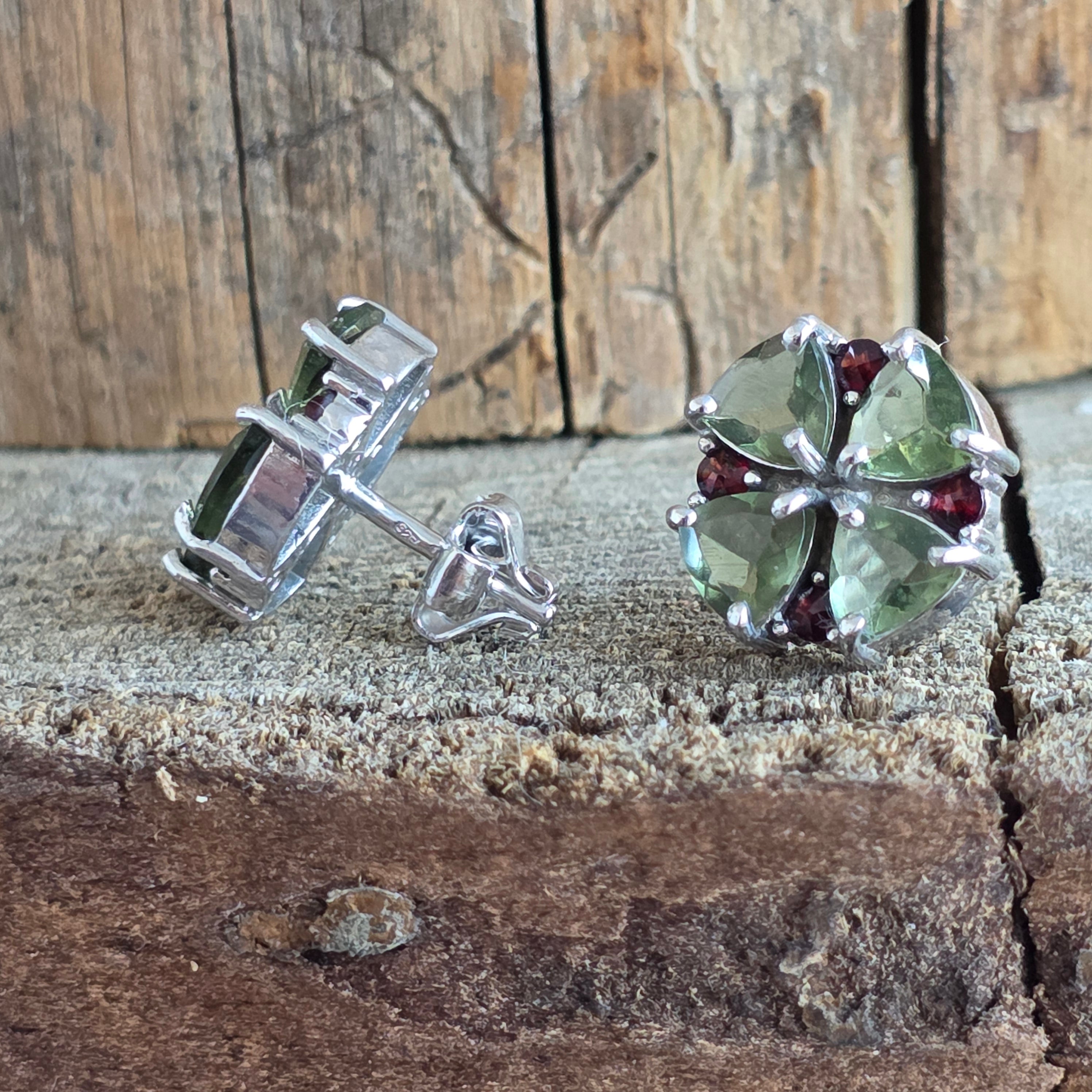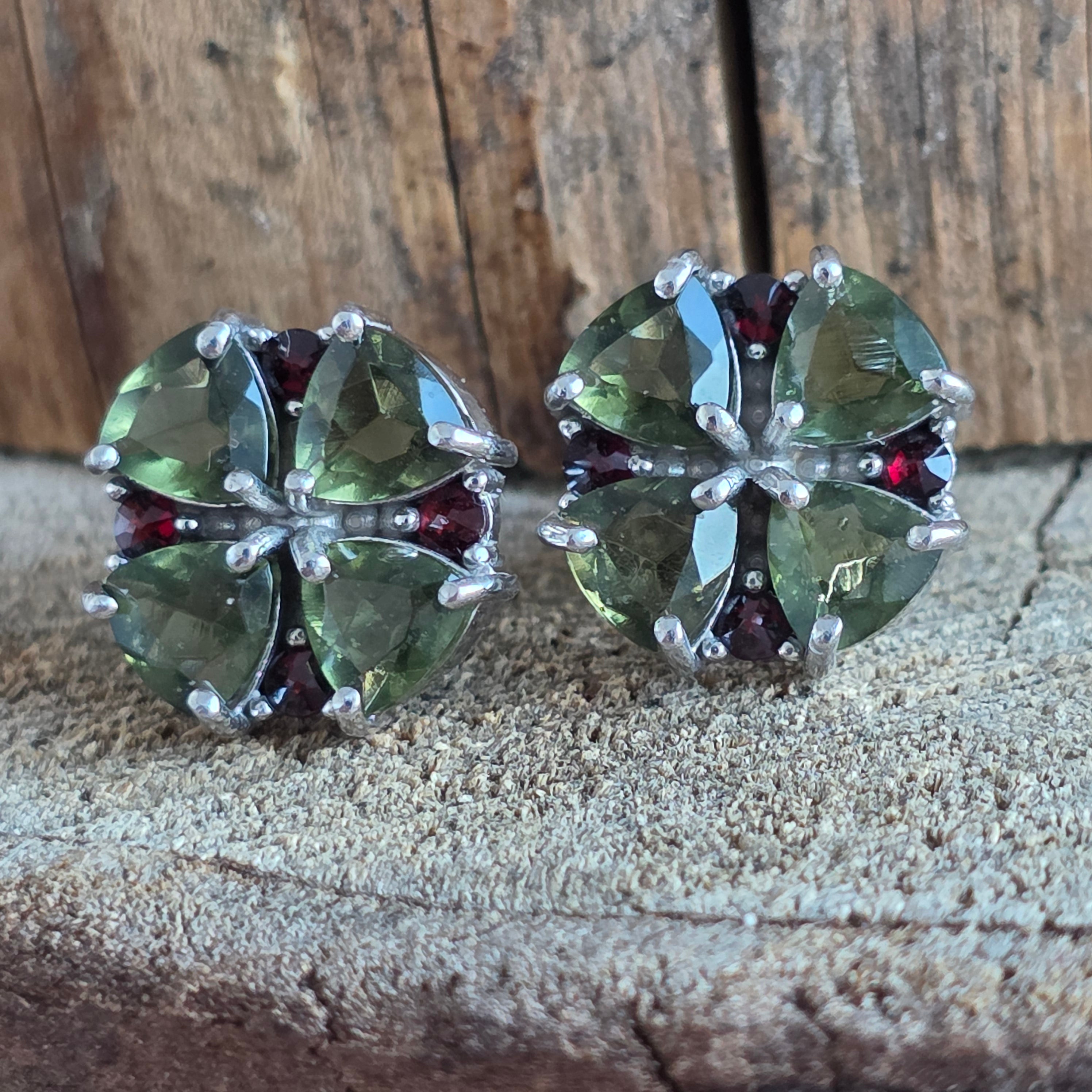 Обeци с молдавит и гранат от сребро | Lucky