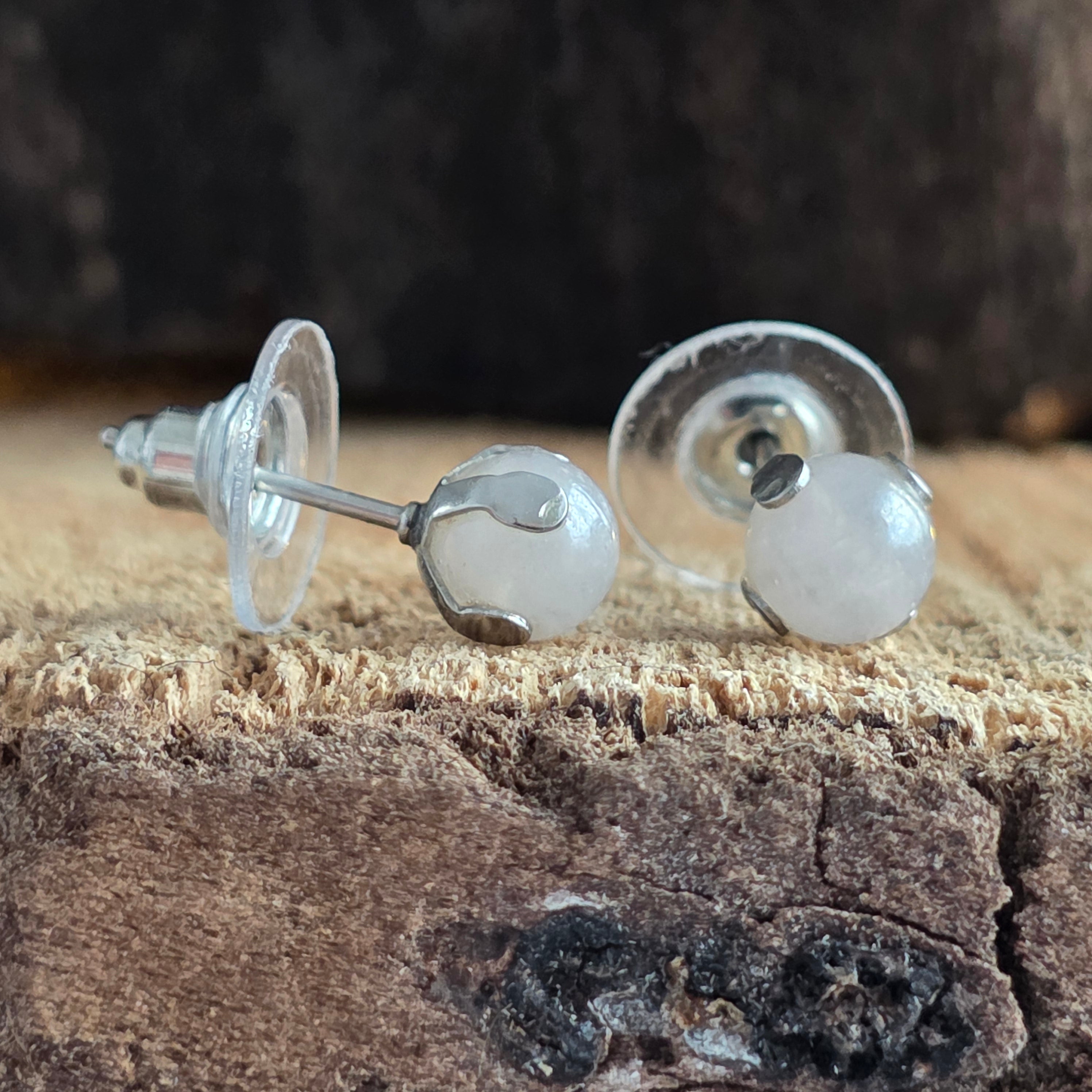 Описание - Обeци тип 'stud' с аура розов кварц 6 мм