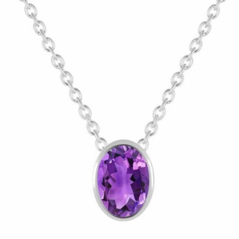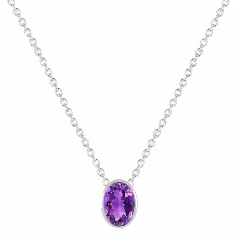 Ревюта – Овално сребърно колие с аметист 8 мм