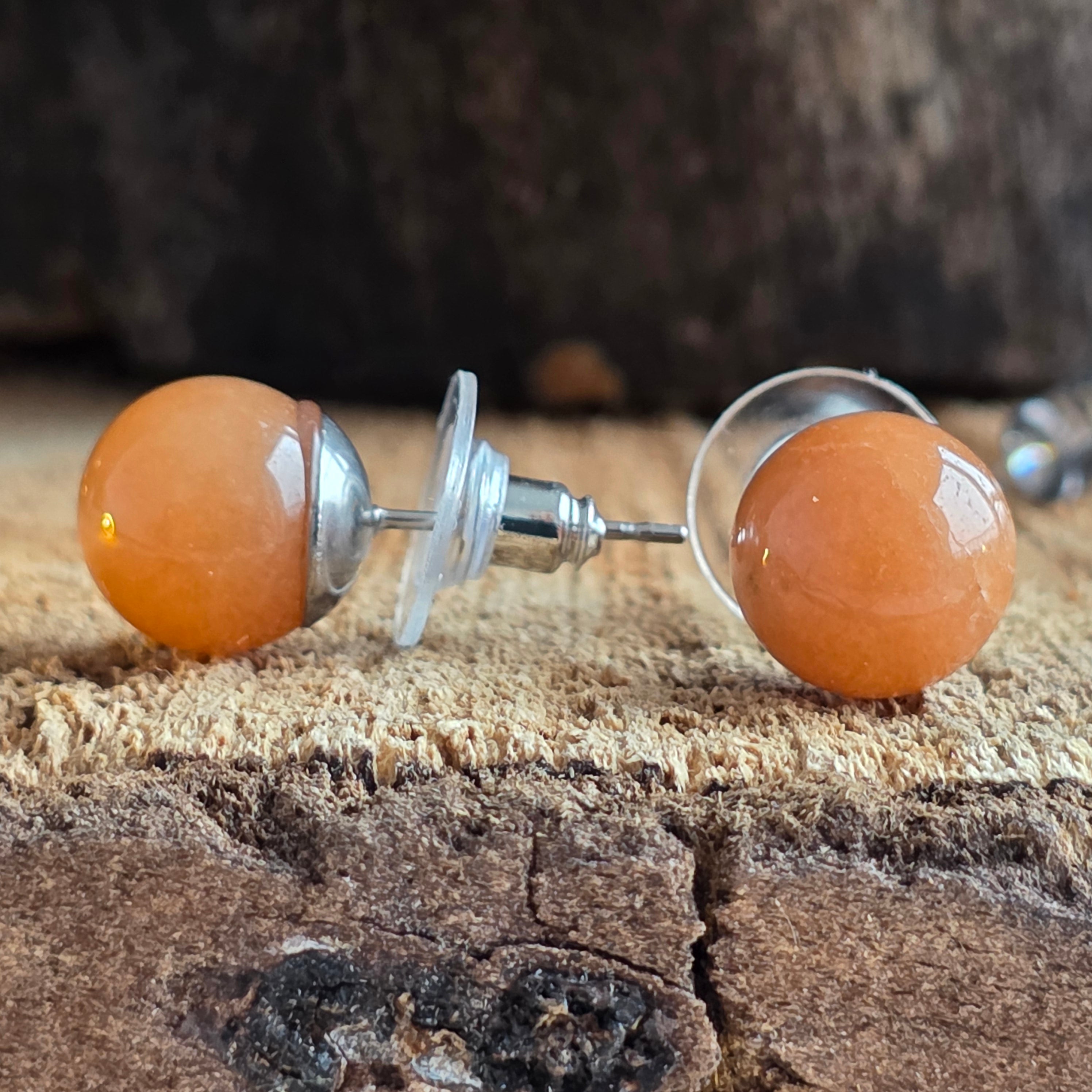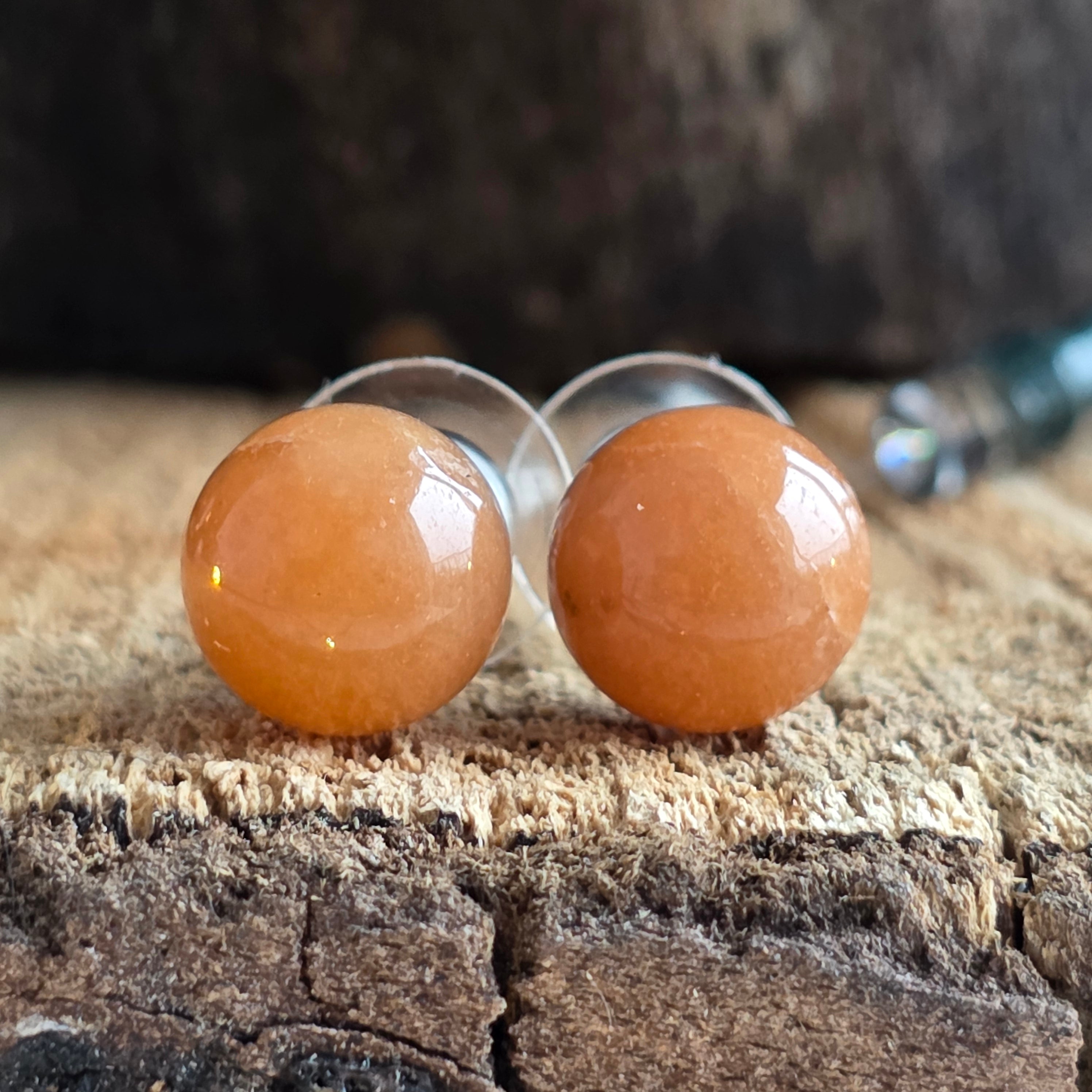 Оранжеви авантюринови сферични обеци