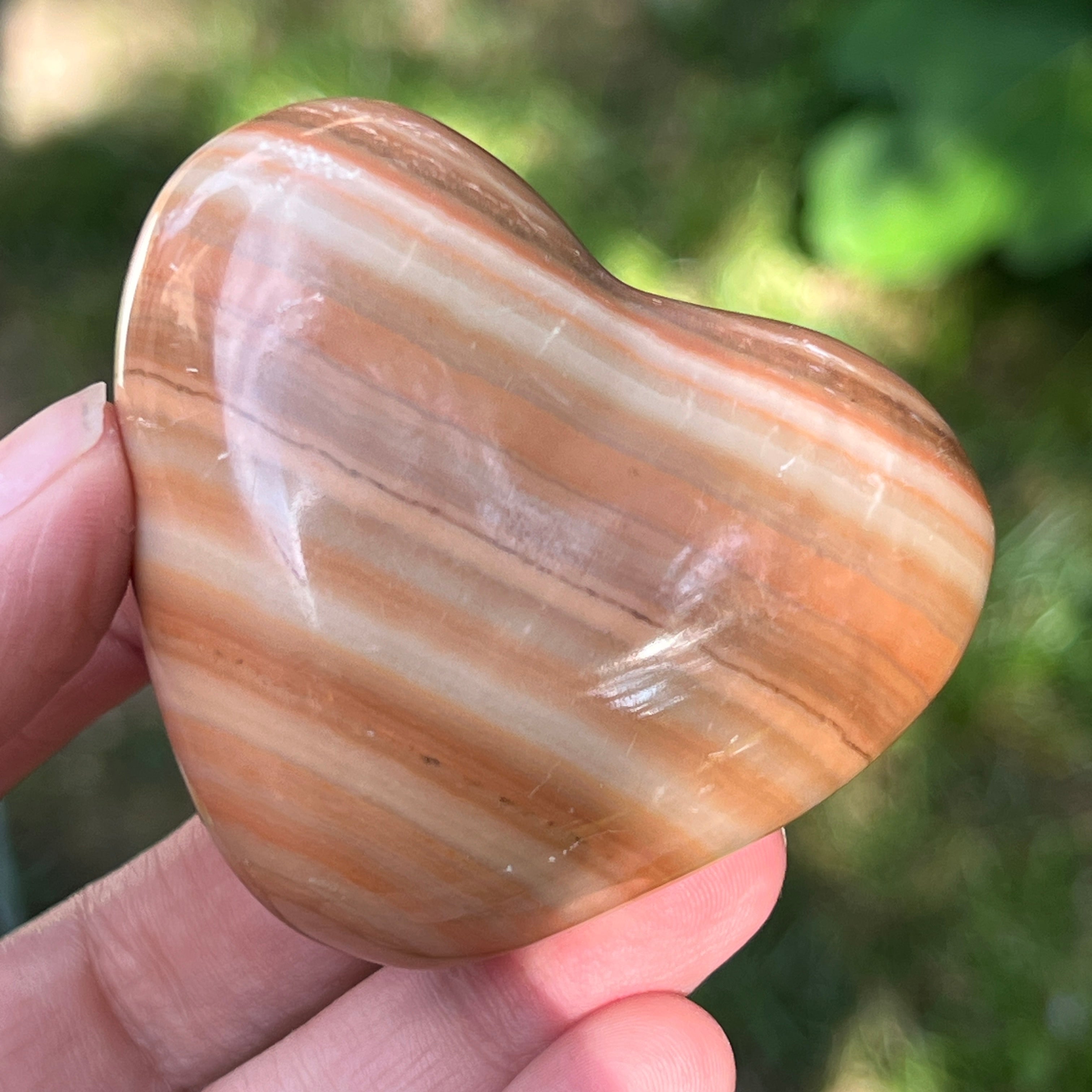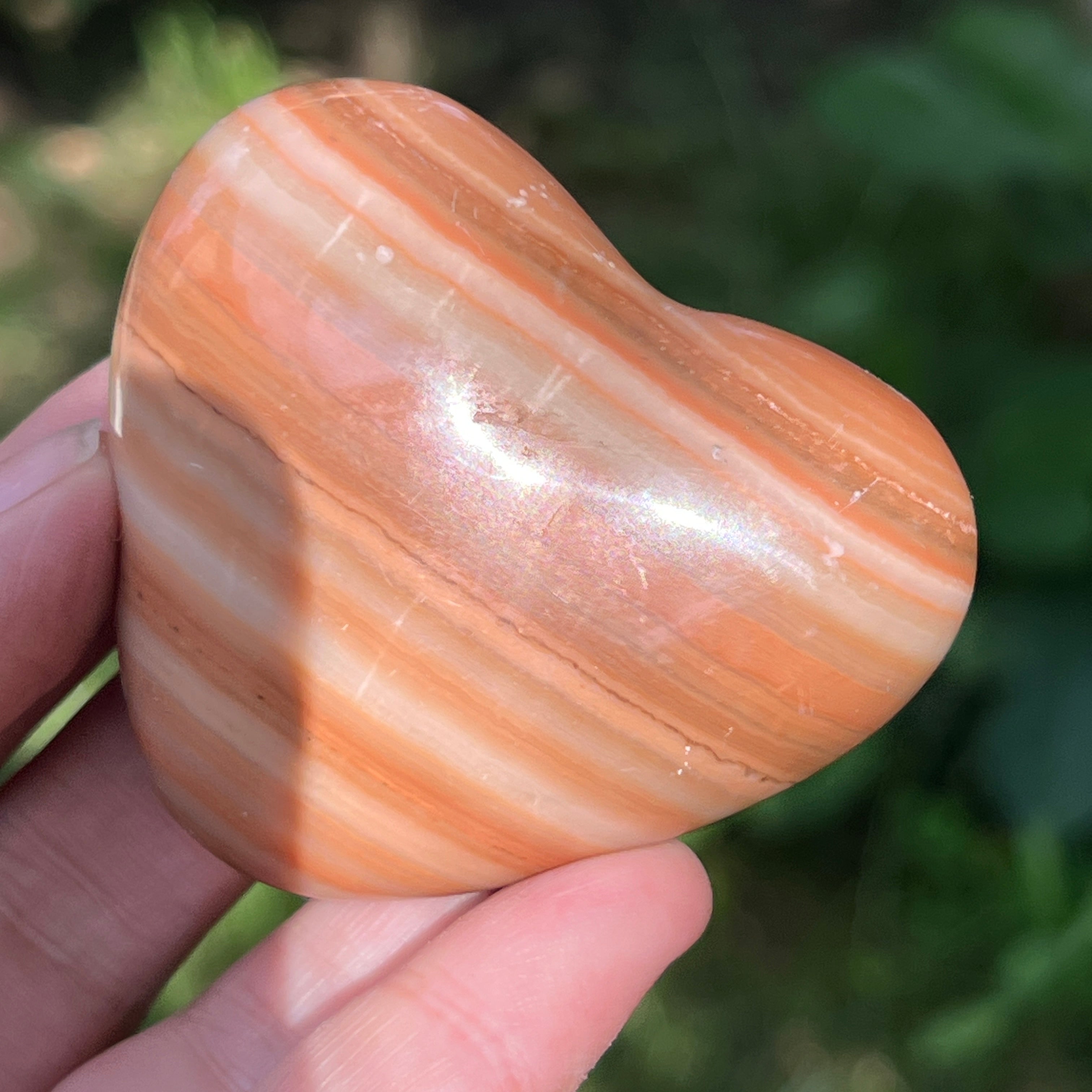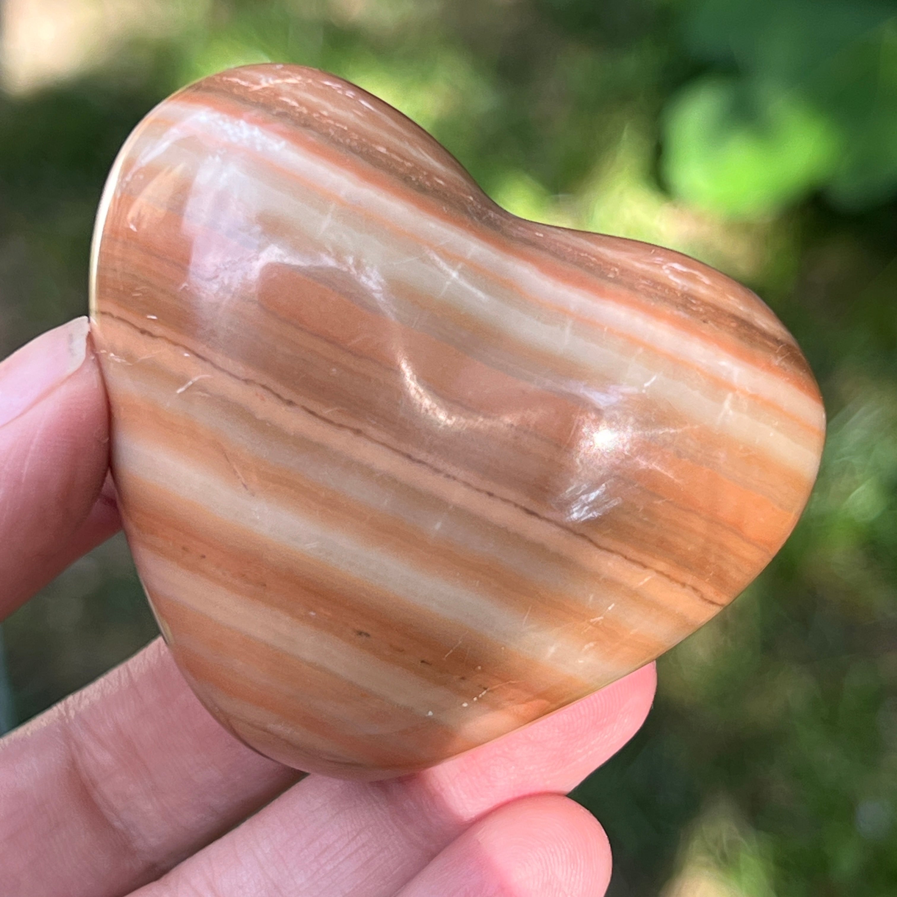 Топъл като залез в древна пустиня, този завладяващ камък съчетава оранжевия оникс с деликатни жилки от калцит, в слоеве, които изглеждат като нарисувани от времето. Живите оттенъци на оранжево, мед и кехлибар пулсират с енергията на живота и добавят нотка жизненост във всяко пространство. Това е творба, която пробужда сетивата и вдъхновява креативността, като същевременно запазва дълбок баланс, свързан с енергията на земята.